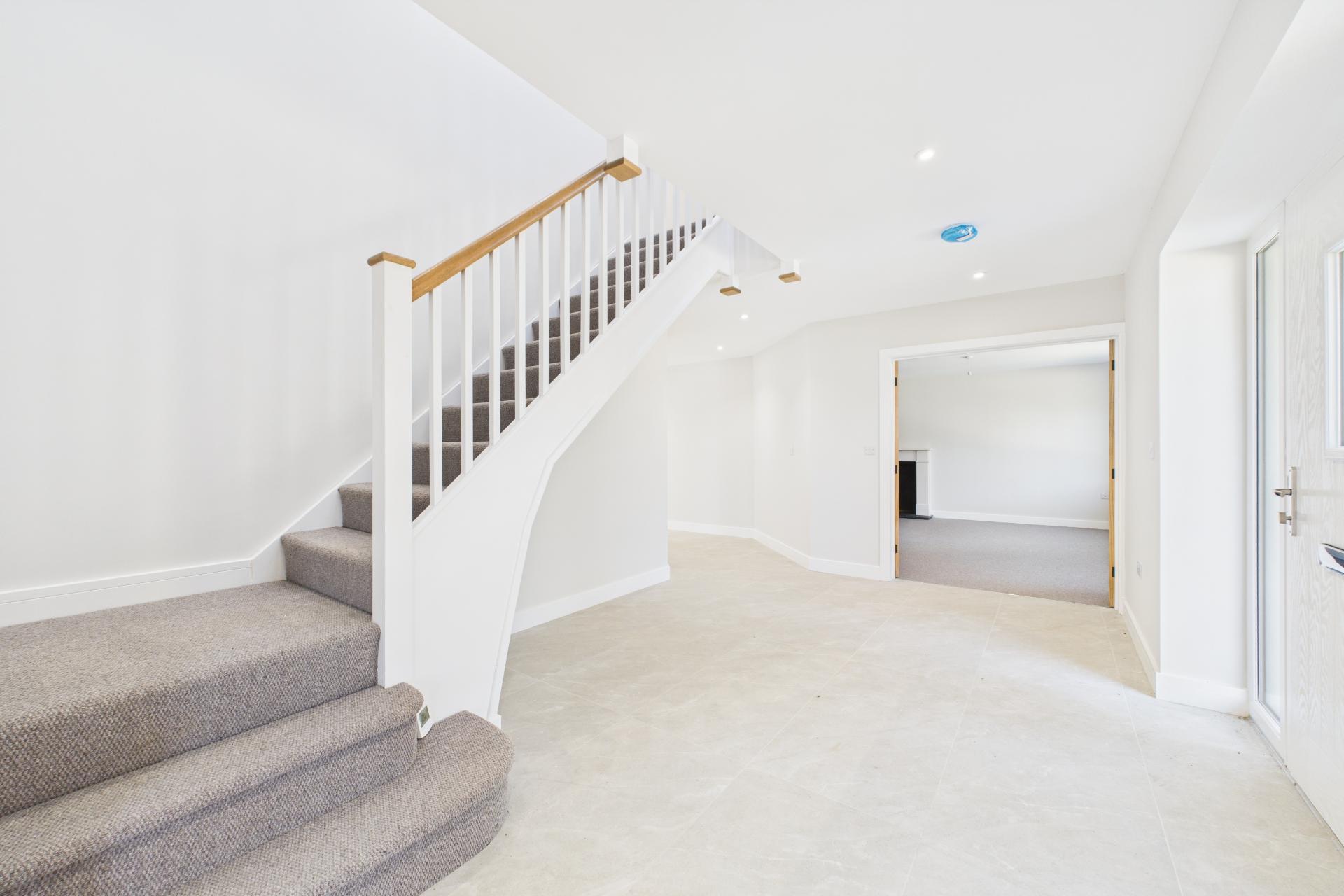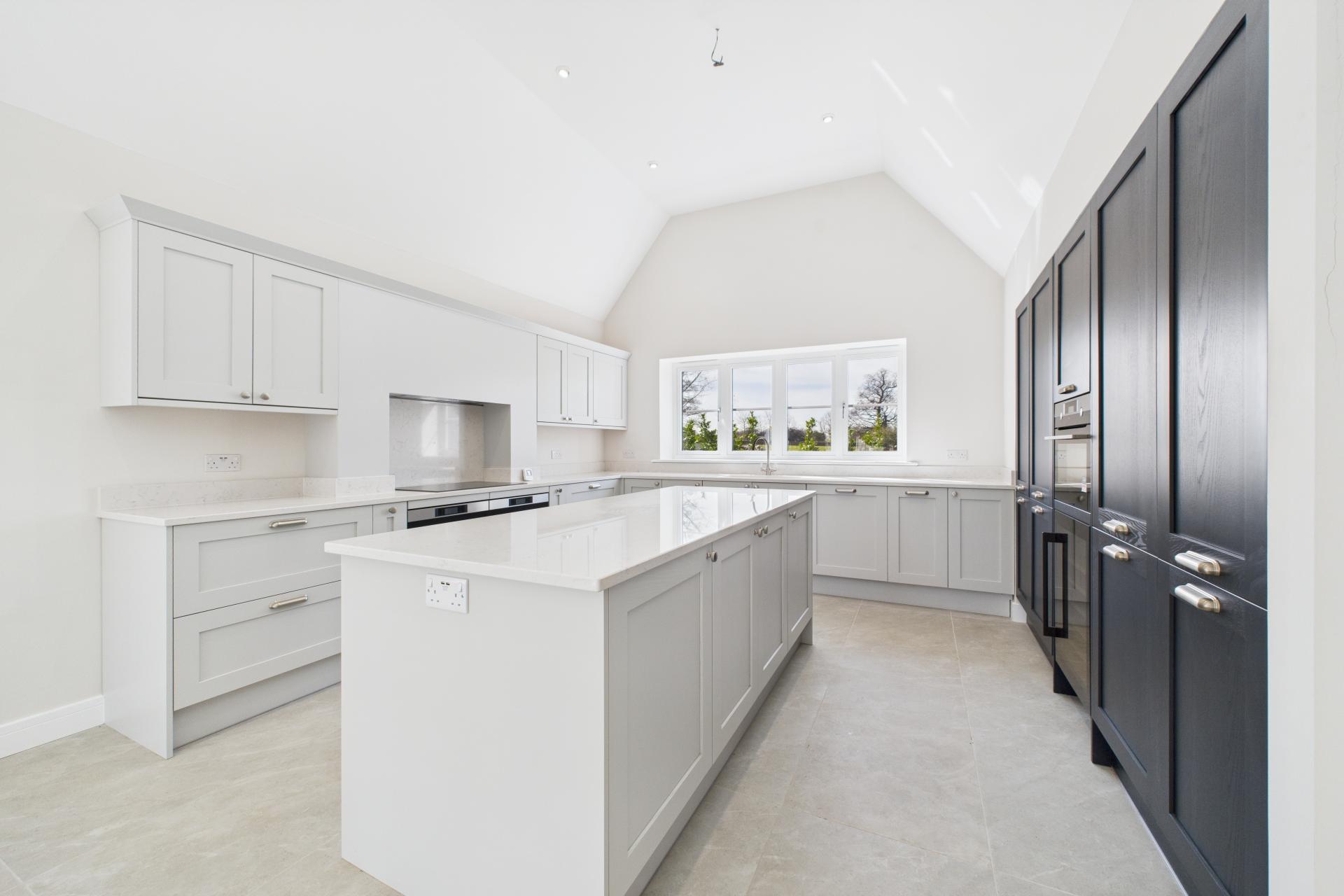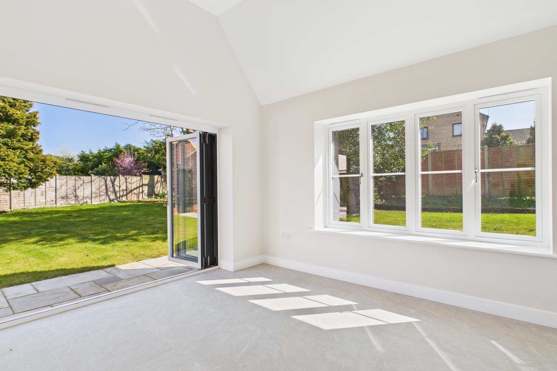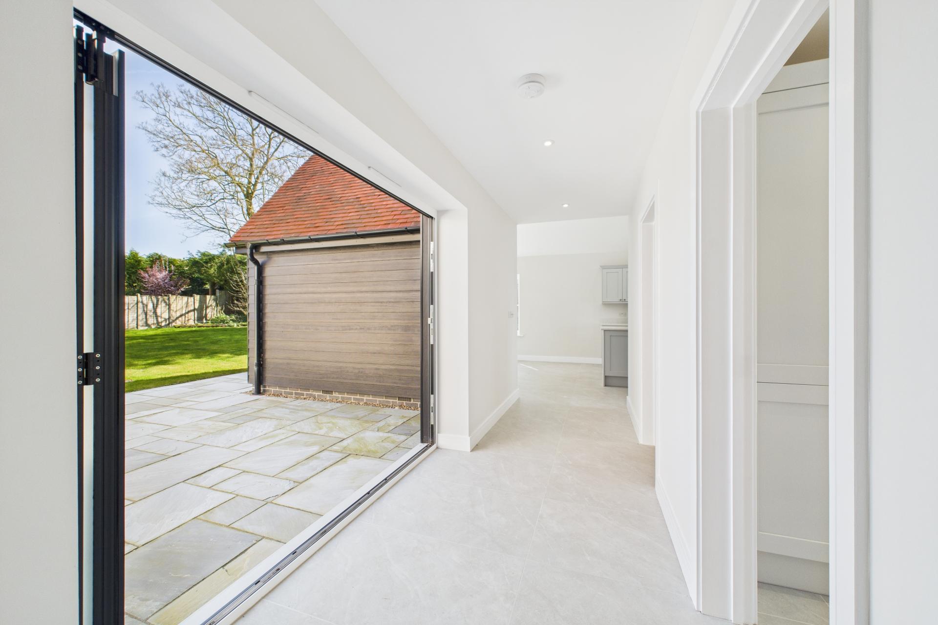 STEP INSIDE Upon entering, you are greeted by a generously proportioned entrance hall, setting the tone for the spacious and thoughtfully designed interior. To the left, through elegant double oak doors, lies the main sitting room a bright and airy space with dual-aspect windows framing views to the front, and bi-folding doors that open seamlessly onto the rear patio, perfect for indoor-outdoor living. Directly opposite is the inviting family room, featuring a charming fireplace and more dual-aspect windows that allow plenty of natural light. Continuing along the expansive hallway, you'll find the snug to the left an ideal space for a home office or reading room, offering garden views and plenty of daylight. Opposite, the ground-floor family shower room is fitted with a walk-in shower cubicle, vanity sink unit, and WC. Further enhancing the connection to the outdoors, additional bi-folding doors in the hallway open directly onto the patio. The well-equipped utility room is fitted with classic shaker-style cabinetry, a marble worktop, inset sink, and provides access to the side of the property. At the heart of the home is the stunning open-plan kitchen and breakfast room. Designed for both style and function, it boasts a range of shaker-style floor and wall units, a central island, twin AEG ovens, an induction hob, integrated fridge and freezer, and a wine cooler. Vaulted ceilings add a sense of space, while bi-folding doors lead out to the patio, making it a perfect hub for entertaining.
