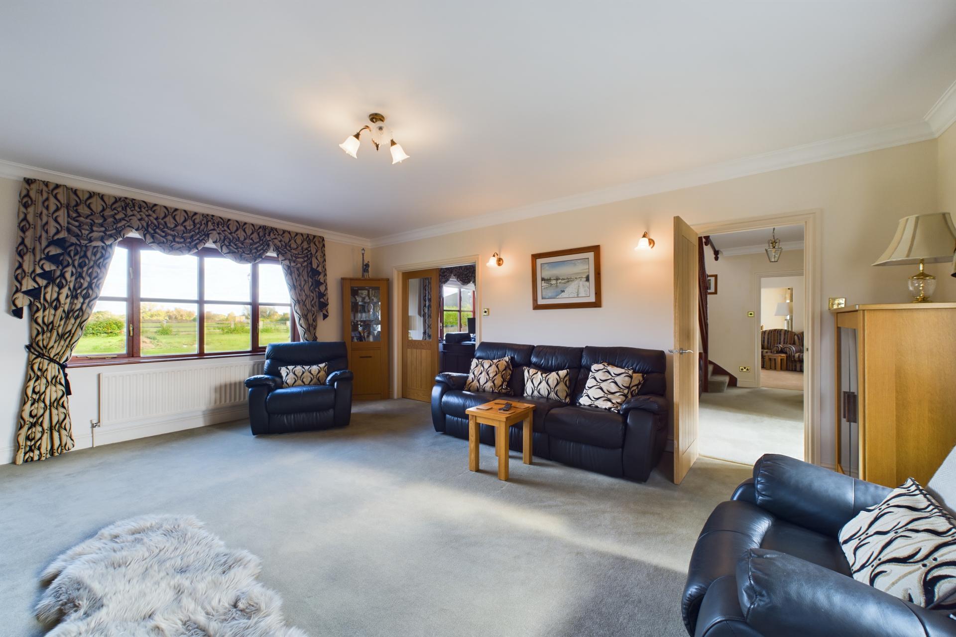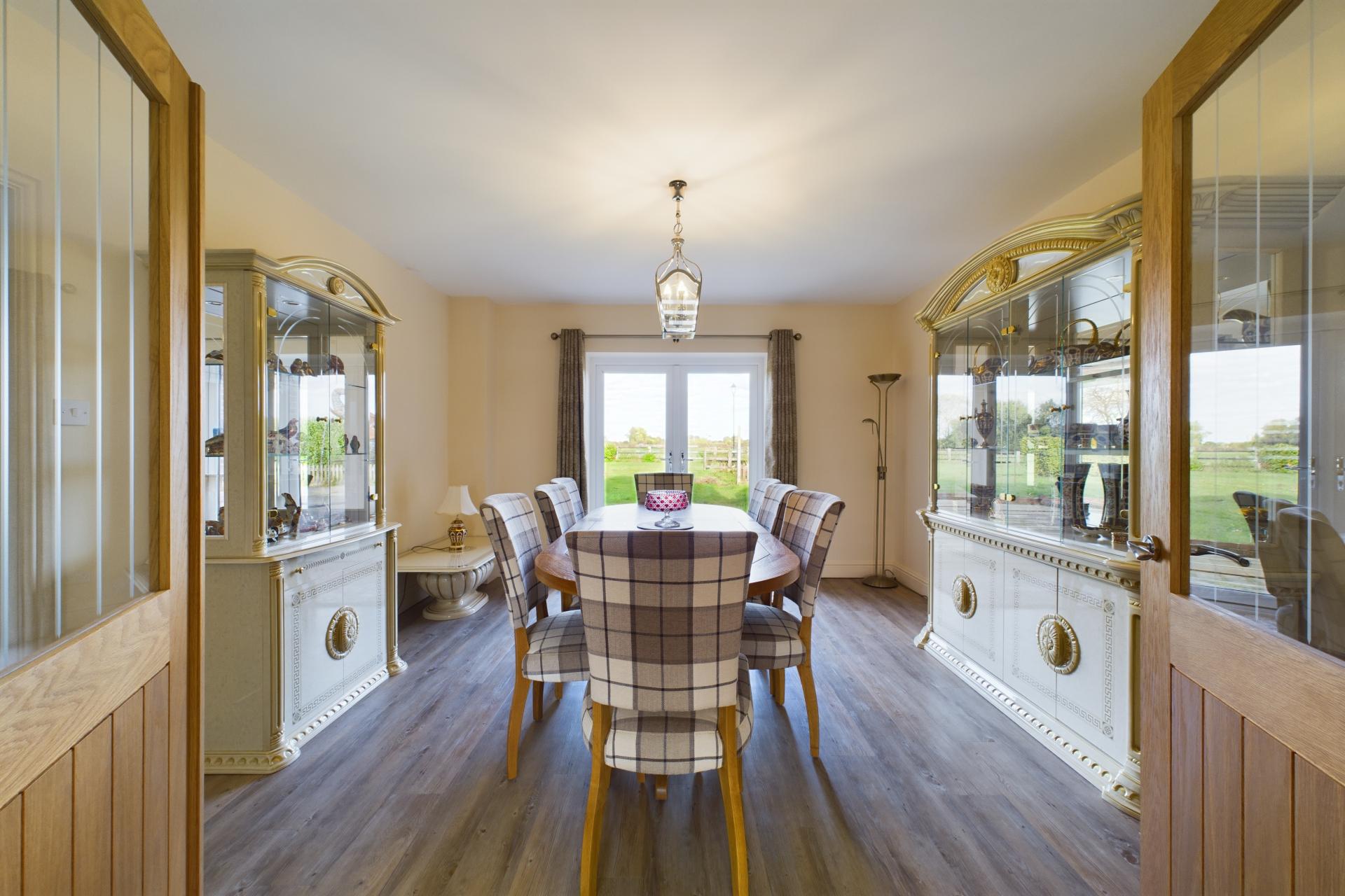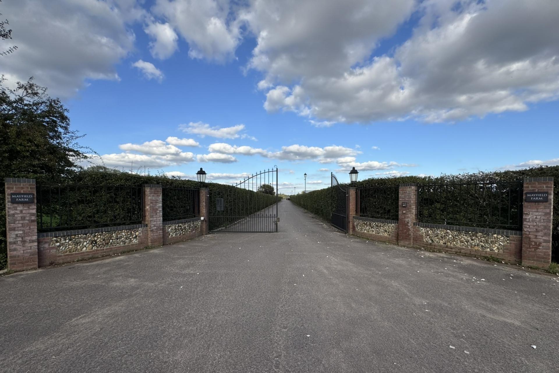 STEP OUTSIDE The exterior of this property is truly remarkable, set on an expansive plot of approximately 20 acres that offers endless possibilities. Enter through two large electric gates, which lead to a long-tarmacked driveway, providing a grand approach to the home. Ample parking is available, complemented by a triple garage and a cart lodge for added convenience. The grounds primarily consist of well-maintained grass paddocks and meadows, making it an ideal canvas for equestrian enthusiasts. Additionally, the property features a substantial agricultural barn with eight wide roller shutter doors, perfect for housing heavy machinery or enhancing equestrian activities. This impressive outdoor space elevates the property, making it a dream for anyone looking to embrace a rural lifestyle with equestrian potential.