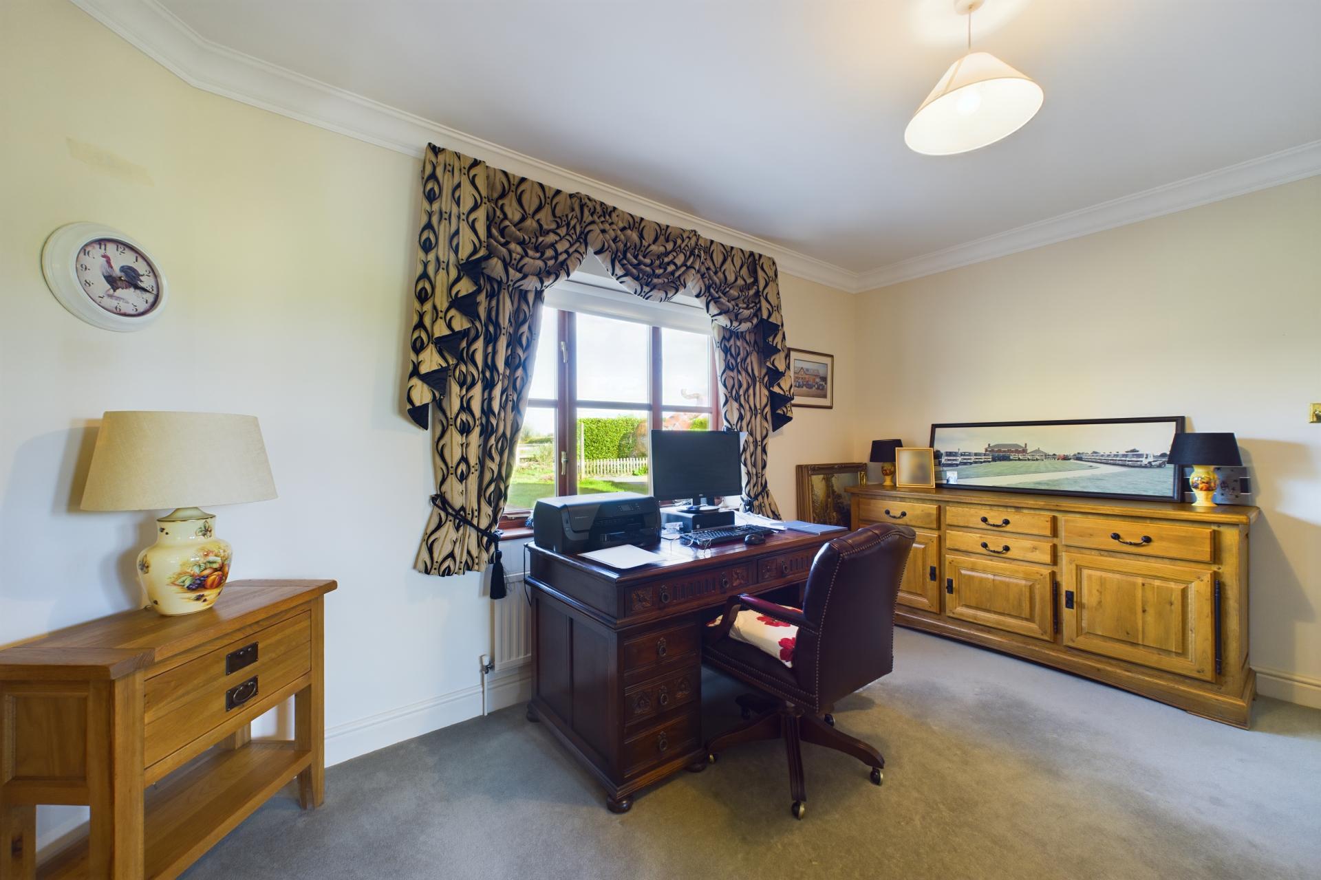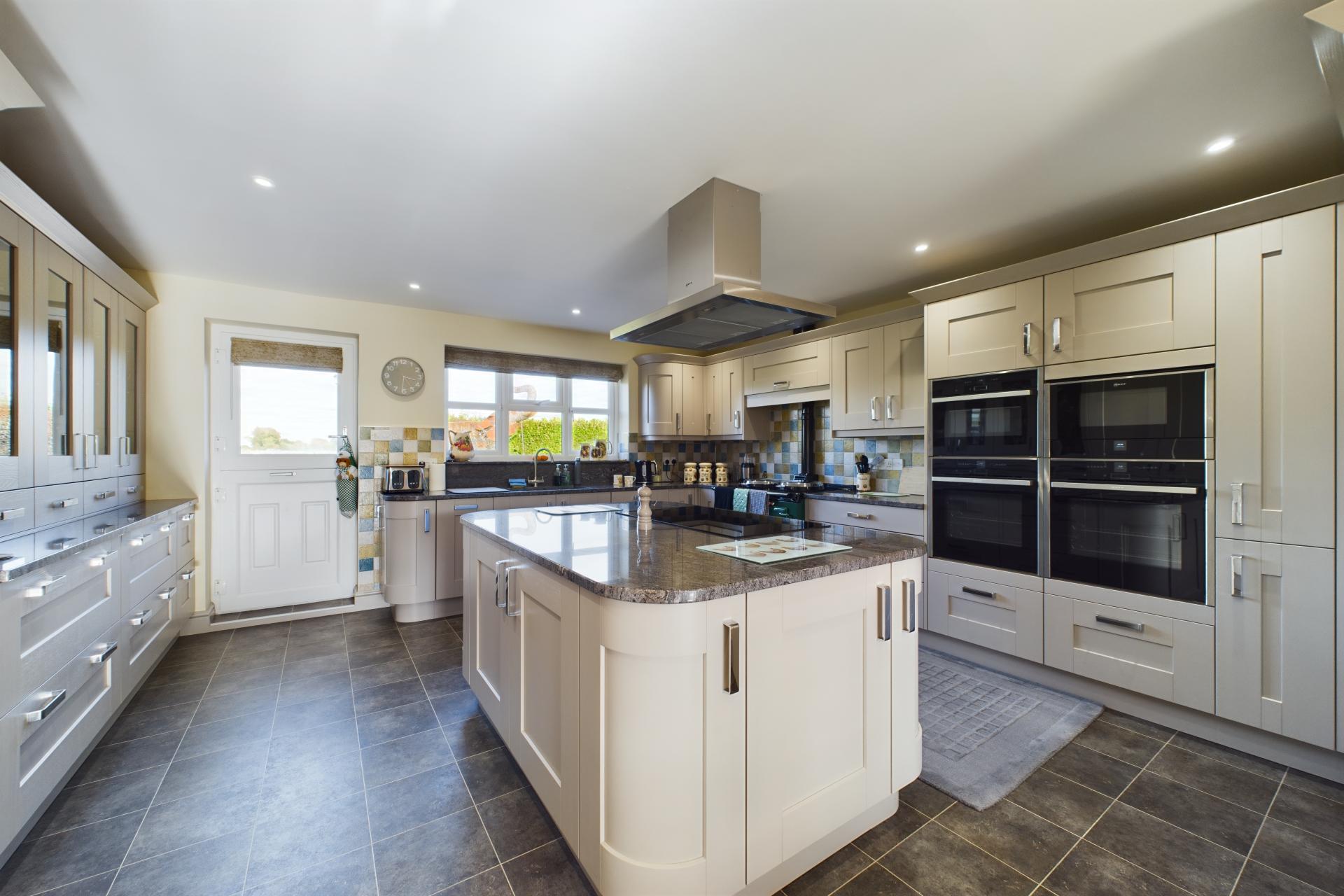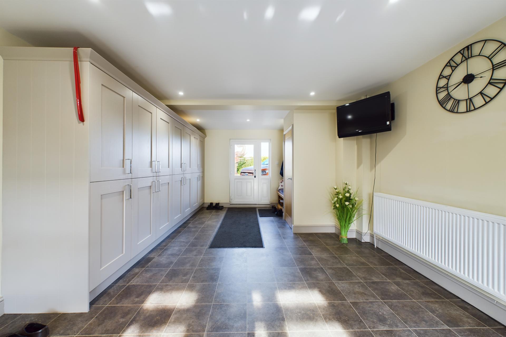 STEP INSIDE Upon entering the property, you are welcomed into an exceptionally spacious utility room featuring ample storage cupboards and a convenient sink, providing access to the carport and garage. From here, the inner hallway leads to a well-appointed downstairs shower room, complete with a WC, hand wash basin, and walk-in shower cubicle. The heart of the home is the stylish kitchen/breakfast room, which boasts a range of modern floor and wall cupboards, a central island with granite work surfaces, and an induction hob. This space is further enhanced by two integrated electric ovens, an integrated microwave and grill, and an AGA. There is also space for a dining room table at the other end of the kitchen, complemented by French doors that open onto the front patio, creating a lovely indoor-outdoor flow. The kitchen then seamlessly flows into a cozy snug area filled with natural light. Adjacent to the snug is a spacious formal dining area, featuring French doors that open to the rear of the property, perfect for entertaining. The property also includes a dedicated office space ideal for working from home. The generous living room, with double-aspect windows, offers an abundance of natural light and is highlighted by a fireplace with an electric fire. The entrance hall serves as the main access point to the property, connecting all rooms and a downstairs cloakroom. Notably, the current owners have laid the foundations for a potential extension and installed new solid oak doors and UPVC windows throughout.