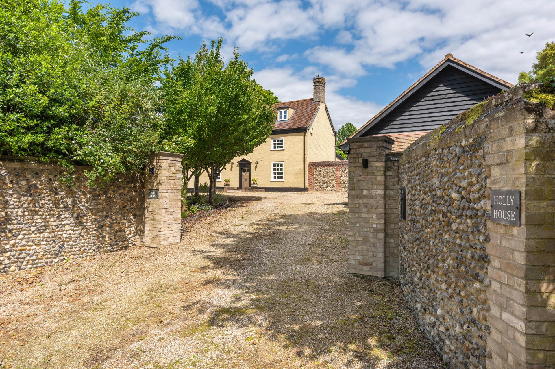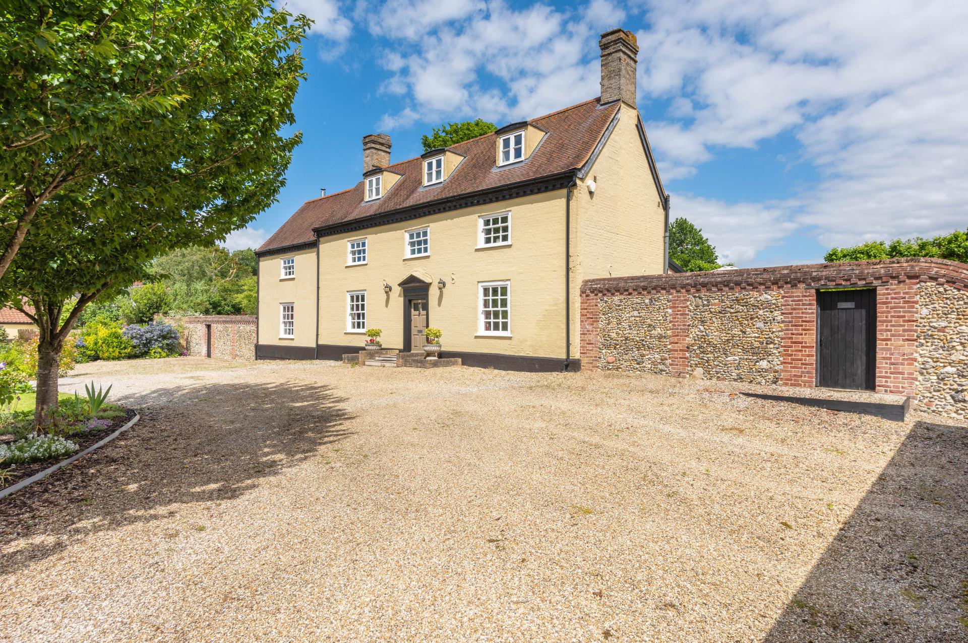 HOLLY HOUSE A rare opportunity to acquire an exquisite 18th-century former farmhouse, exuding timeless charm and character. This unique property offers five bedrooms and a generous number of reception rooms, which masterfully combines period features with modern comforts. The property is approached via a grand, dual entrance driveway, lined with mature trees. The sweeping gravelled driveway offers ample amount of parking and leads to a substantial double garage and a versatile workshop. Don't miss the chance to own this extraordinary blend of historical elegance and contemporary living.