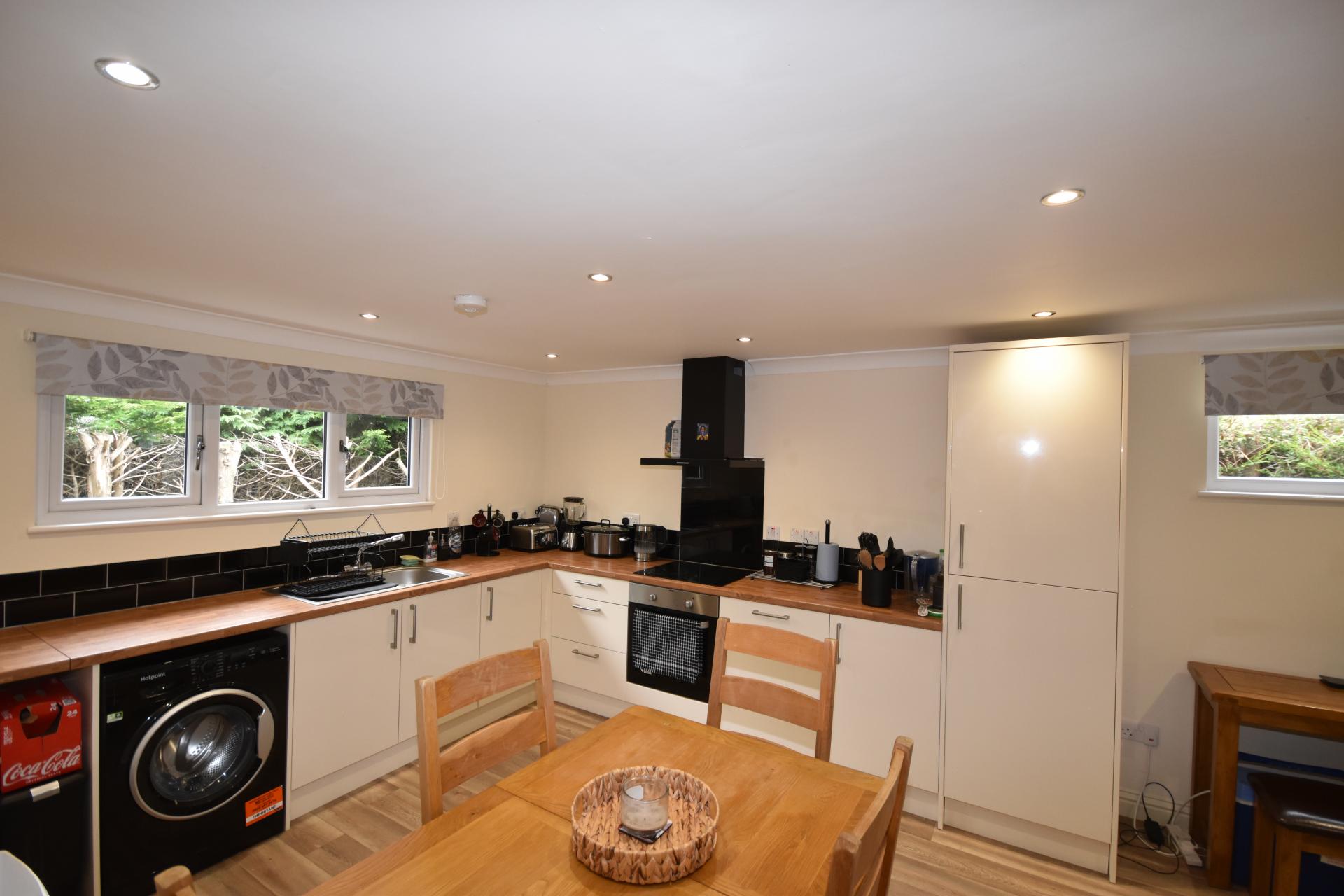 ANNEX 2 Annex 2 is entered through a large conservatory that leads into a spacious living room. The layout continues into a kitchen and dining area, equipped with an integrated oven, hob, fridge freezer, separate dishwasher, washing machine, and dryer. Both double bedrooms are generously sized and include built-in wardrobes. The family bathroom features a bath, shower, WC, and vanity sink unit.