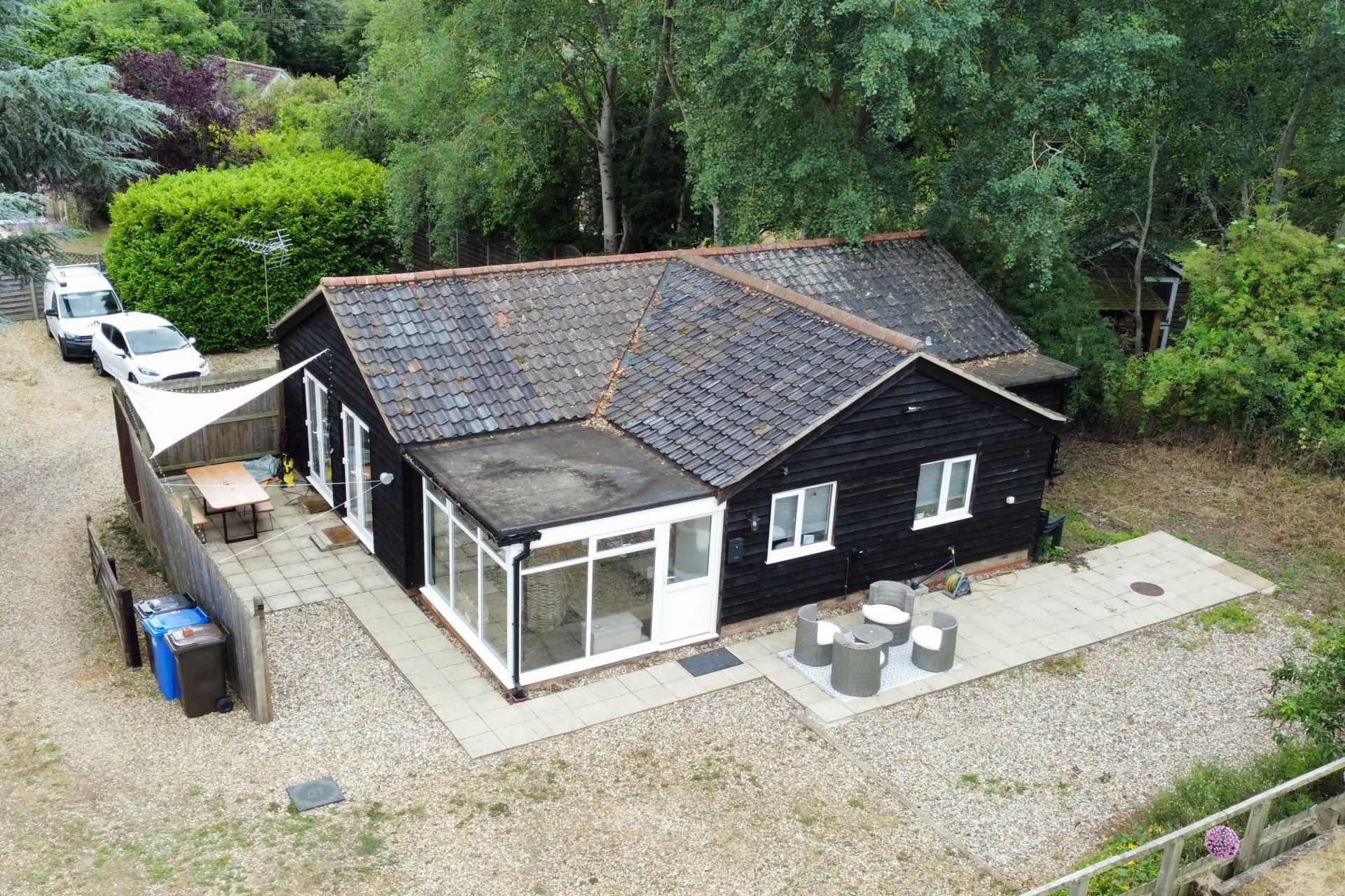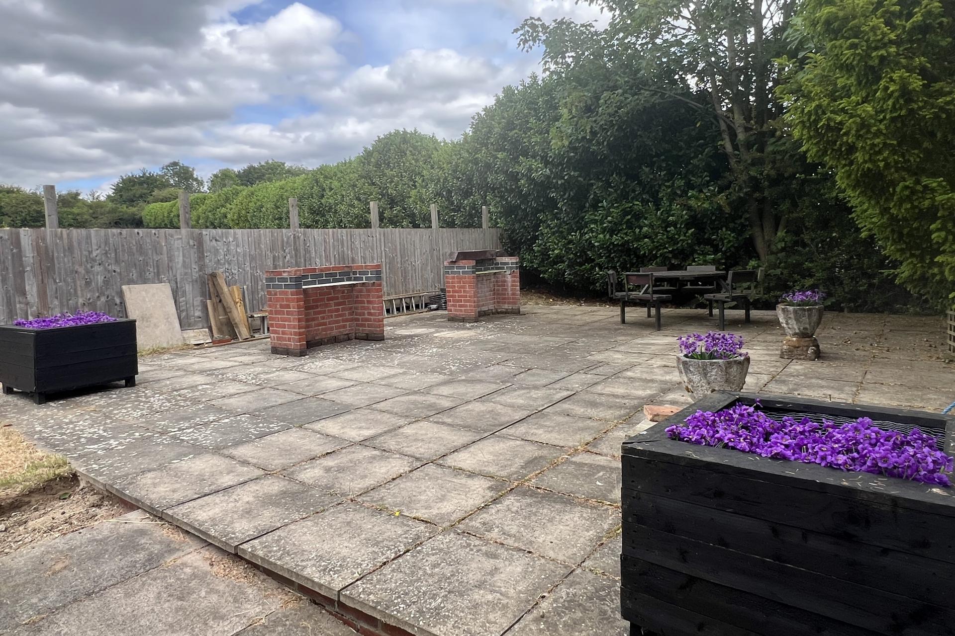 A separate driveway provides access to the two additional bungalows located at the rear of the property. Each bungalow has its own designated parking area, with both having access to a communal BBQ picnic area, enclosed by a wall and formal hedging. Beyond these bungalows lies a substantial meadow of approximately 1.5 acres, offering excellent potential for equestrian use.