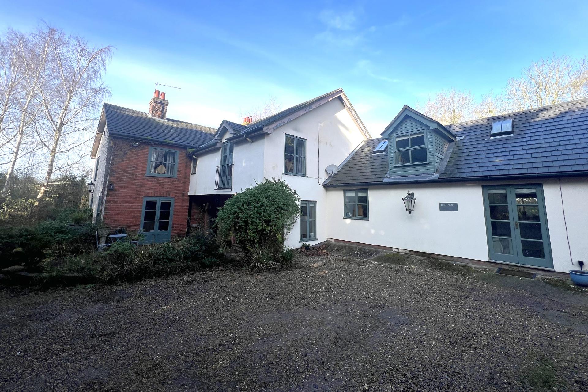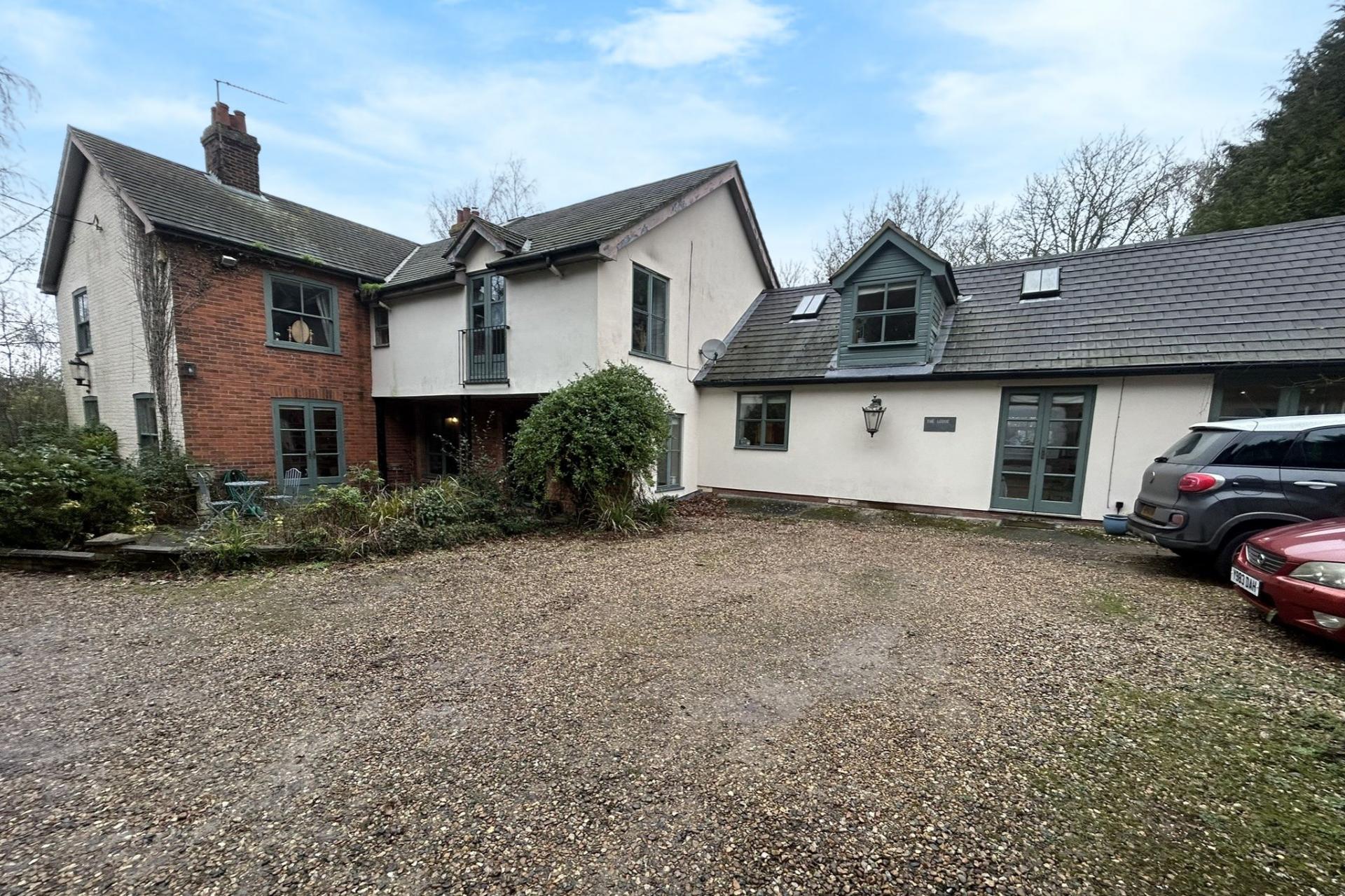 Approached through electric double gates, a long sweeping driveway leads up to the front of the property, providing ample parking. There is a spacious double garage with electricity, and above it, a versatile studio space with electric. Currently used as a gym, this area holds potential for conversion into a self-contained annex or additional living space.