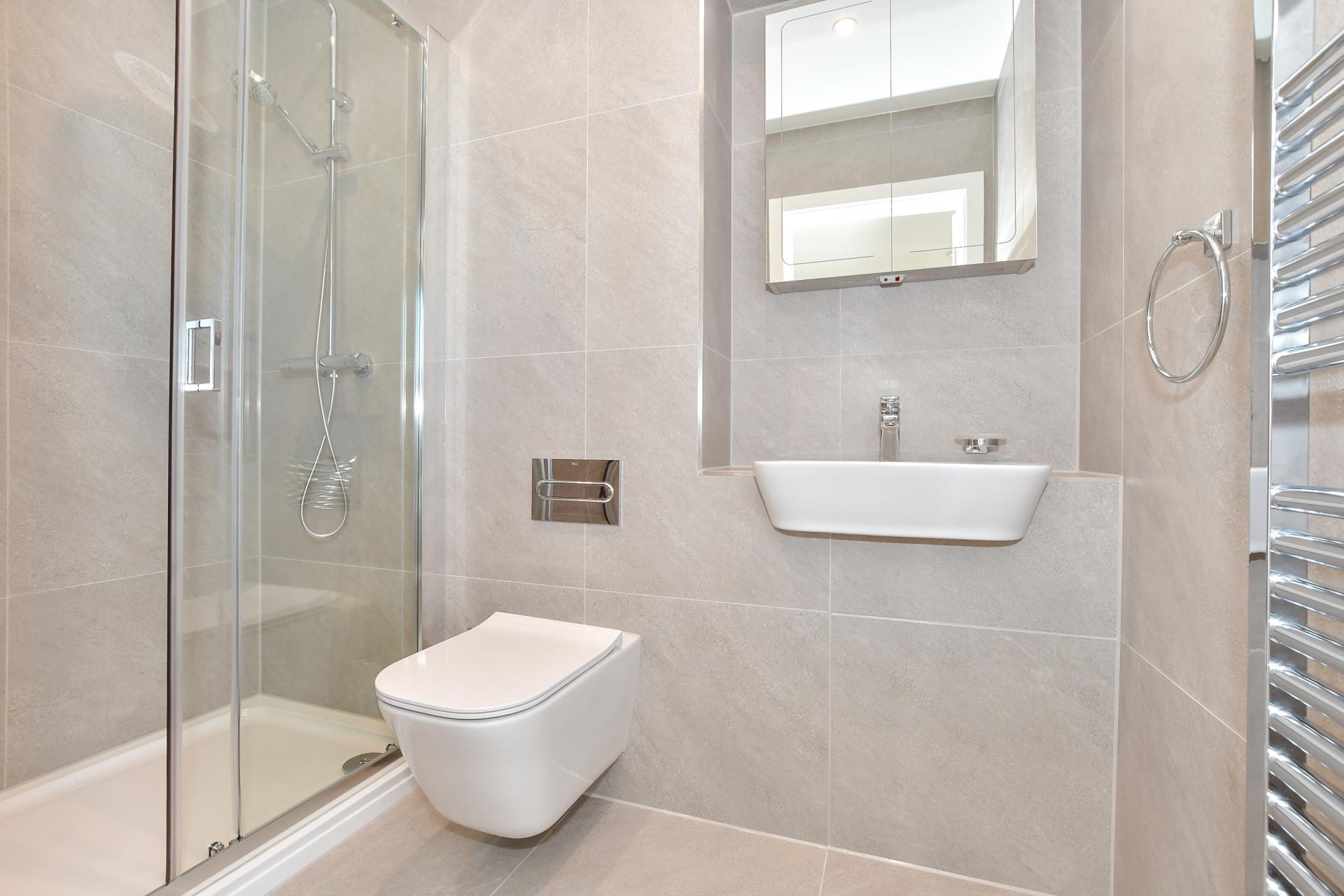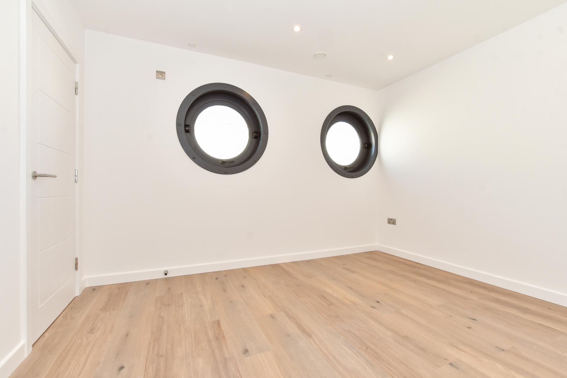 The first bedroom includes French doors to the private terrace with lovely views, built in wardrobes and a contemporary ensuite double shower room with underfloor heating. Along the corridor is a large boiler cupboard that incorporates a plumbed in washer/dryer, the family bathroom that has a fitted cupboard and underfloor heating and the second double bedroom with porthole windows