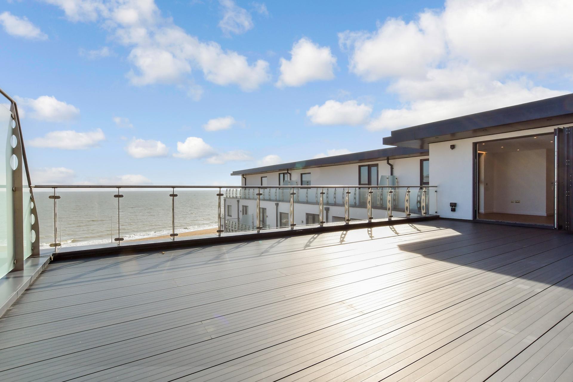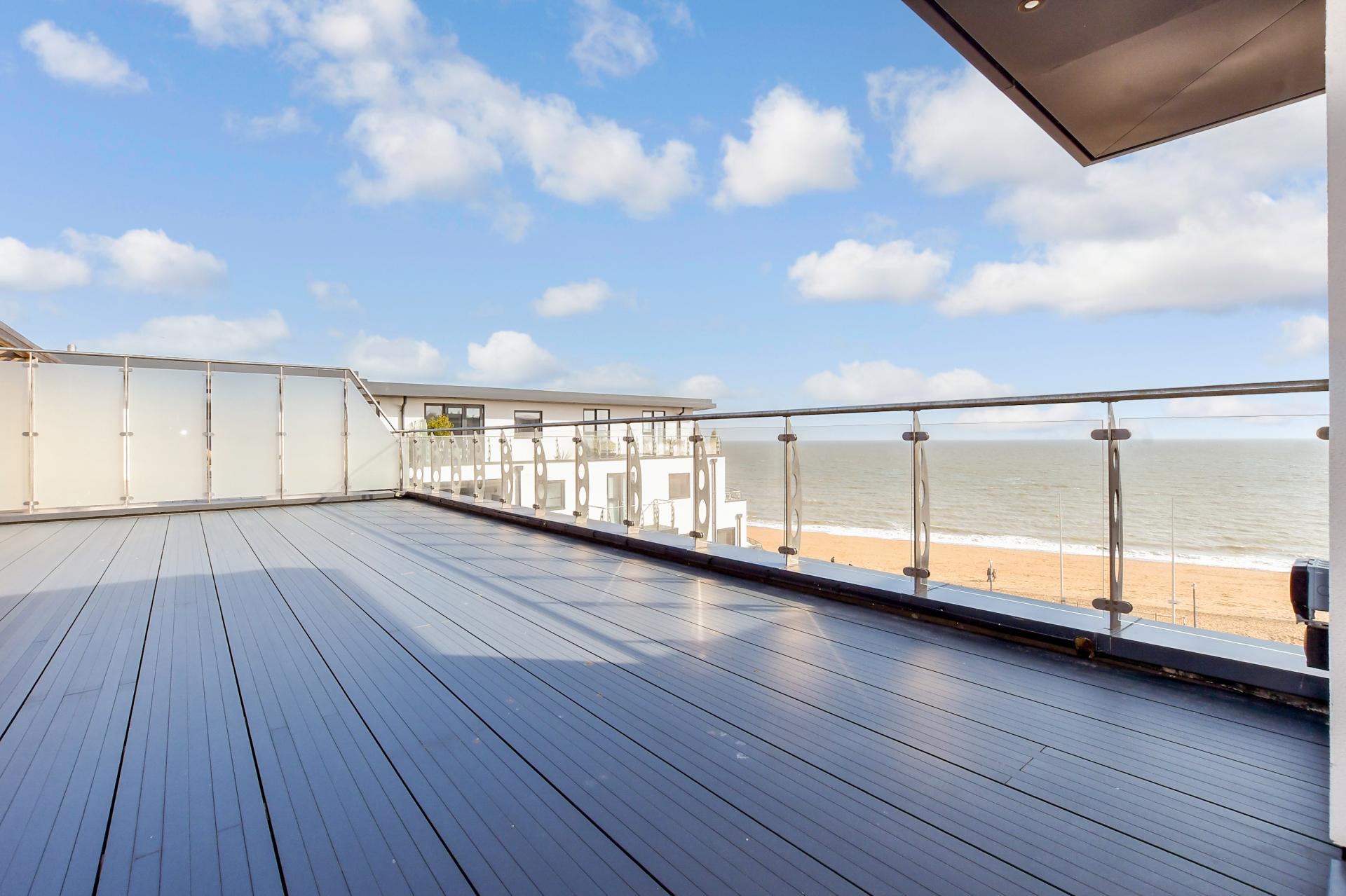 However, the roof terrace has to be the piéce de rèsistance of this delightful penthouse. It includes a large covered area so you can enjoy the views even if the weather is inclement. There is plenty of space to install a hot tub and/or a sauna, a barbecue and even a pizza oven while still leaving sufficient room for luxurious seating and dining areas. The panoramic vista is impressive with views across to France on a clear day while in the evening you may even see the twinkling lights of Calais and Cap Gris Nez.