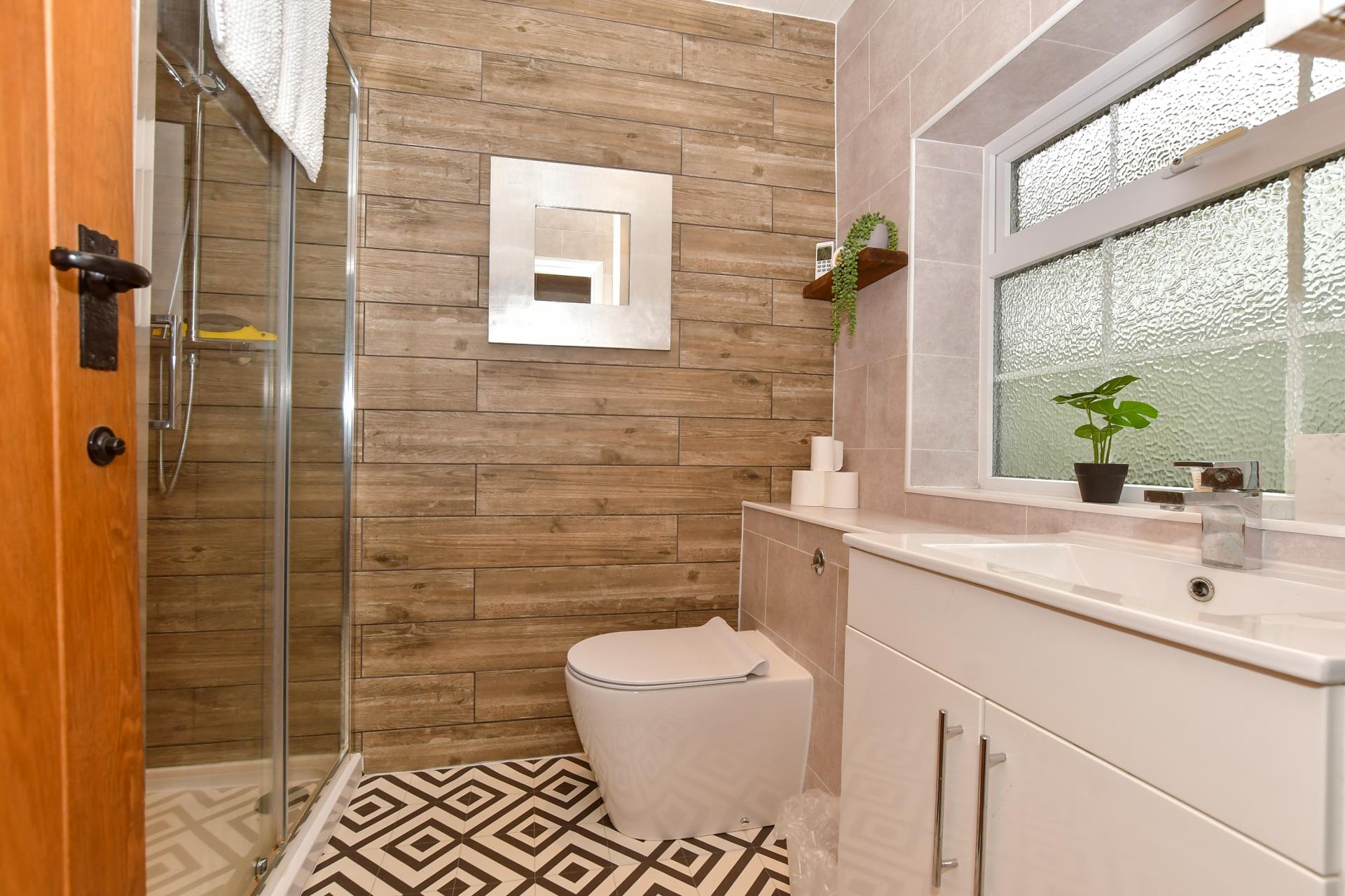 There is a hall with a large coat and storage cupboard and access to a spacious dual aspect double bedroom with a modern en suite shower room that could always be used as an office for anyone working from home. On the other side of the lobby there is a charming dual aspect lounge with parquet flooring and a two way log burner that keeps the property very cosy. There are stairs to the first floor and access to another dual aspect guest bedroom with a contemporary shower room.