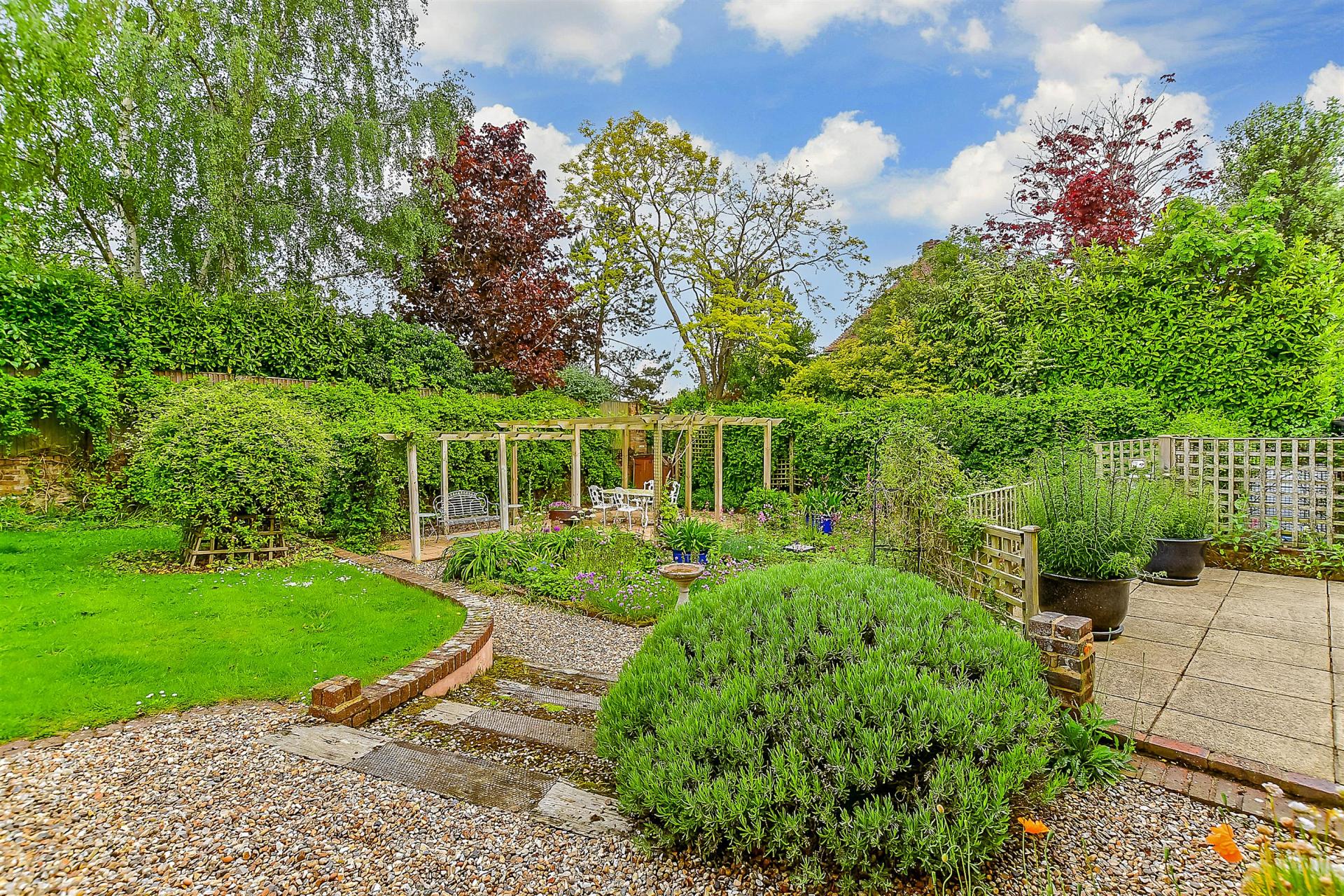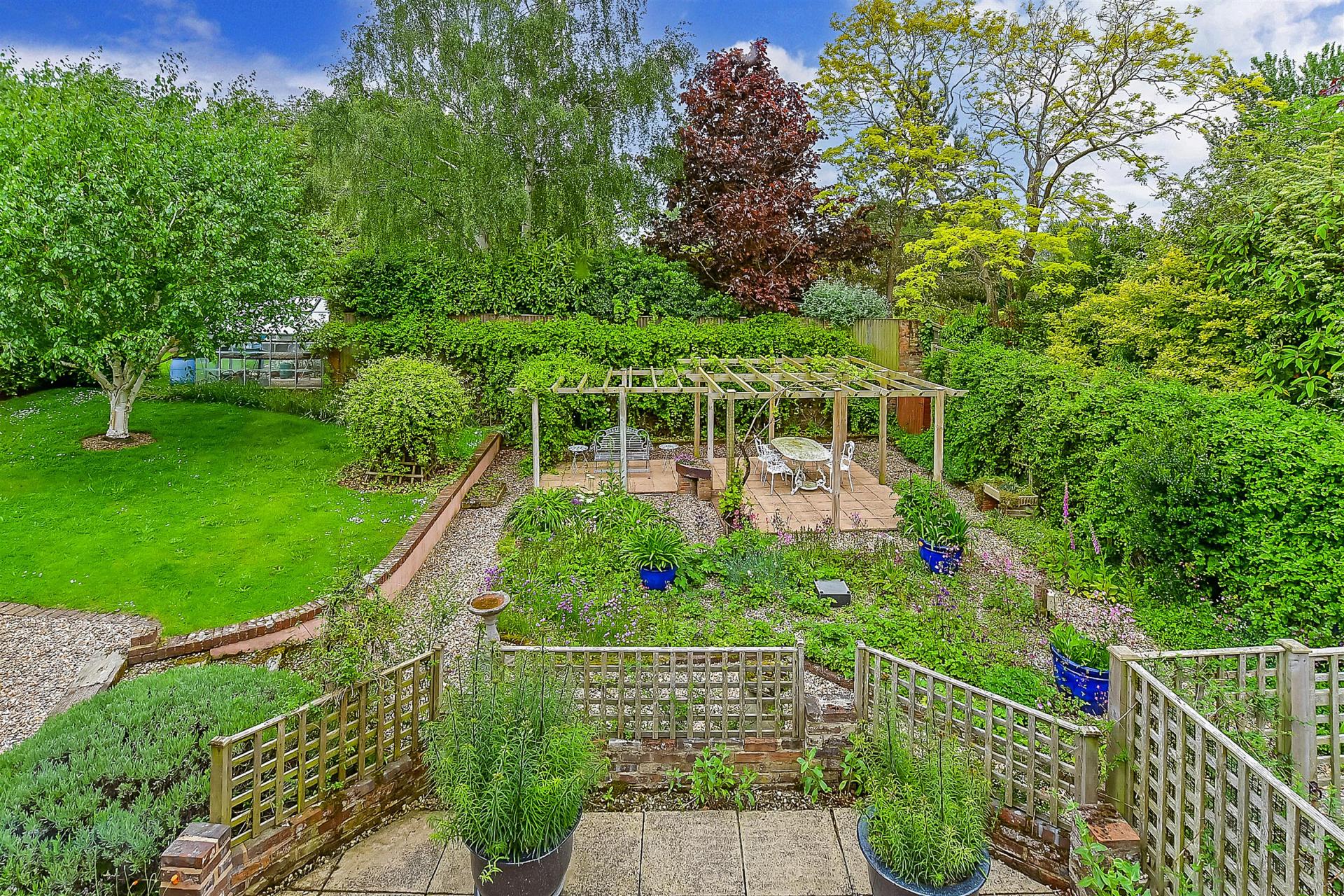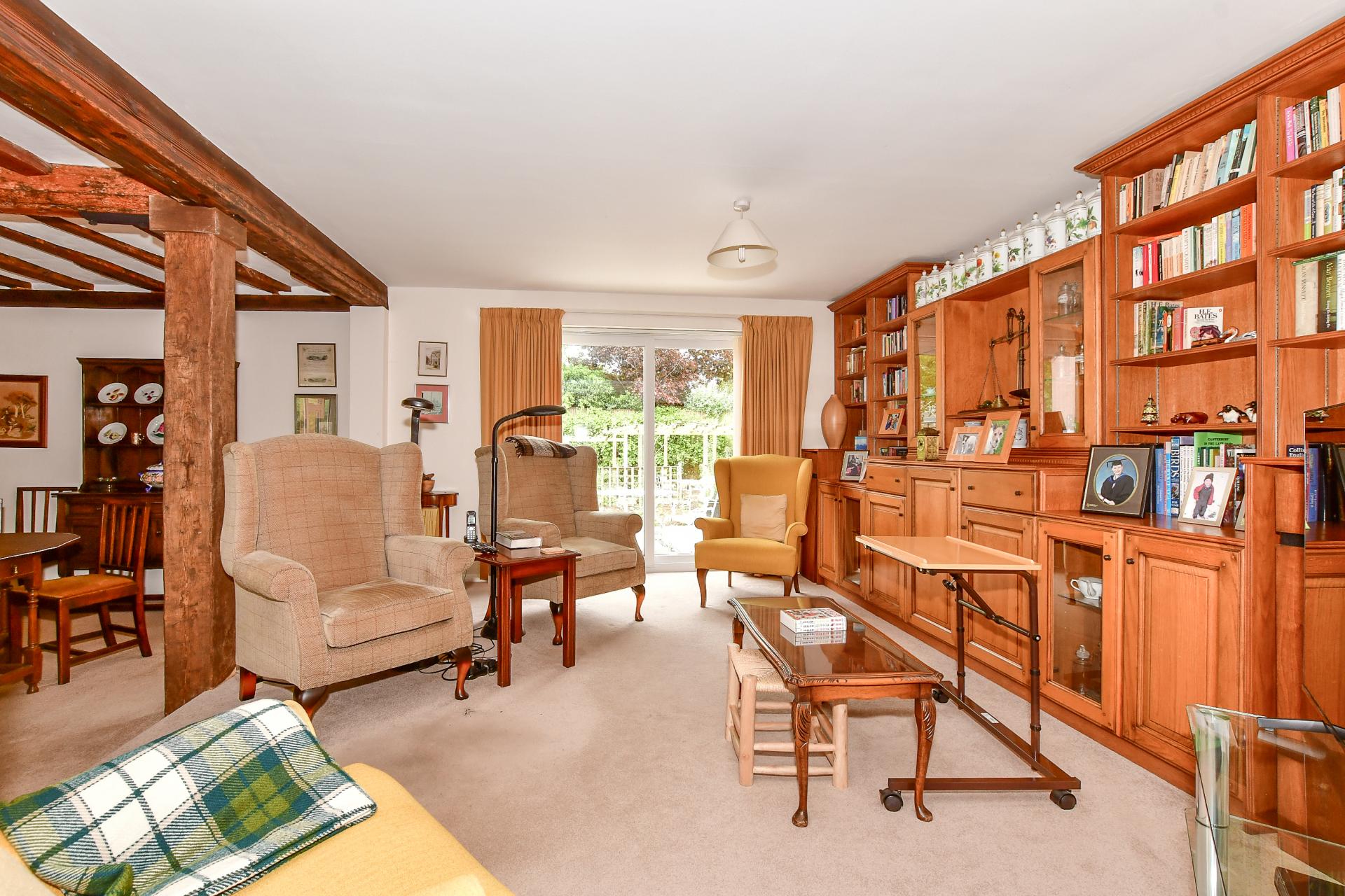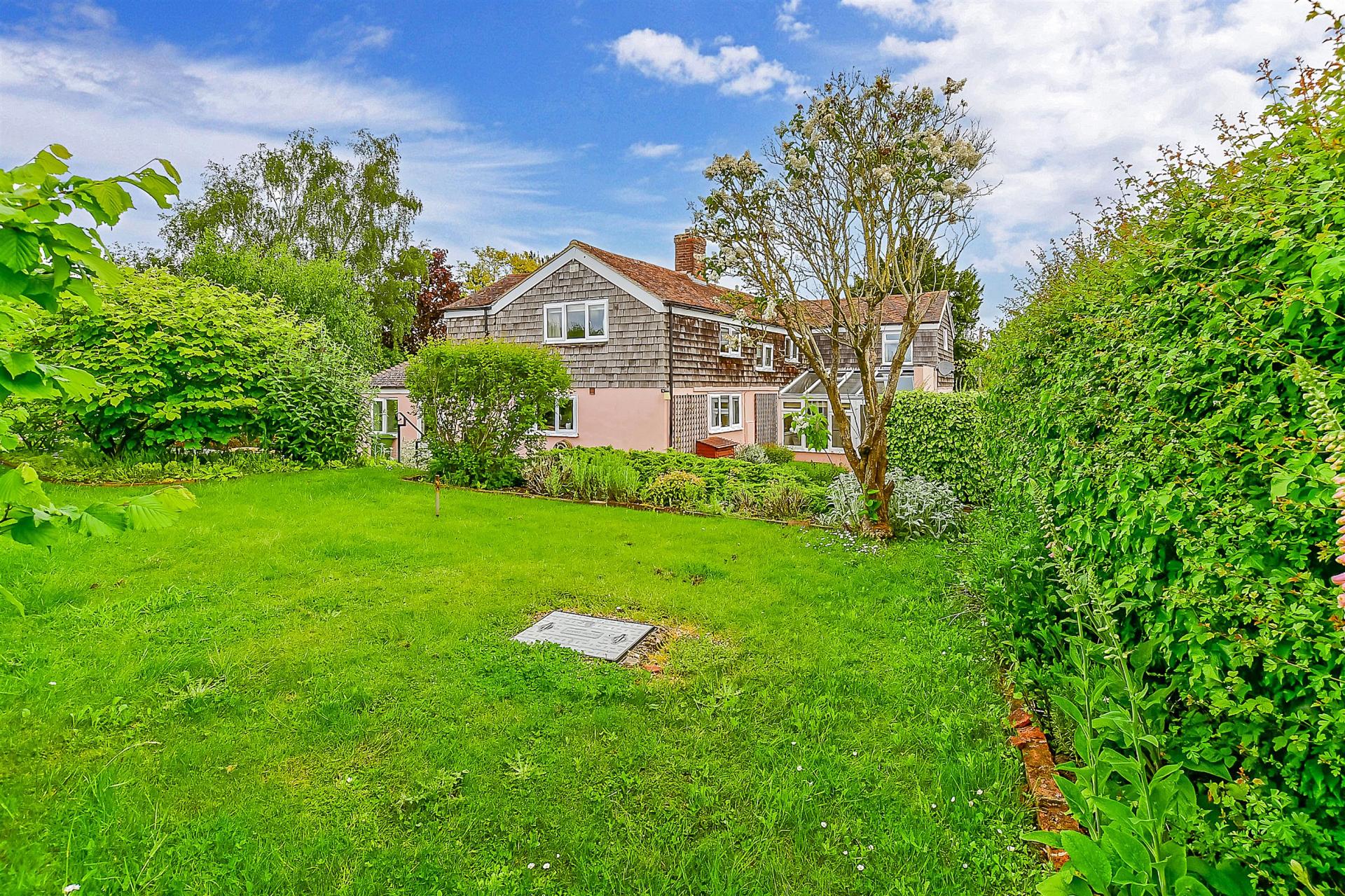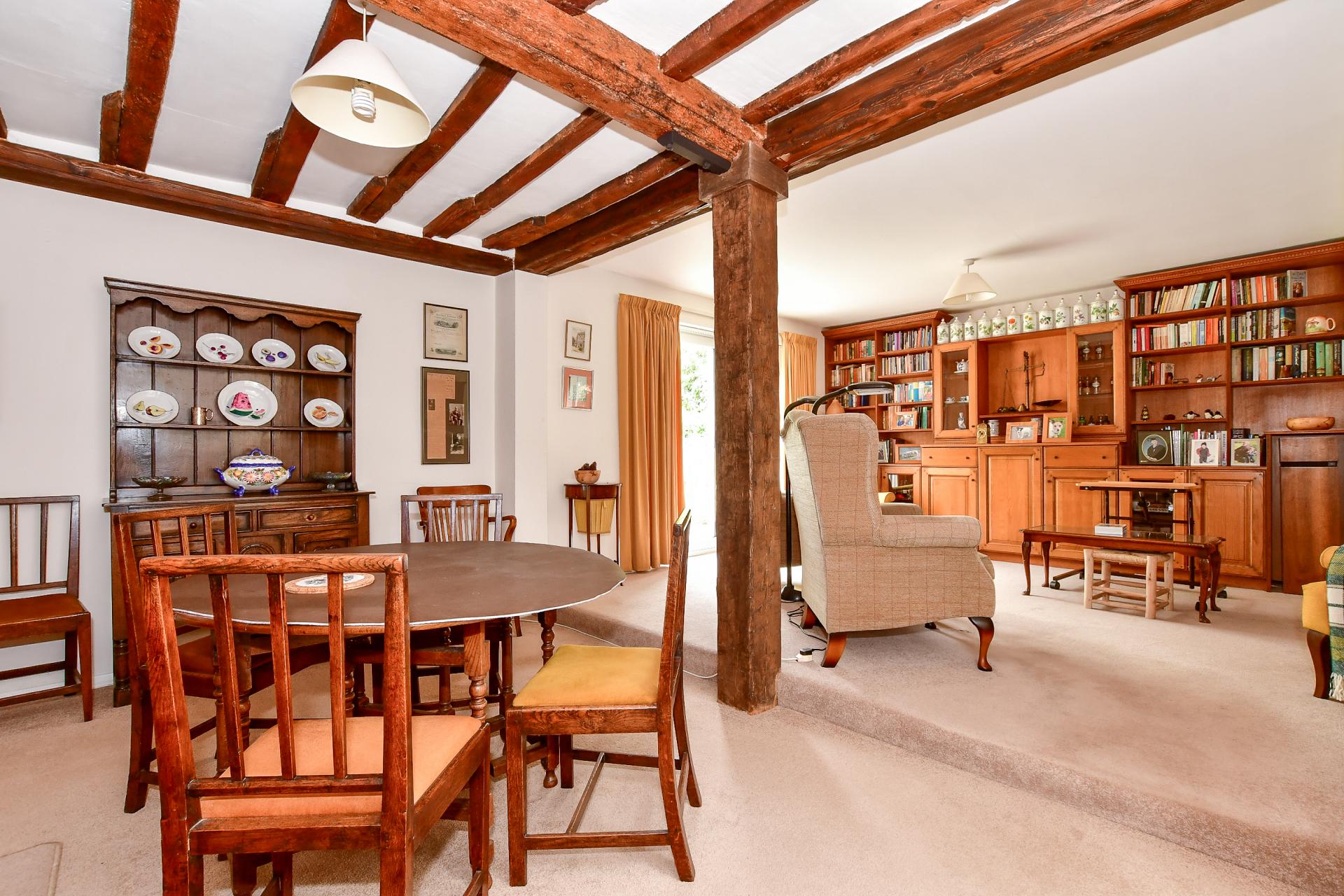 With its origins in the days when cottages where built with wide vertical and exposed ceiling beams as homes for farmworkers, this fascinating property has grown considerably over the years and has now become a sizeable four bedroom family country home, but still incorporates the character of a bygone era. Located in the charming hamlet of Hoaden surrounded by farmland and orchards it has rural views as far as the eye can see and nestles in mature gardens and includes an orchard opposite with fruit trees and an additional parking area. The cottage is approached via a five bar gate opening onto a wide driveway flanked by shrubs and lawns interspersed with mature trees as well as a log store. There is a brick paved path to an entrance door that opens into a charming conservatory with access to a separate room that would make an excellent office for anyone working from home as business visitors would have direct access and not need to venture into the more private parts of the property. Alternatively it could be a bedroom for an elderly relative who finds the stairs difficult or a teenager wanting a bit of independence and where they can entertain their friends.
