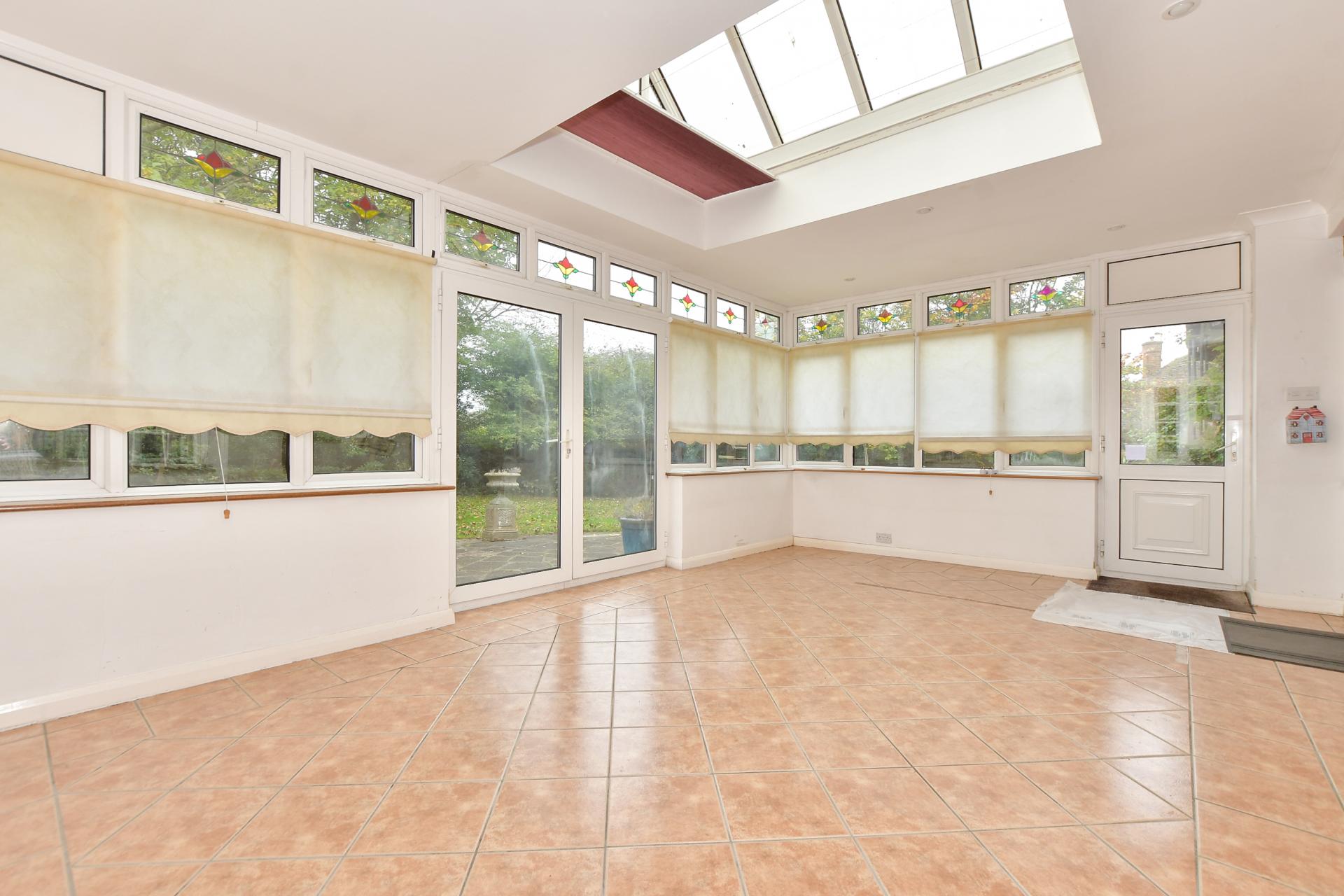 There are many different areas outside the property including a large crazy paved terrace bordering the large front lawn that has trees and a rockery area with a potential water feature, a summer house and a second garage with access from Dane Court Gardens and a door into the garden. There are paths bordered by trees and shrubs that wind around the rear of the property leading to a brick built workshop and covered storage area and back to the main garage.