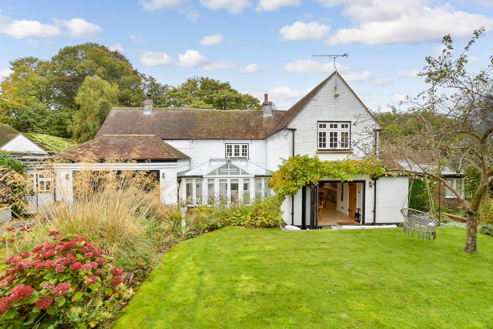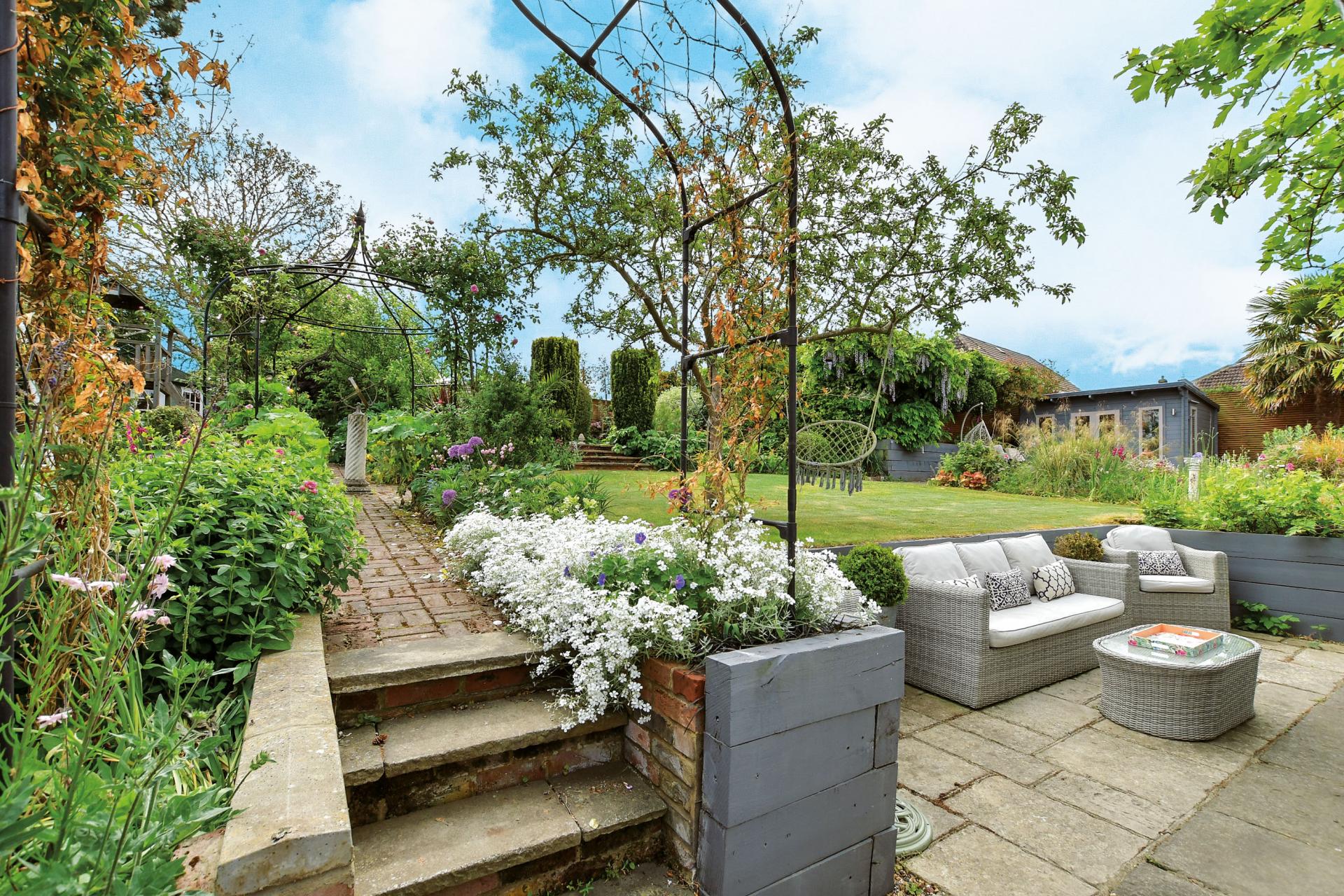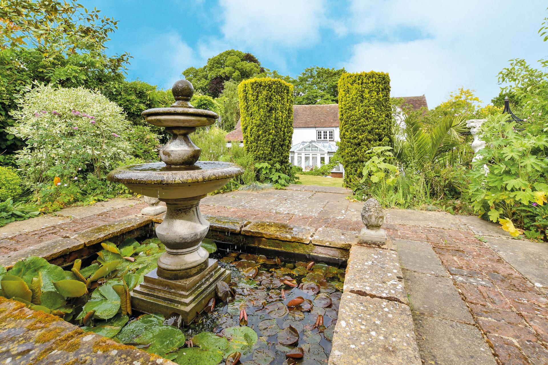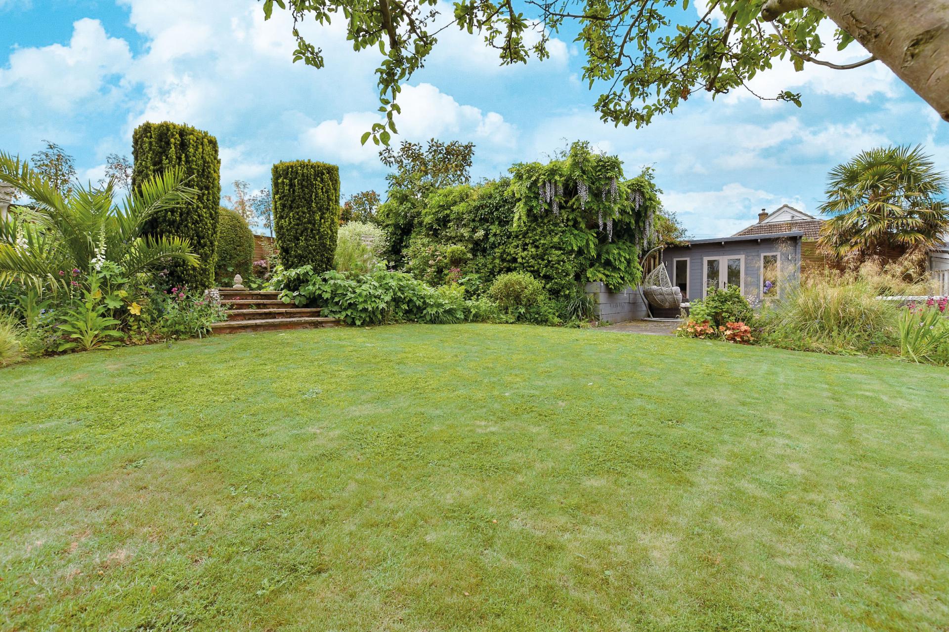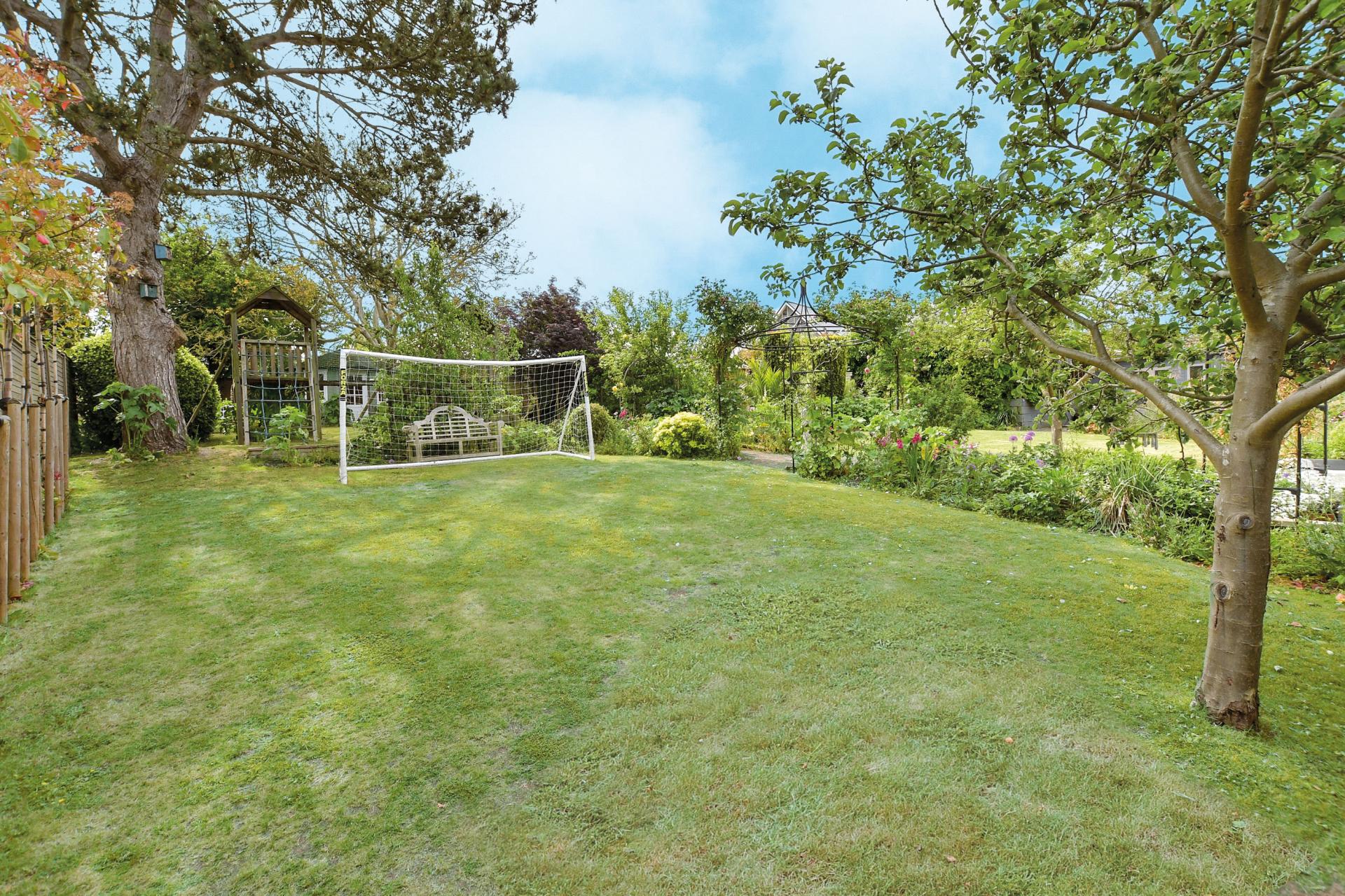 The stunning rear garden is a wonderful feature of this special property. It has a lower terrace that is ideal for soaking up the sunshine and watching the kids play on the large, beautifully manicured lawn and also features a large Canadian Spa hot tub. The terrace is surrounded by impressive specimen trees as well as fruit trees and shrubs with steps up to a period terrace and a charming central lily pond with a wonderful water feature and a delightful summerhouse. There is also a play area with a large children’s multi-activity climbing frame as well as two additional dual aspect outbuildings, one of which was purpose-built to use as an office and has insulation and power.