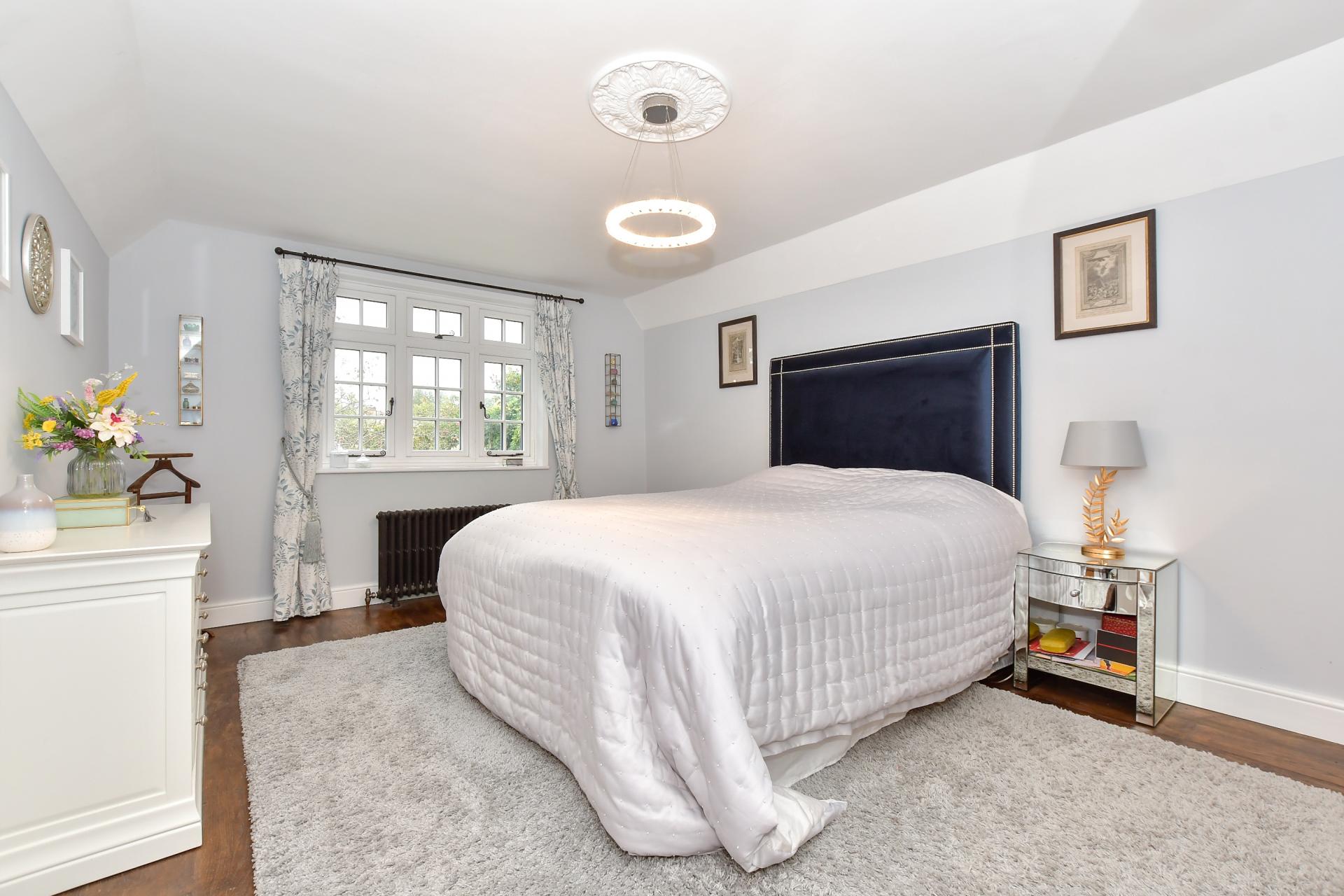 Upstairs there are four double bedrooms including the first bedroom that has an en suite bathroom and a guest room with a newly installed en suite shower.
