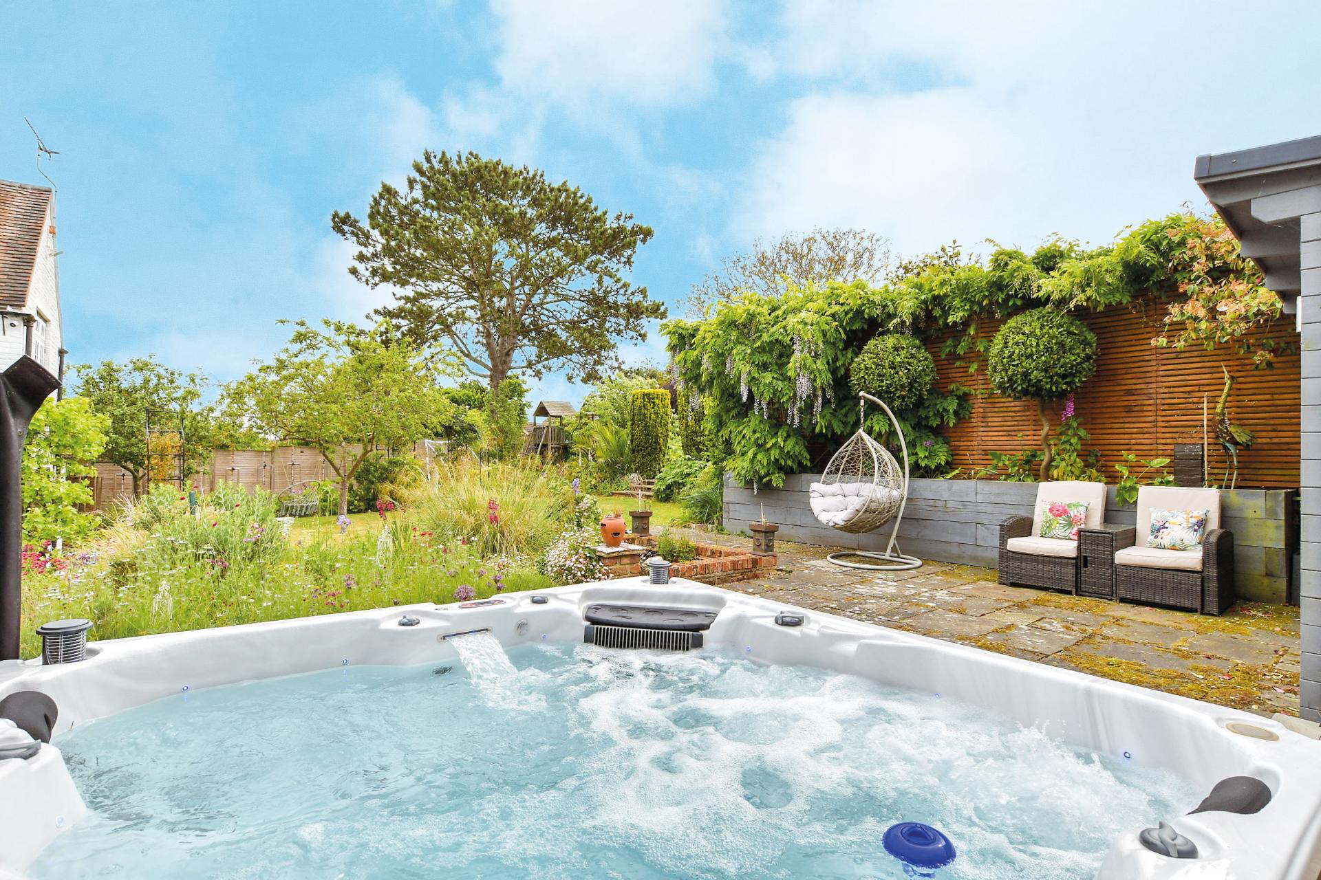 - Beautiful mature rear garden with summer house, jacuzzi and water feature