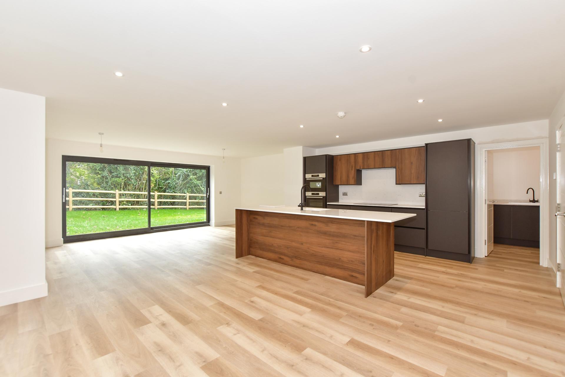 The front doors open into a spacious hall that has luxury, oak effect LVT flooring with underfloor heating that flows throughout the ground floor. There is a contemporary downstairs cloakroom and access to the 20ft dual aspect sitting room that has wide patio doors to the rear garden. However, the ‘hub of the household’ has to be the superb dual aspect family living space with its stunning kitchen area and plenty of room for seating and dining areas as well as two sets of wide patio doors to the garden providing easy access to the rear terrace and plenty of natural light.