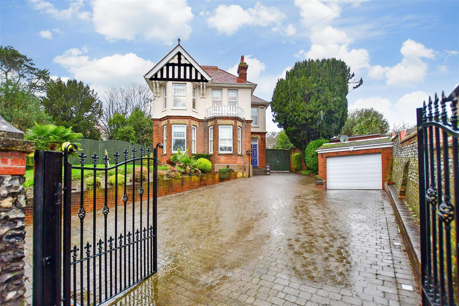 High on a hill in a delightful area of Dover you will find this charming detached Edwardian family home set in the midst of 0.4472 of an acre of grounds. It is approached via impressive flint pillars and a pair of wrought iron gates flanked by a flint wall leading to a driveway, the double garage and a charming front garden with a lawn, shrub borders and mature trees. There are also a pair gates that lead through to a large inner block paved drive so there is plenty of space for off road parking.