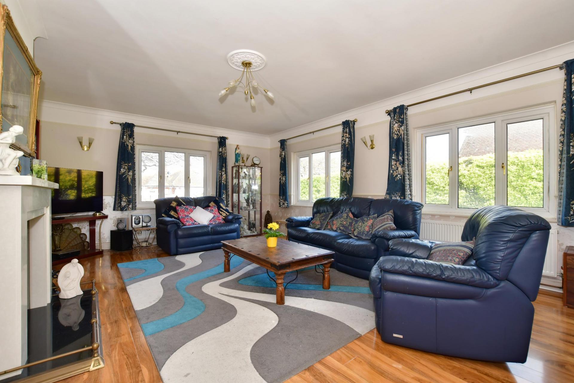 Located on a quiet road just a couple of minutes’ walk from the seafront is this charming and extended 1930s family home with cream coloured walls and a high chimney stack. It has plenty of flexible space including a couple of detached buildings that would make excellent offices/games rooms or converted into self-contained accommodation. The house is set back from the road with a gravel driveway to the garage and front door and additional off road parking at the front of the property on the ‘in and out’ drive.