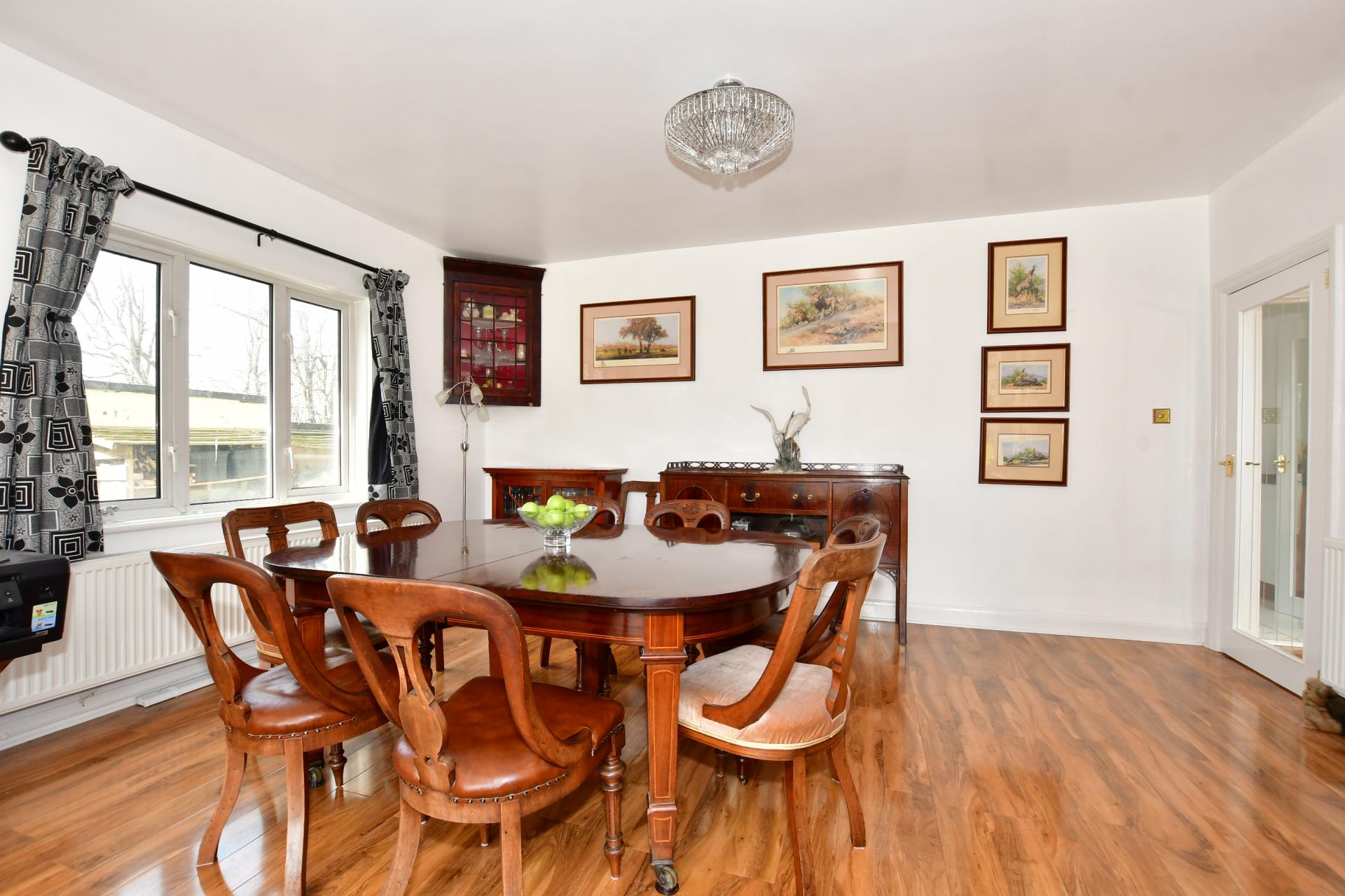 Family and friends will thoroughly enjoy a meal in the very spacious open plan dining and sitting areas. There is a wall of bi-folding doors to the rear terrace and delightful views across the garden and, when these doors are open, you definitely feel as though you are bringing the outside indoors. There is a big kitchen/breakfast room with tiled flooring, a central island and units housing an induction hob, a built in oven and stand alone appliances as well as access to the conservatory/utility room and an outside door to the boiler shed and storage facilities.