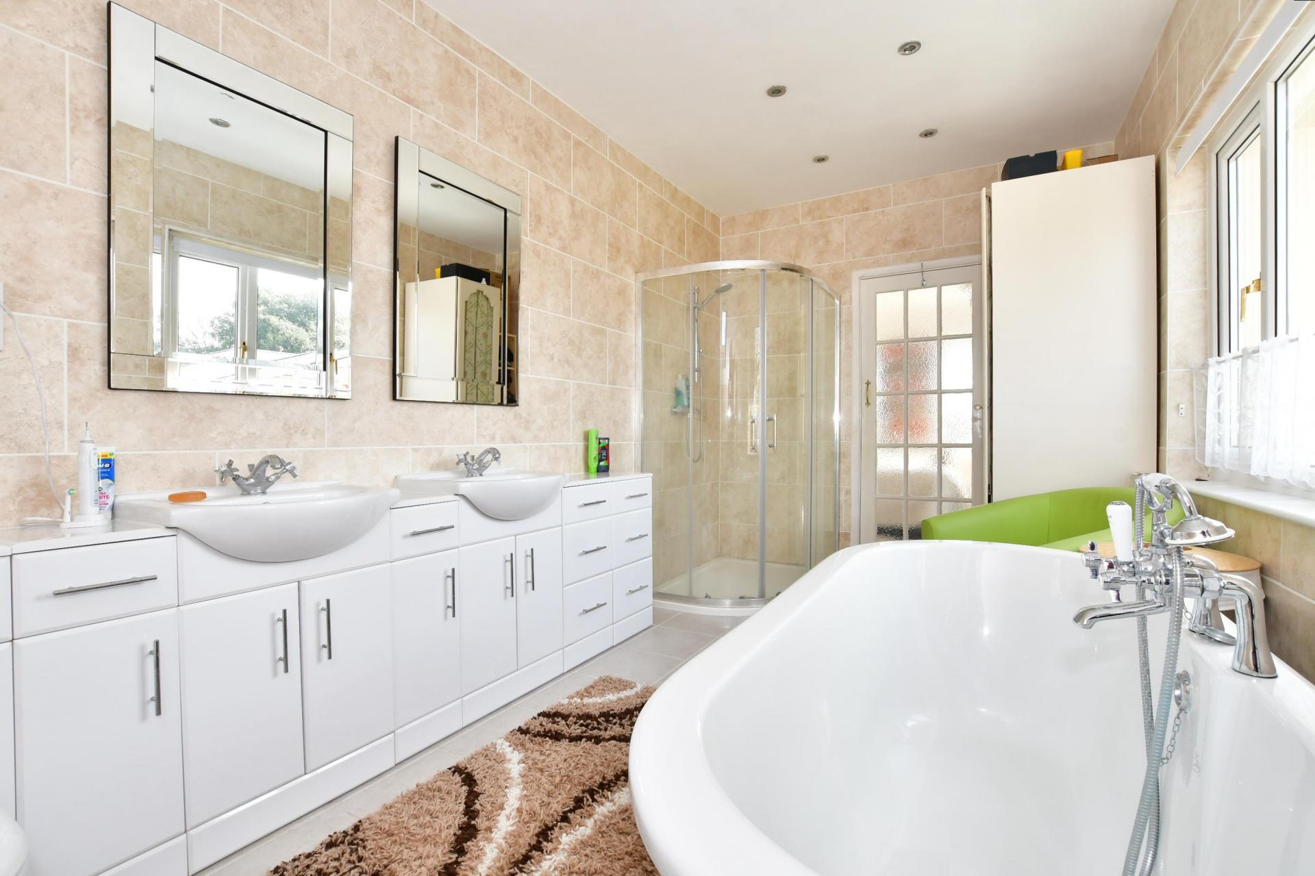 On the first floor landing there is an airing cupboard and an opening to the fully boarded and insulated loft that also has lighting, as well as access to the family bathroom and four double bedrooms. These include the main bedroom with its impressive en suite bathroom that has a stand-alone claw foot bath, a separate shower and fitted vanity basins.