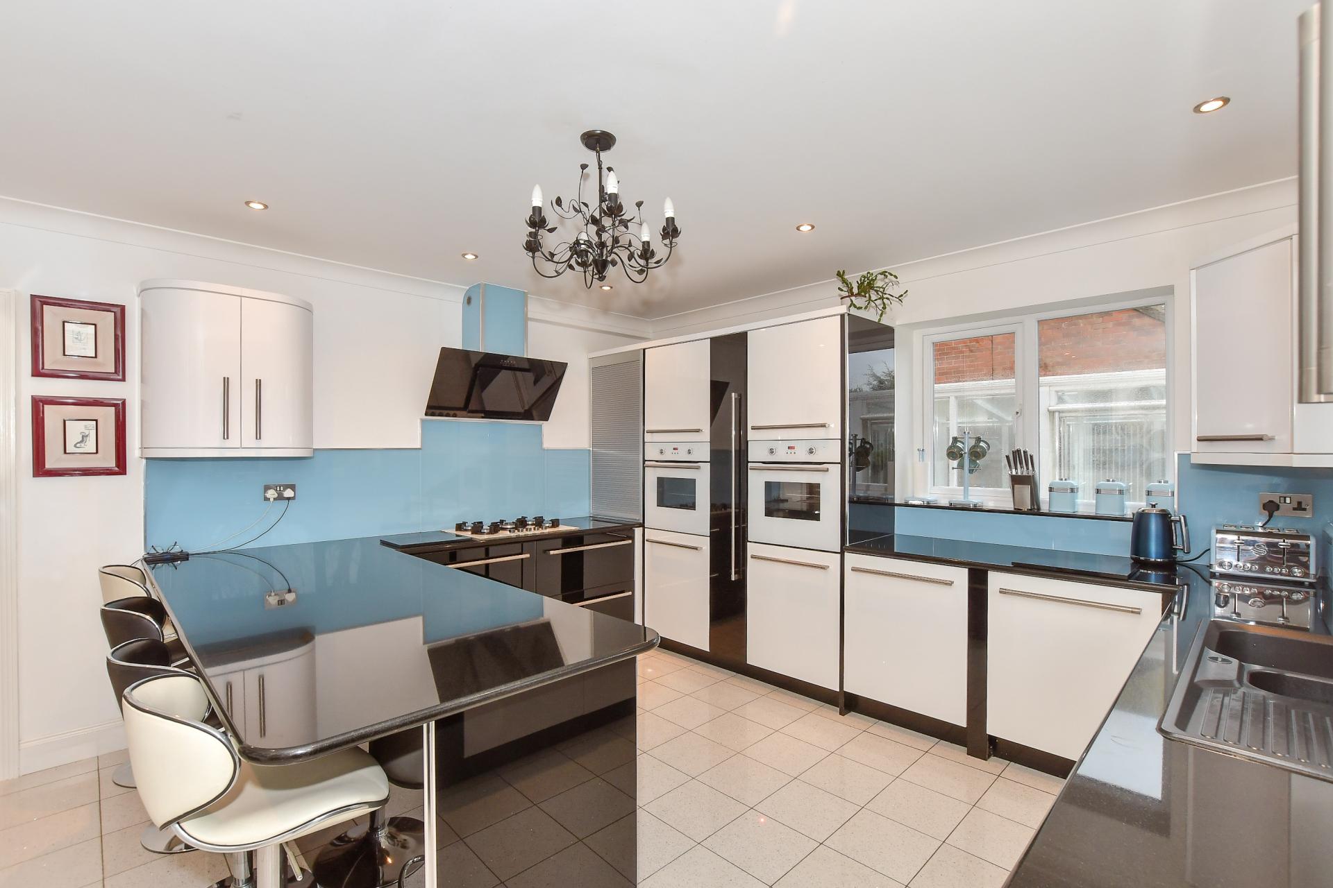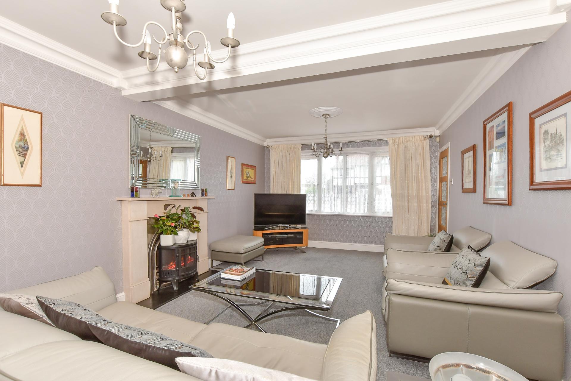 Only a stone’s throw from the clifftop in Cliftonville and located near the end of a leafy avenue is this delightful and extended detached family home. The front is surrounded by a wall with a gated entrance that leads to the garage and a large paved area where you can park a number of vehicles. Although the property has been beautifully modernised to provide everything required for today’s discerning homeowners, it still retains some charming original features such as coved ceilings and ceiling roses, panelled doors, dado rails and a fireplace that add to its special character.