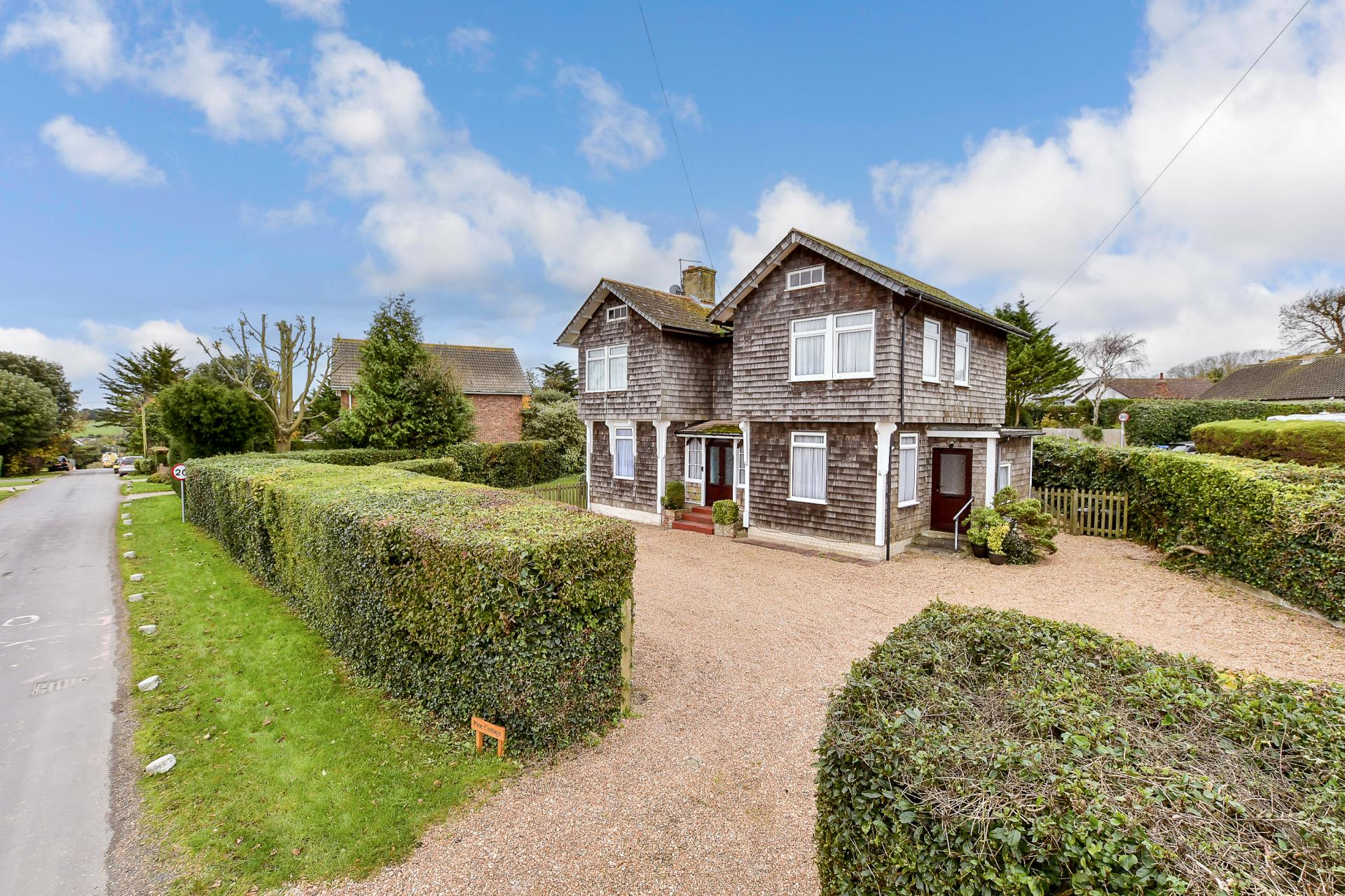 The house is situated in a quiet and peaceful area of the delightful village of Kingsdown, only half a mile from the beach and close to the golf club. It nestles in a spacious garden with a large gravel frontage where you can park six or seven cars, while there is rear access to the double garage from Victoria Road. With its cedar shingle cladding, chimney stacks and twin rooflines it has a charming exterior that continues once you cross the threshold through the wood and glazed double front door.