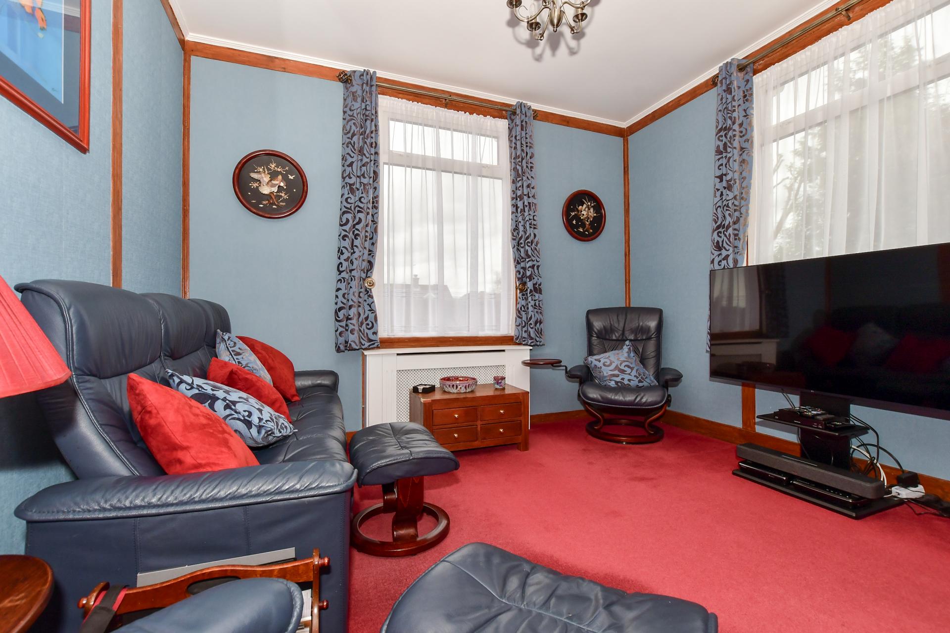 The original staircase leads up to a cloakroom and three bedrooms including a single with an airing cupboard and two dual aspect doubles with the principal having fitted cupboards and far-reaching views with glimpses of Pegwell Bay.