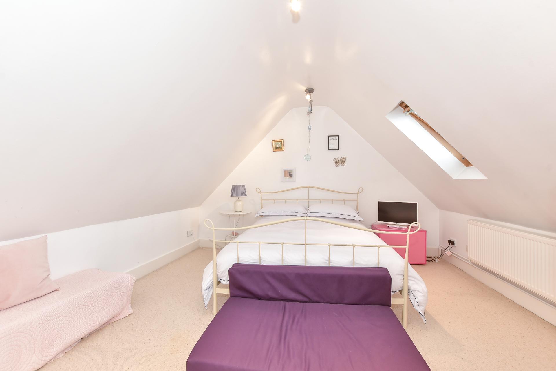 While on the second floor you will find a seating area with views to the top of the roundel and a fascinating arch through to a vaulted ceiling double bedroom with Velux windows. No doubt a teenager will instantly want to reserve this floor as it creates a very special ‘hideaway’ and somewhere to entertain their friends.