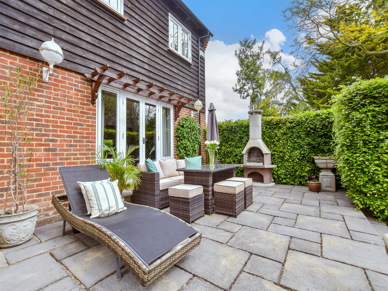 There are farm shops nearby and the picturesque Chequers pub. This was a timber framed hall house dating from the 1500s and now offers a lovely selection of homemade food and a variety of wines and ales. There is also a good primary school and St Faith’s prep school. Staple is not far away with a village hall and recreation ground and the Black Pig pub and restaurant ‘avec chambres’. There is also a garden centre with a café and nearby is the award winning Barnsole Vineyard.