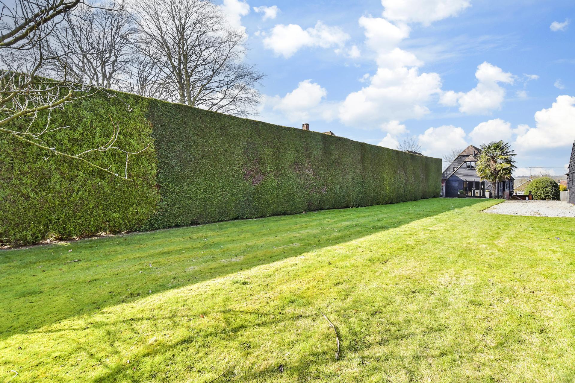 The space above the double carport includes a double bedroom and a shower room, so would be ideal for older children wanting a bit of independence. Alternatively it could make an excellent office if you want to work from home undisturbed by activities in the house or it could perhaps become an art and craft studio. Outside there is a small courtyard area and a large lawn bordered by a high hedge.
