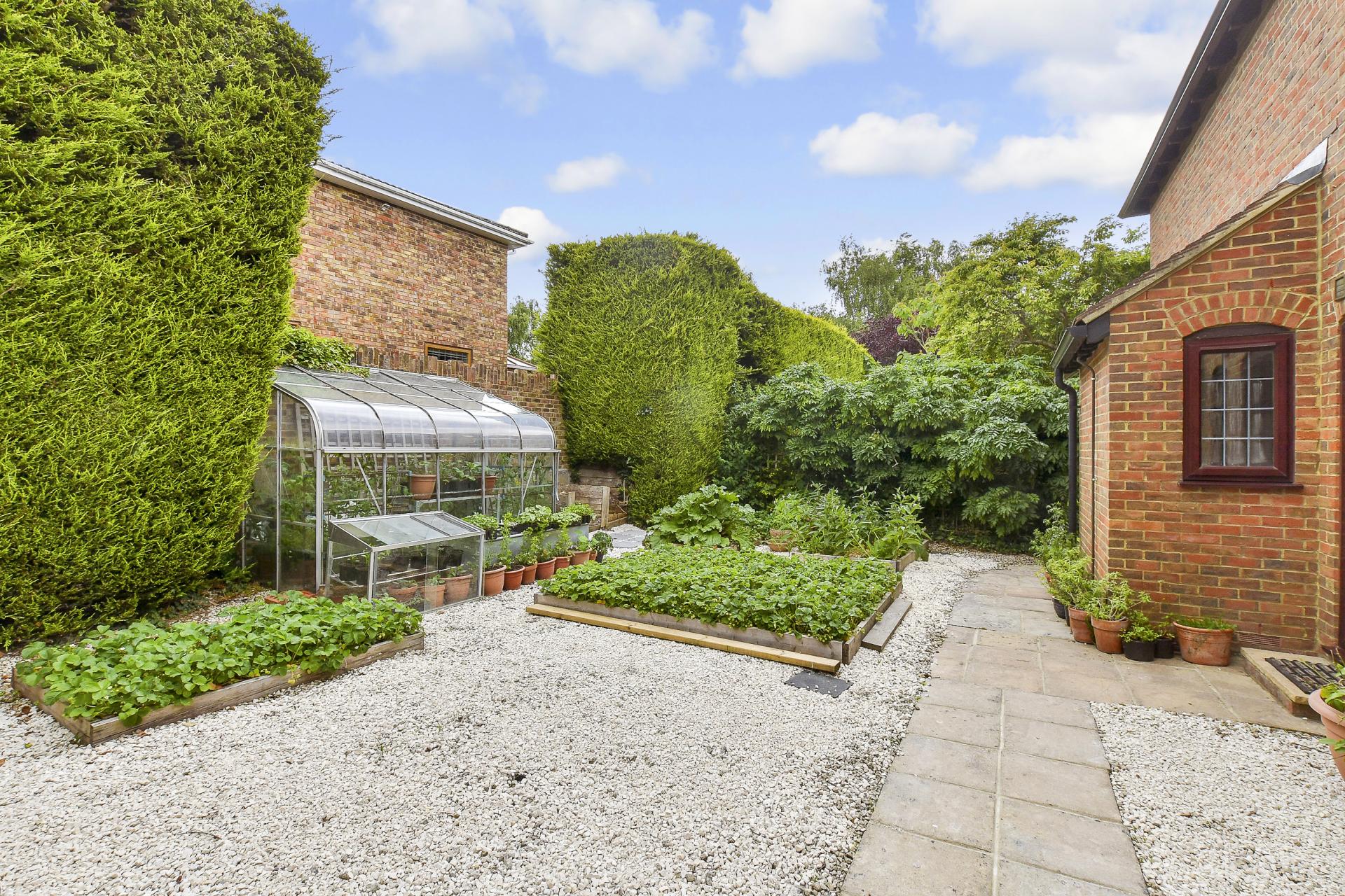 Behind the house there is a block of four stables with a hard standing forecourt. The stables are currently uses as outbuildings but would be ideal for any horsey enthusiasts and, although there is no paddock on site, field livery is available less than a mile away at Badgers Oak in Chartham Hatch. As well as the trees, shrubs, wildlife ponds and kitchen garden, out back there is a beautiful wildflower meadow and vast organic vegetable garden which provides sufficient vegetables to keep you going all year long and is surrounded by a high hedge providing privacy.