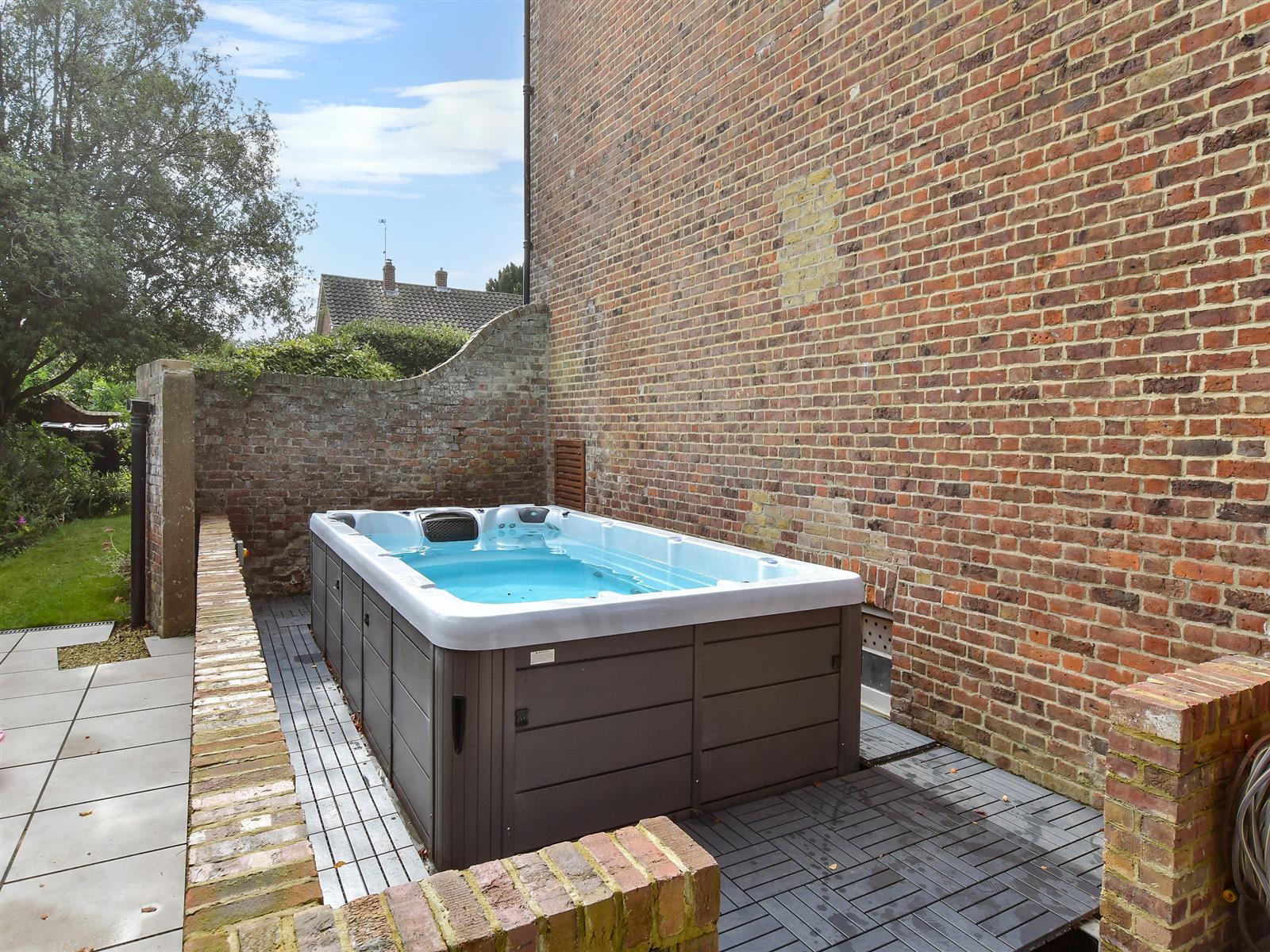 Wonderful surprises await you in the garden with a delightful swim spa in a semi-enclosed space while the expansive terrace is ideal for outdoor entertaining or watching children play on the large lawn. Surrounded by shrub borders and mature trees, the garden also has a small orchard area with apple, pear and plum trees, while original steps lead up to a paved path with gate access to a public footpath, providing excellent dog walking opportunities. The garden also includes a summerhouse with lighting, electrics and a decked terrace, overlooking a lily-pond with views towards the pergola covered ‘rose walk’.