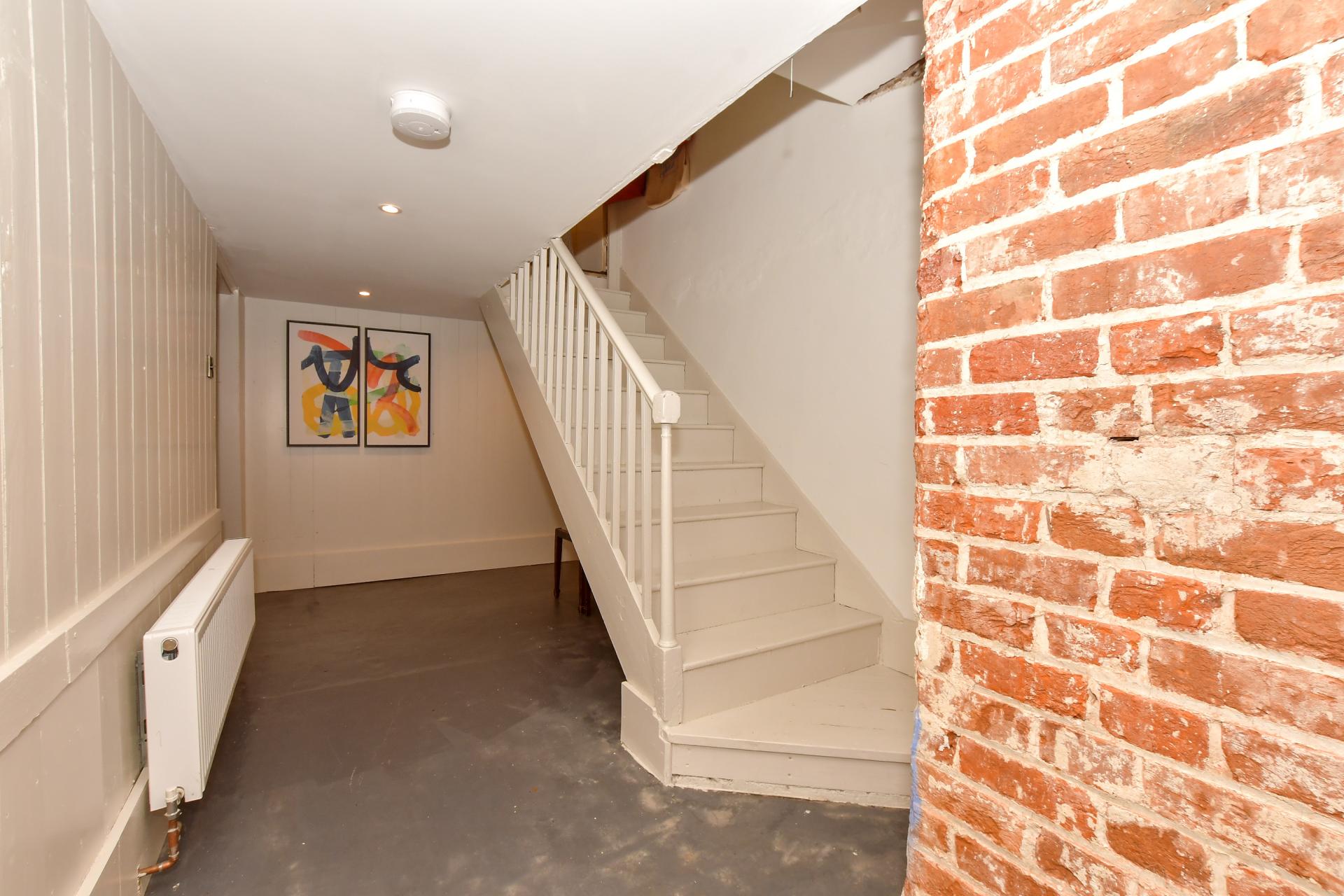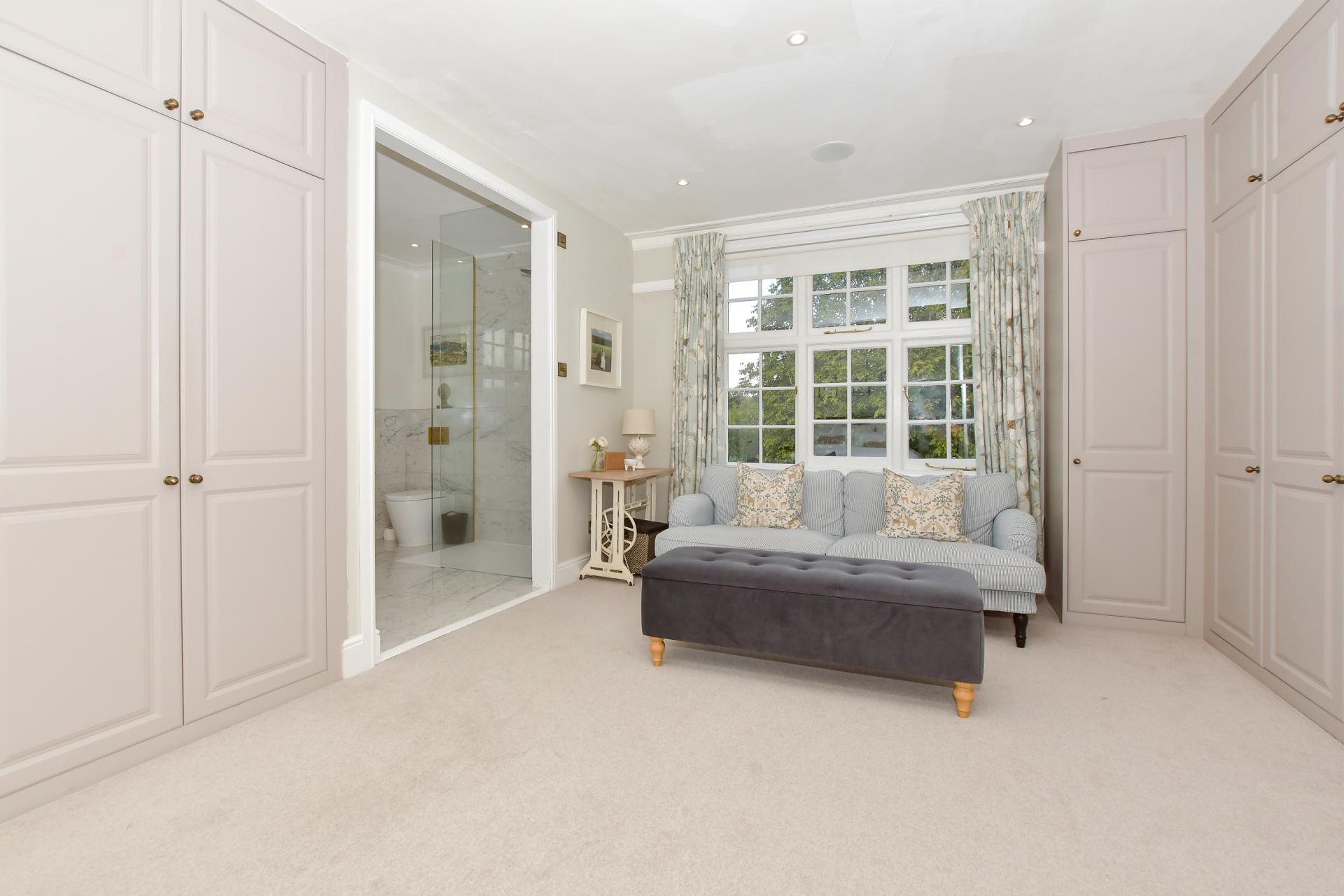 On the first floor half-landing there is a family bathroom with vanity basin and an oval freestanding bath where you can lie and admire the sunsets, as well as a separate cloakroom. There is a window on the first floor landing that provides plenty of natural light as well as a linen cupboard. It leads to three double bedrooms with cast iron fireplaces and built-in wardrobes as well as steps to a large vestibule that leads to the impressive main suite. The master bedroom features a stunning en-suite with a walk-in double shower and floating twin basin, and a charming semi-circular bay window providing space for a dressing table, with further scope in the room for a sitting area with views over the orchards. As you ascend the stairs to the second floor, there is a fascinating original lathe and plaster feature on the wall, curated by the current owner and is certainly a conversation piece. The second floor features a family bathroom with large roll top bath, walk-in double shower and store cupboards, a double/twin bedroom with fitted cupboard and a large guest room with built-in wardrobes, fireplace and seating area.