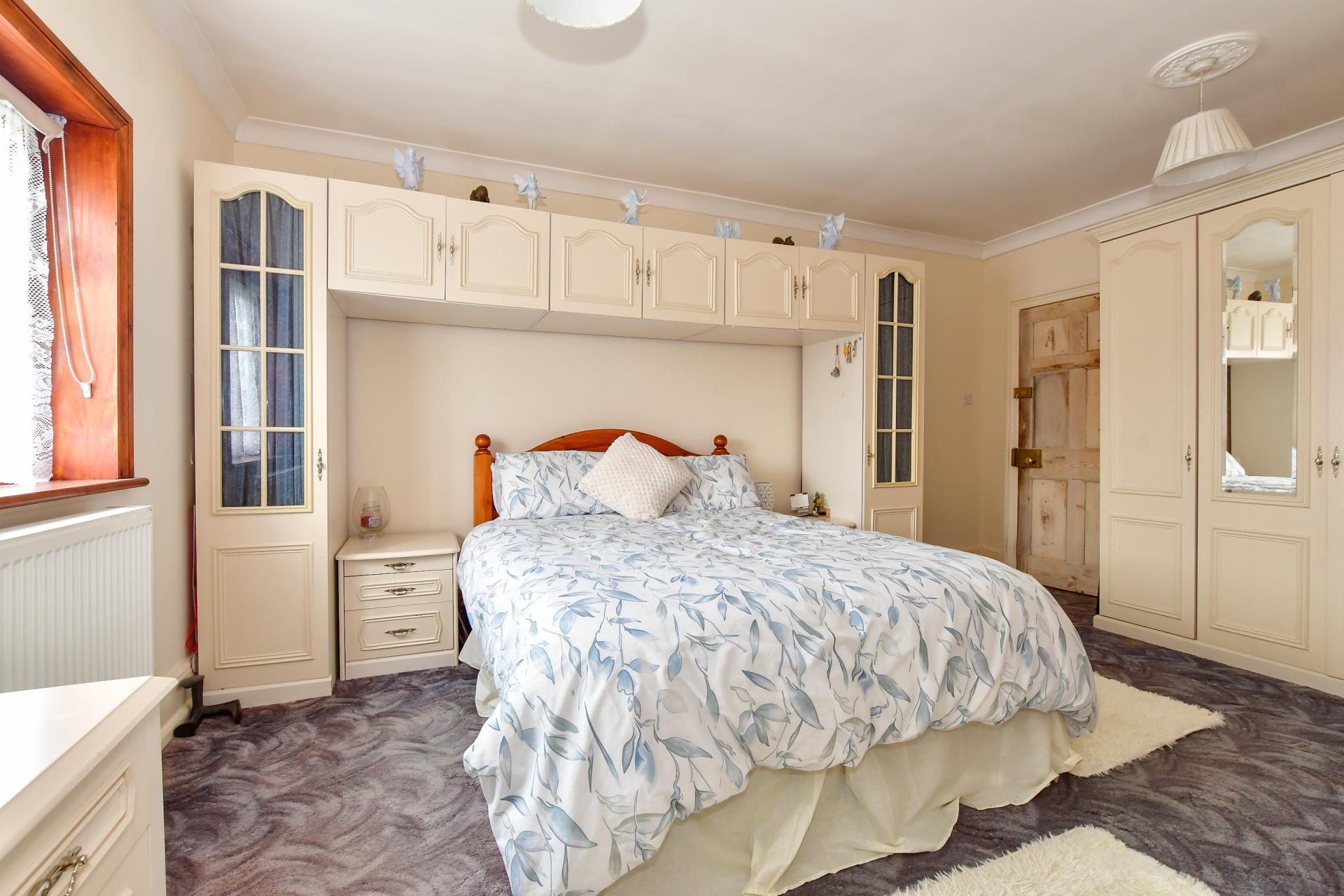 The drawing room includes a fitted cupboard and could work well as a home office or an extra bedroom. Also on the ground floor is a shower room, a lockable understairs cupboard, a ‘concealed’ coat cupboard and a small upper cupboard.