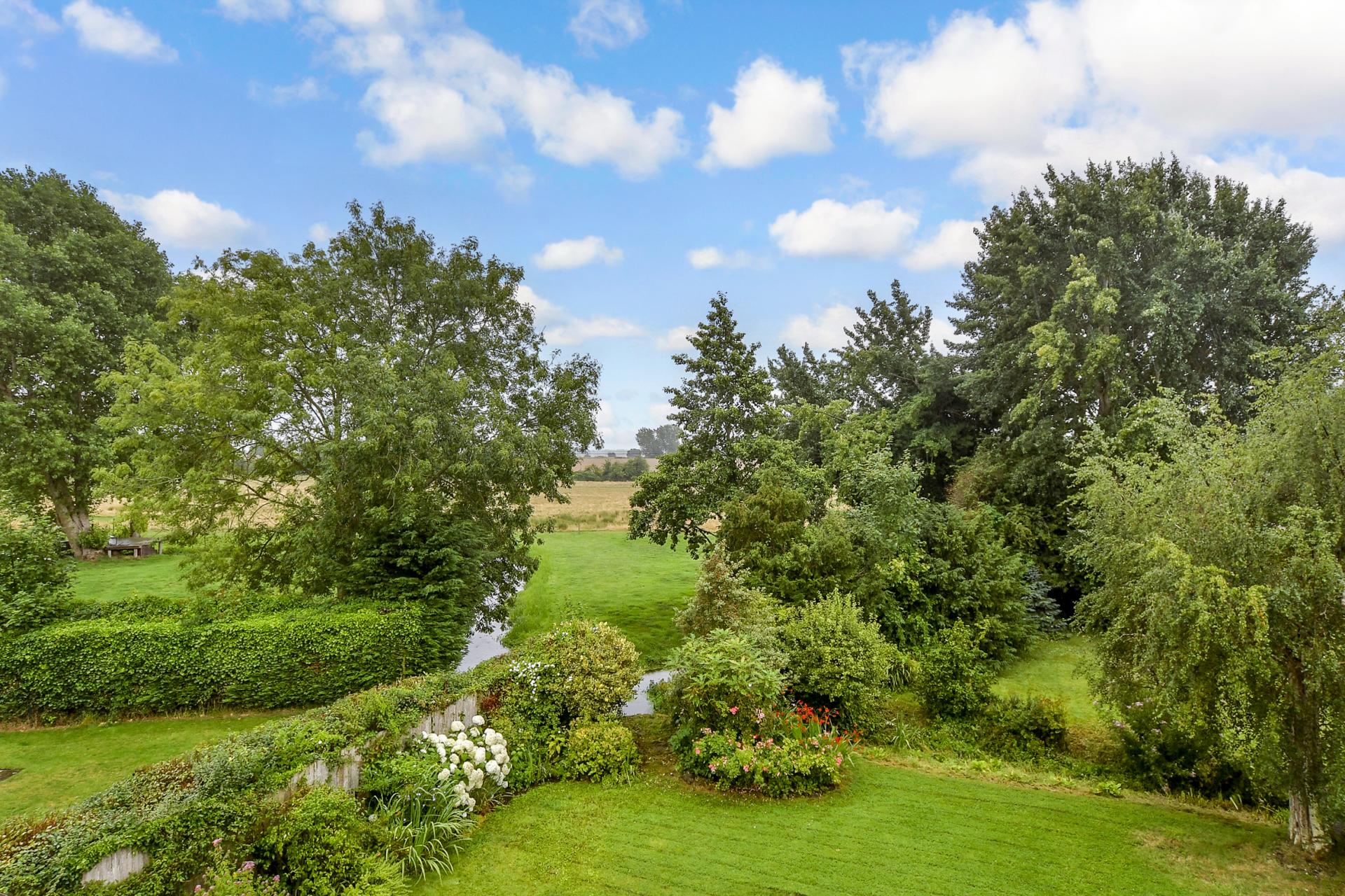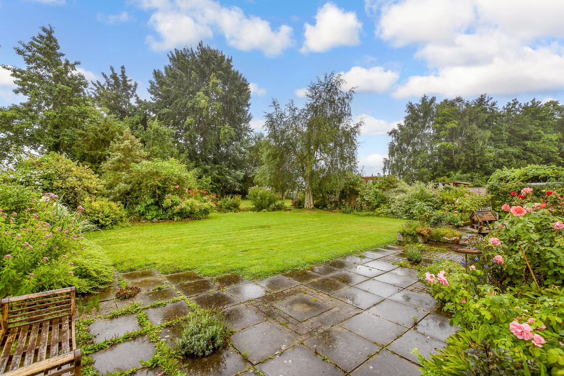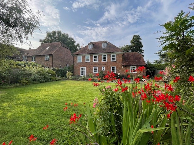 The mature rear garden includes a terraced patio that spans the length of the house where you can enjoy al fresco dining or just sit and revel in the views over the garden and beyond. The terrace is bordered by a large level lawn and surrounded by a riot of colourful plantings, well established shrubs and impressive trees with a pathway down to the stream.