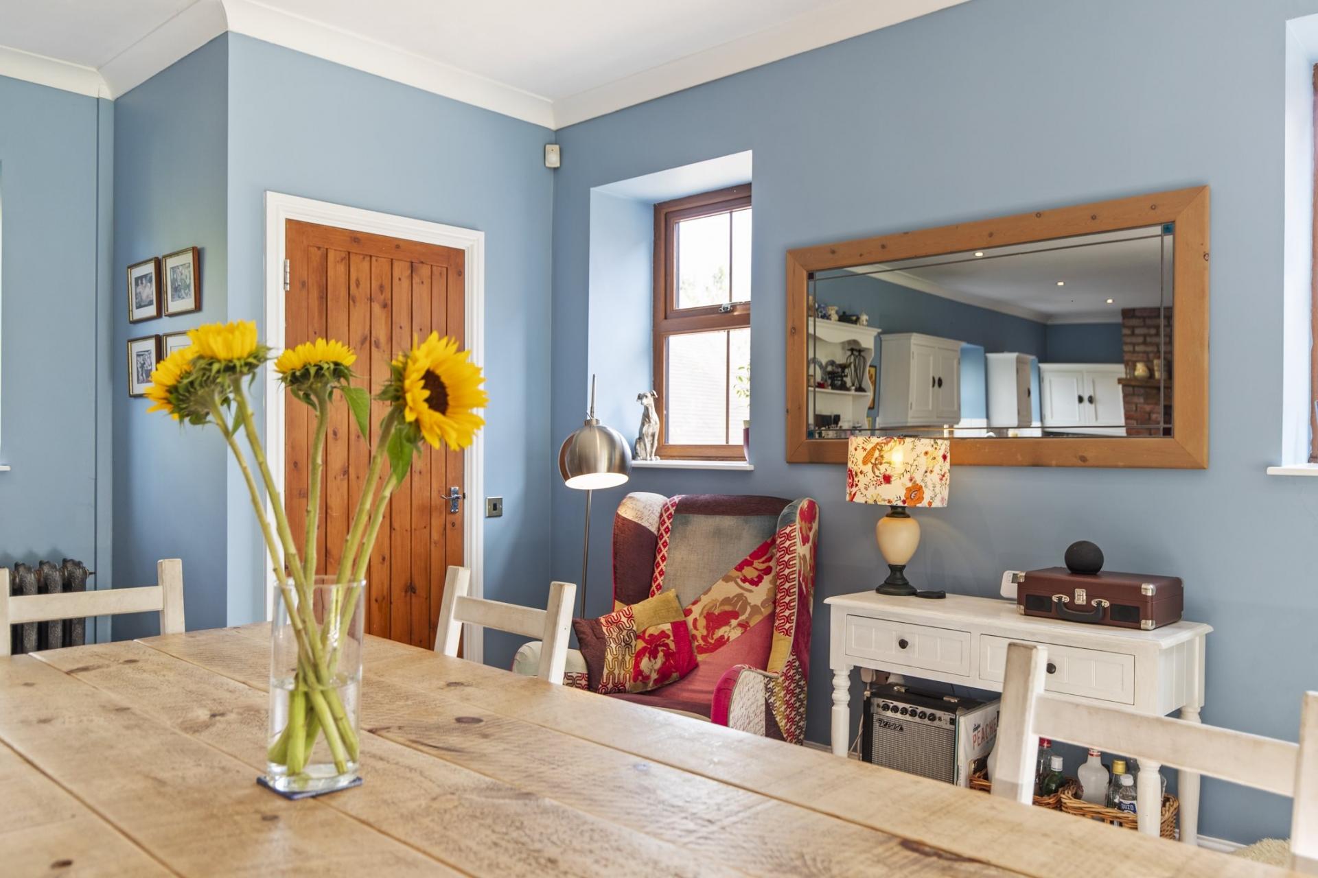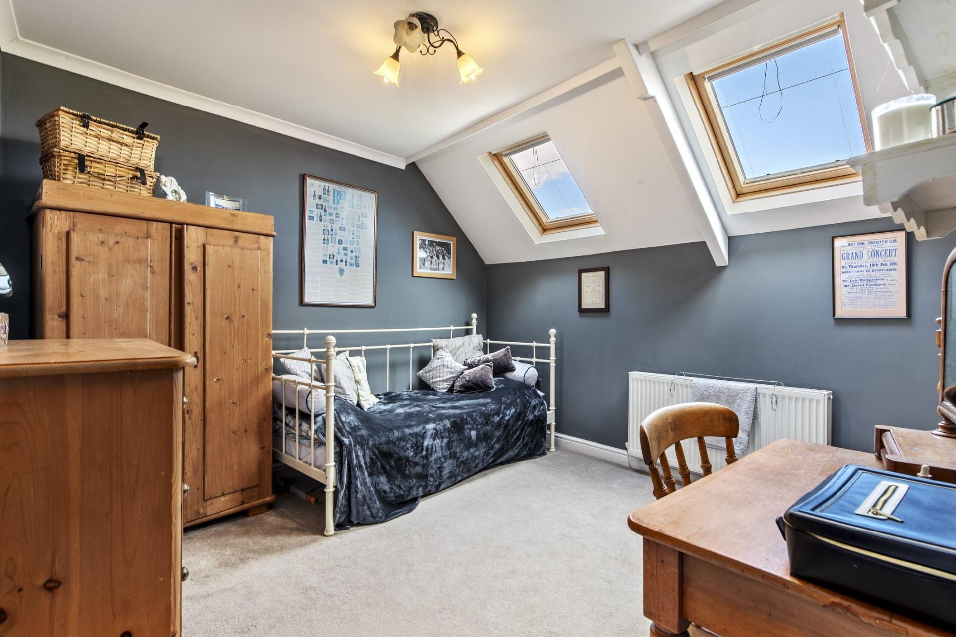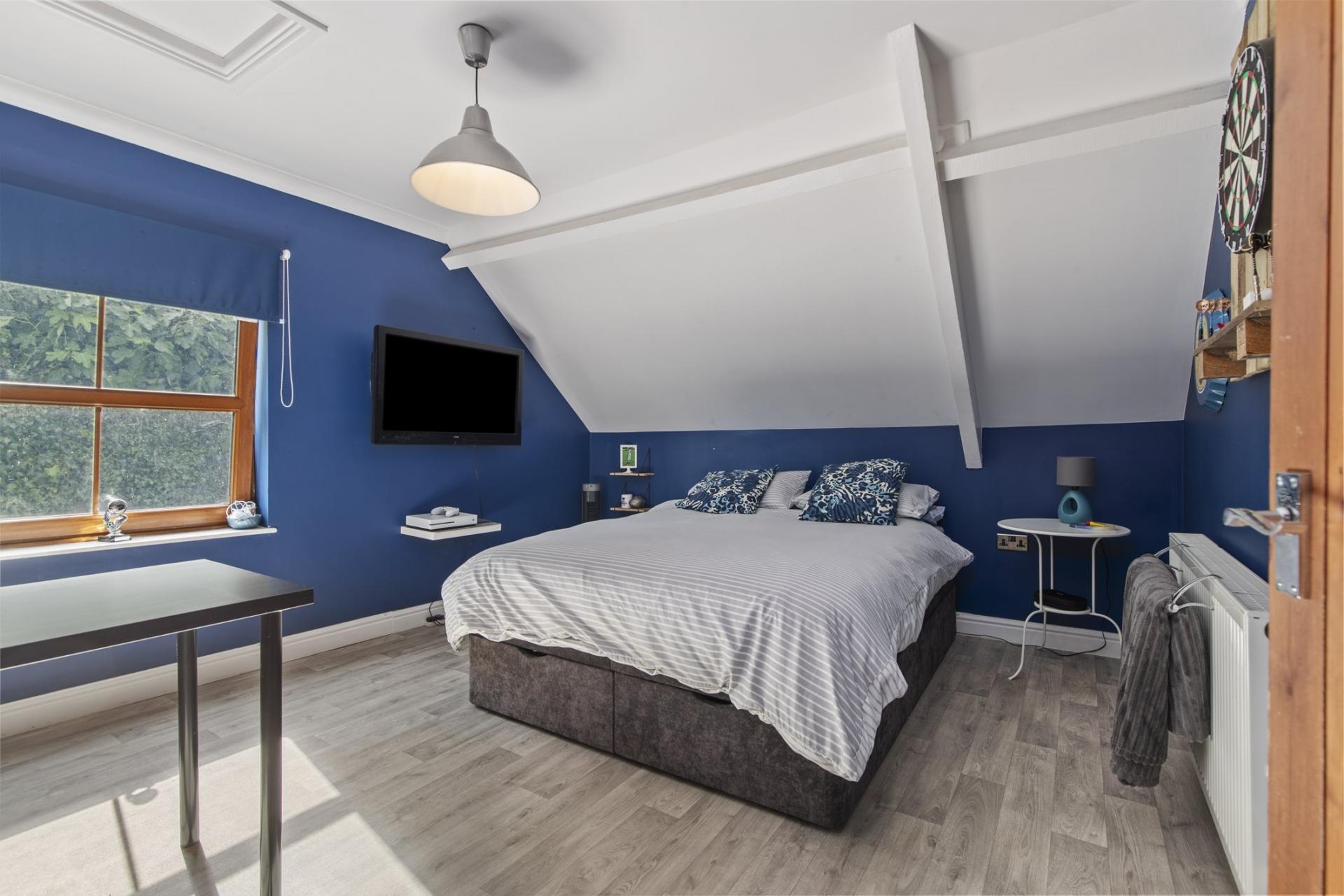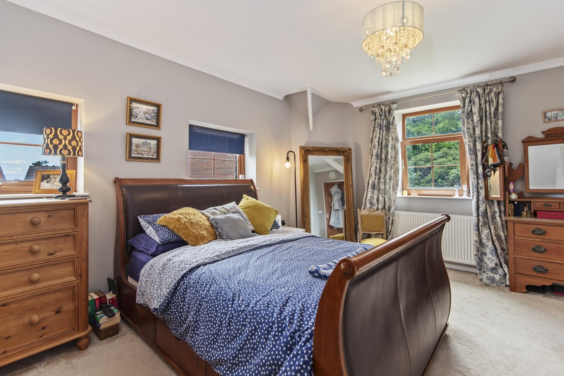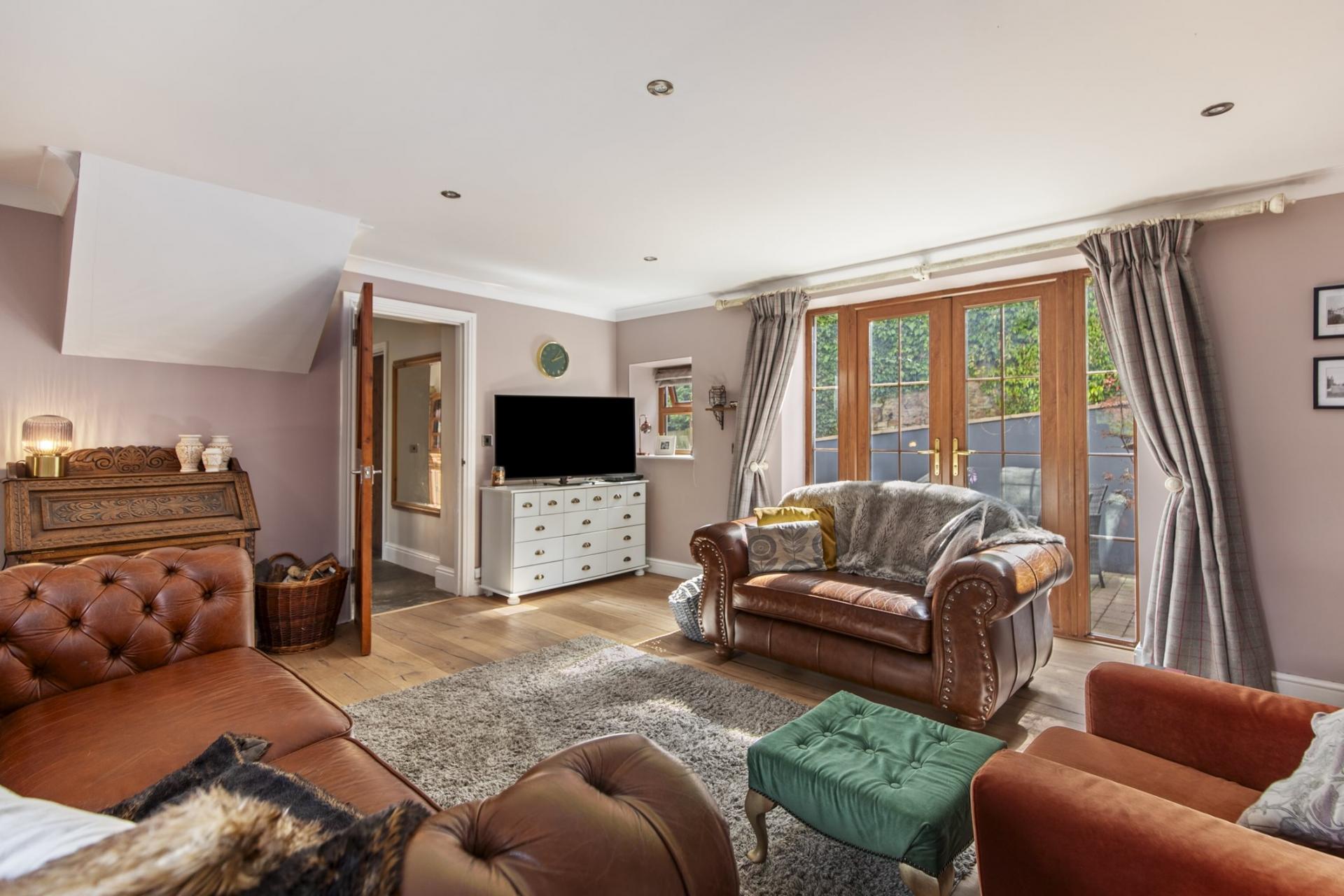 The ground floor continues with flagstone floors leading to a grand arched wooden front door, a cloakroom, and two reception rooms. The larger of the two features a cosy log burner, original wooden flooring, and French doors opening onto the gardens. Upstairs, the spacious landing is perfect for a home office, while four generously sized bedrooms include a master suite with built-in wardrobes and an en-suite. The luxurious family bathroom, complete with a roll-top bath, enhances the timeless character of this exceptional home.