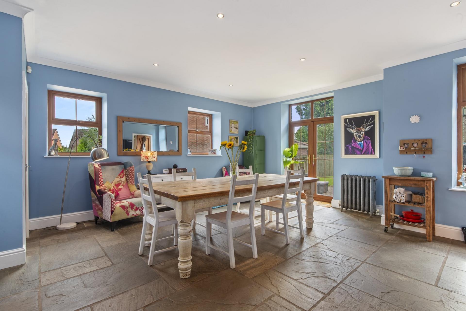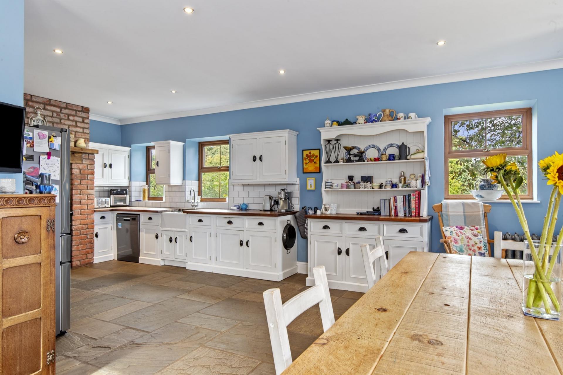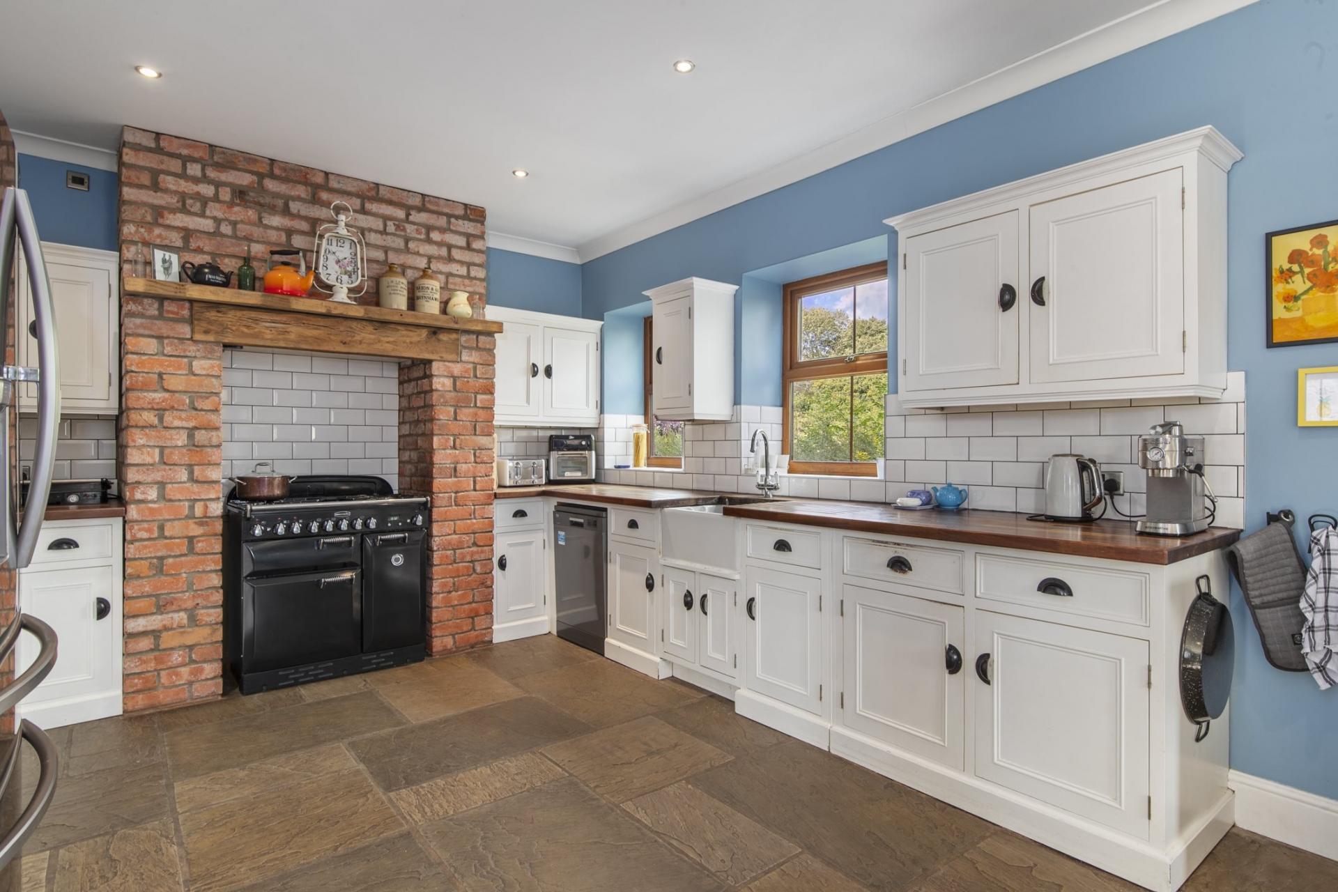 Welcome to Wentloog Lodge, a stunning blend of traditional charm and modern family living. As you step inside, you are greeted by an expansive, light-filled family kitchen with bespoke cabinetry, large flagstone flooring, and a striking brick-built cooker surround. This beautiful space seamlessly flows into the gardens through elegant double doors, creating the perfect spot for relaxing, cooking, and dining.
