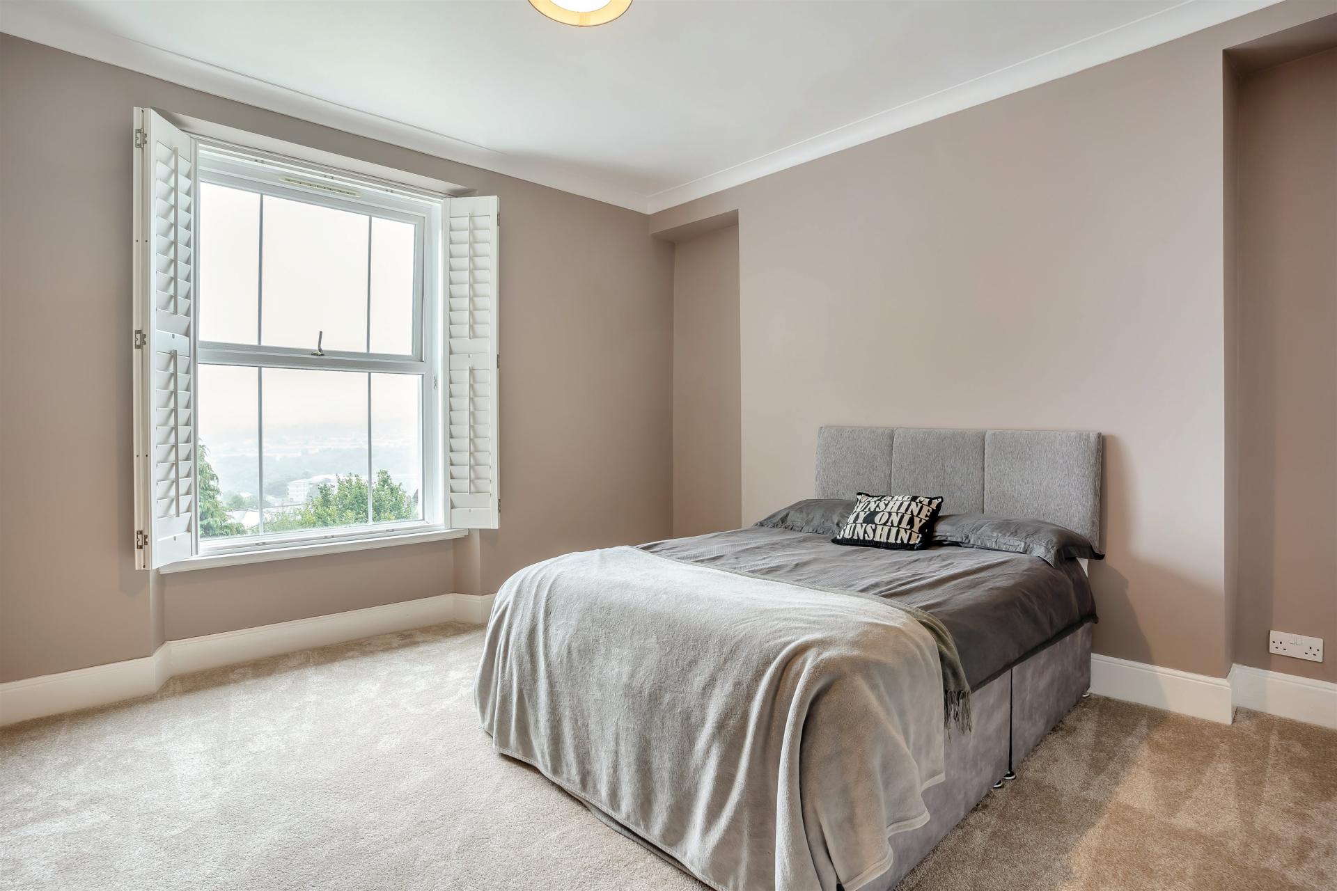To the first floor you are greeted by a picture window over looking those amazing views, as well as access to all rooms including the attic via a loft ladder. The main bedroom is a light filled room, boasting a dressing area with fitted wardrobes. This bedroom benefits from an en-suite shower room, with twin vanity units. The second bedroom is a great sized double room, and also benefits from a sizable en-suite shower room.