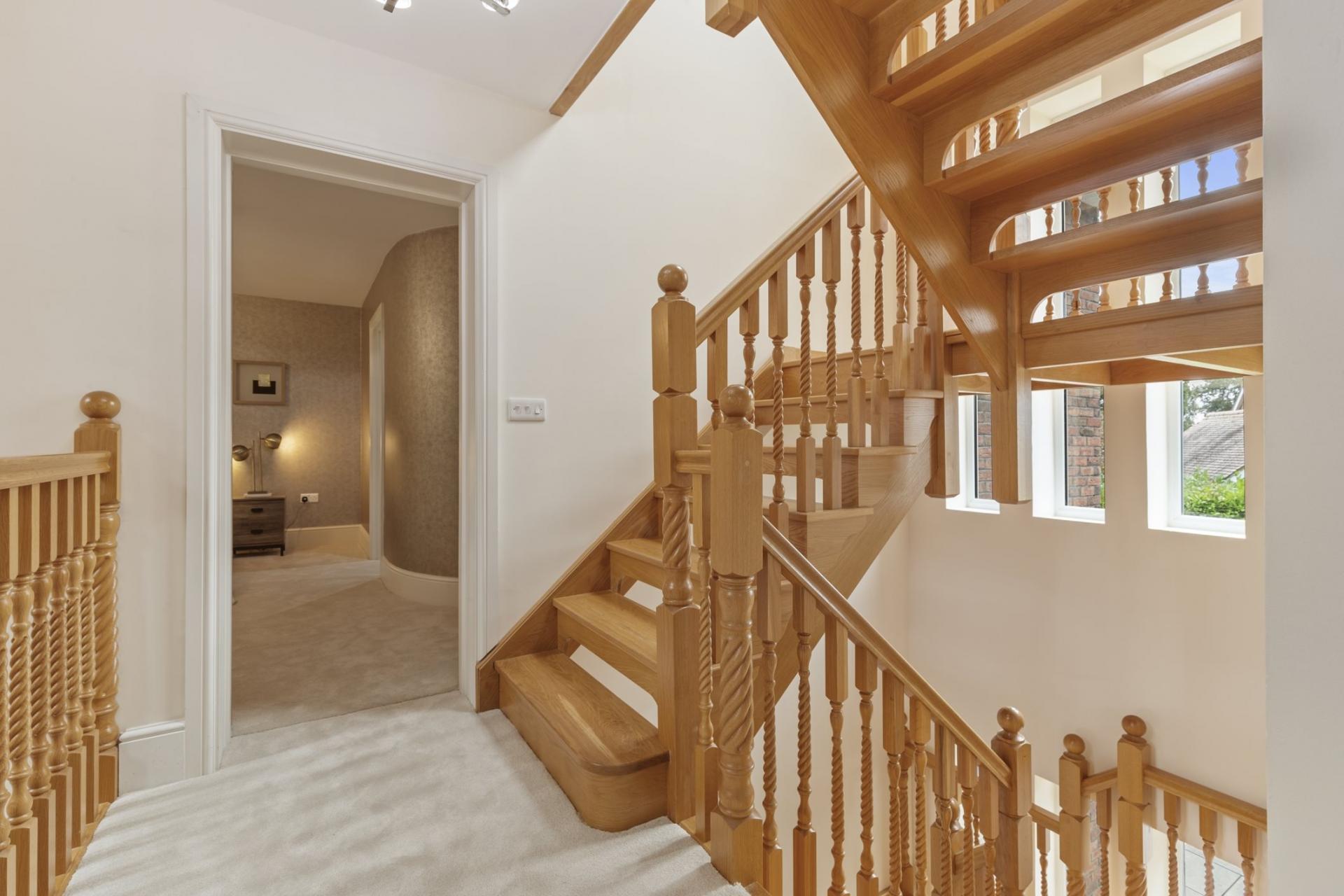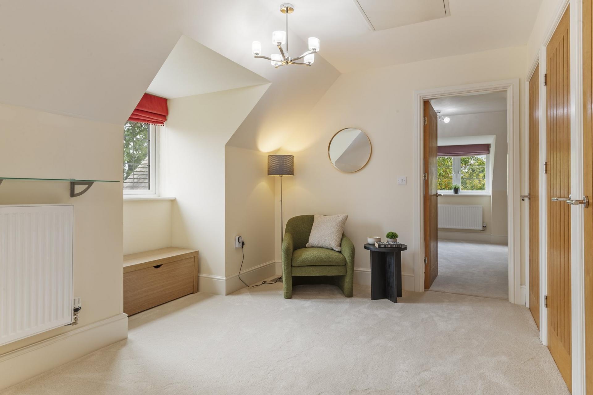 The principal suite is a true sanctuary, featuring a beautifully curved wall, a large walk-in wardrobe, and an opulent en suite with a freestanding bath and shower. The second floor boasts two more generously sized bedrooms, also with en suites, and a cosy landing area that's perfect for quiet moments.