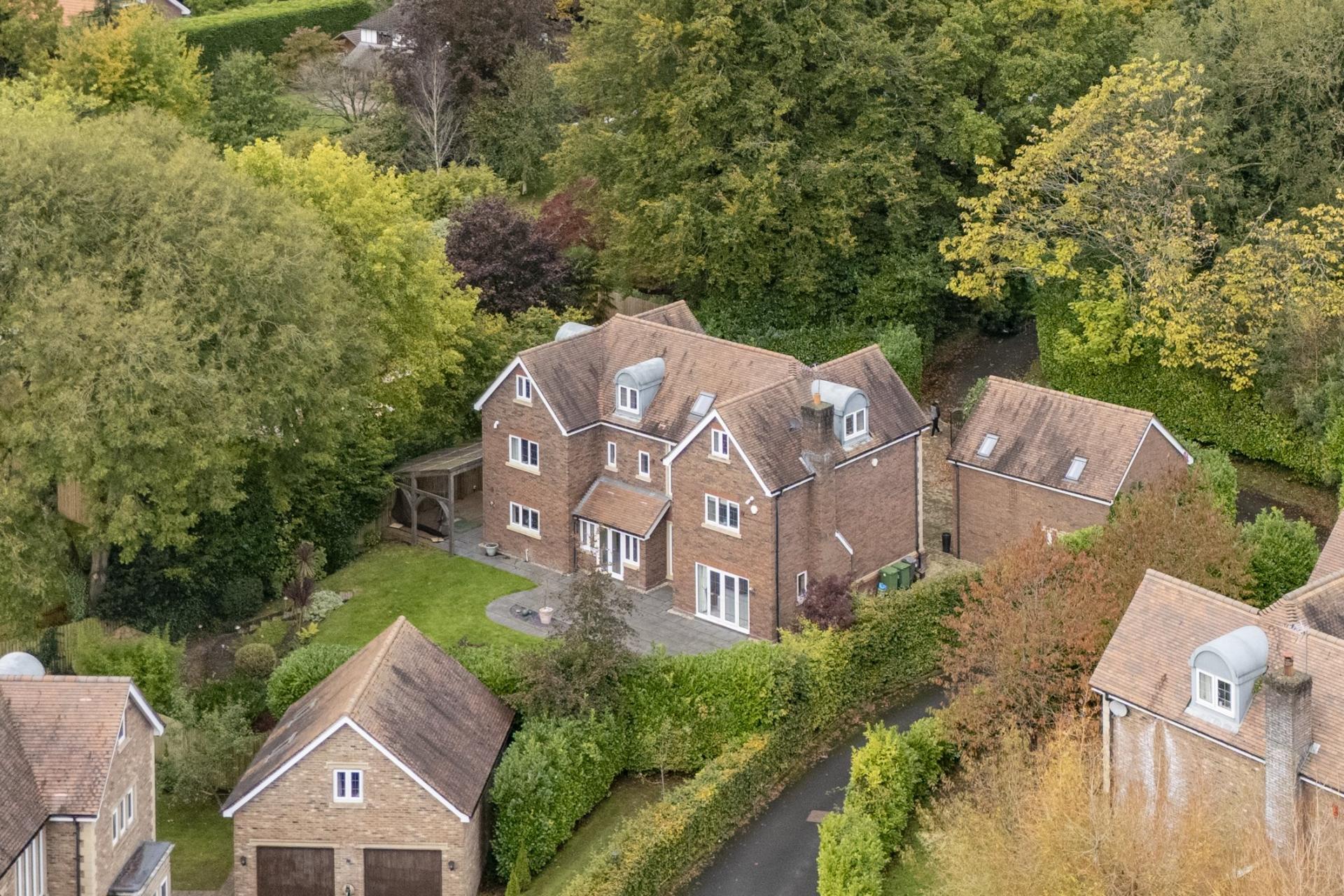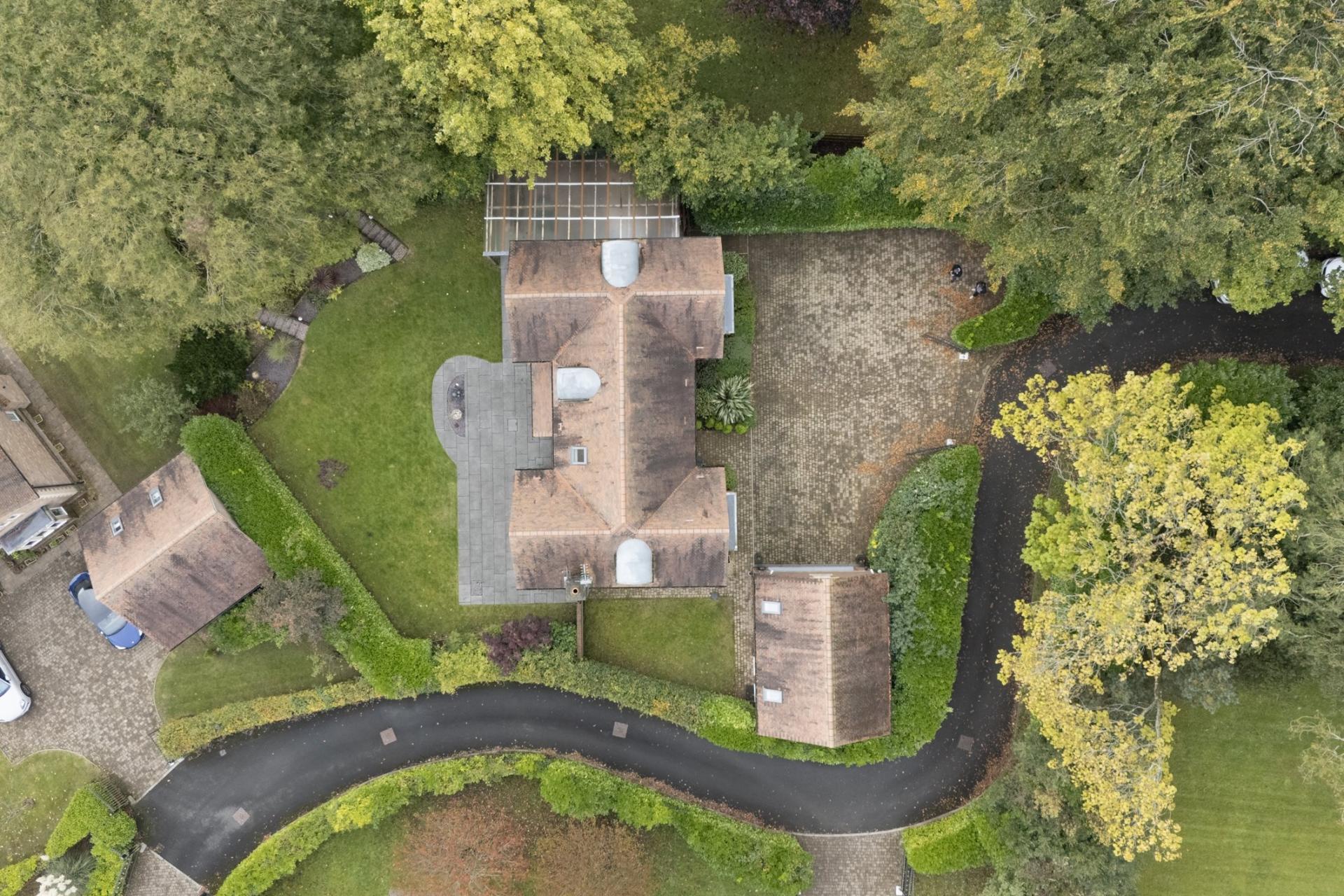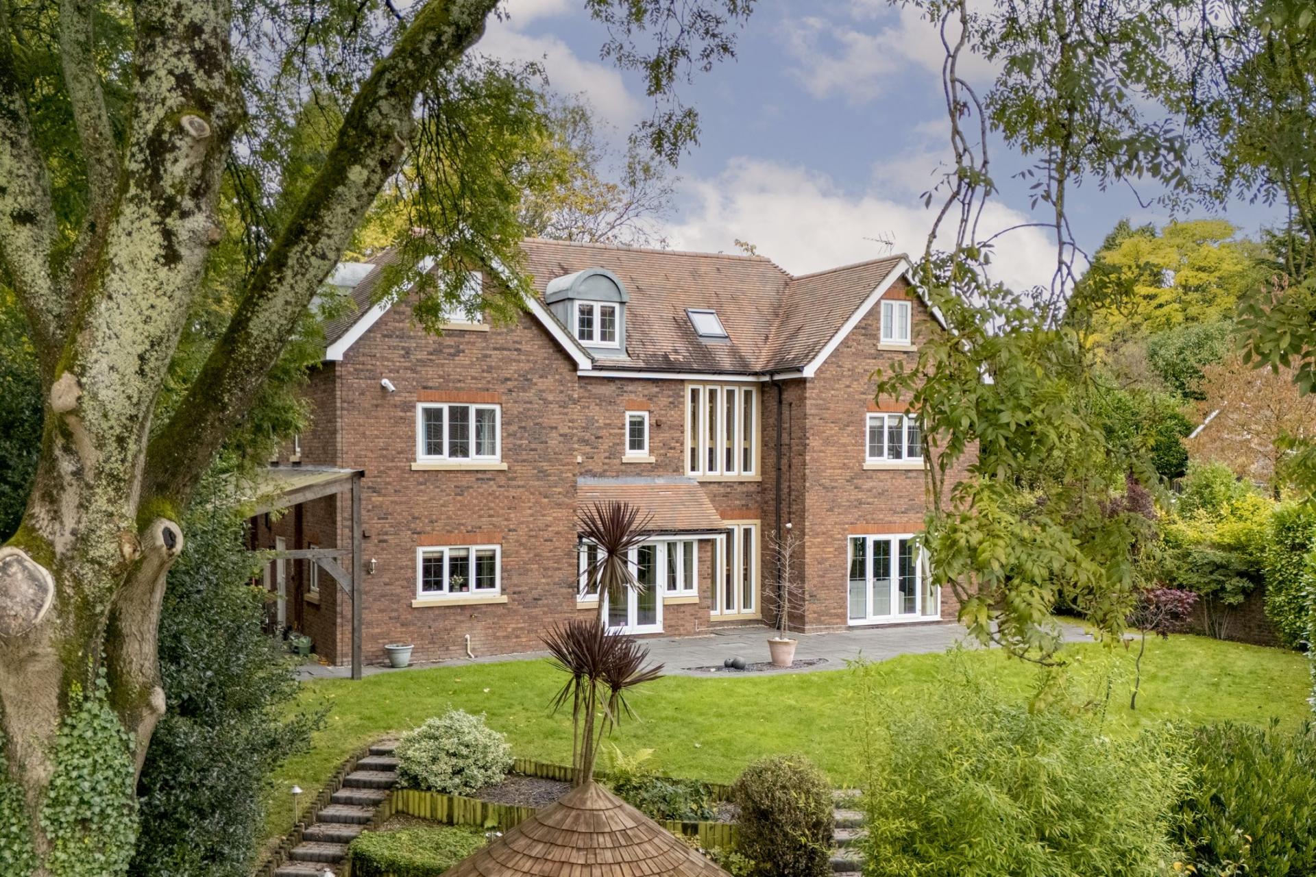 Outside - The allure of Carew House extends beyond its walls to a magnificent south-facing garden, designed for both relaxation and entertaining. The lush lawn is bordered by mature shrubs, while a sleek paved patio provides ample space for alfresco dining or lounging under the sun. A charming, covered terrace currently serves as a golf simulator space, ready for your favourite outdoor activities.