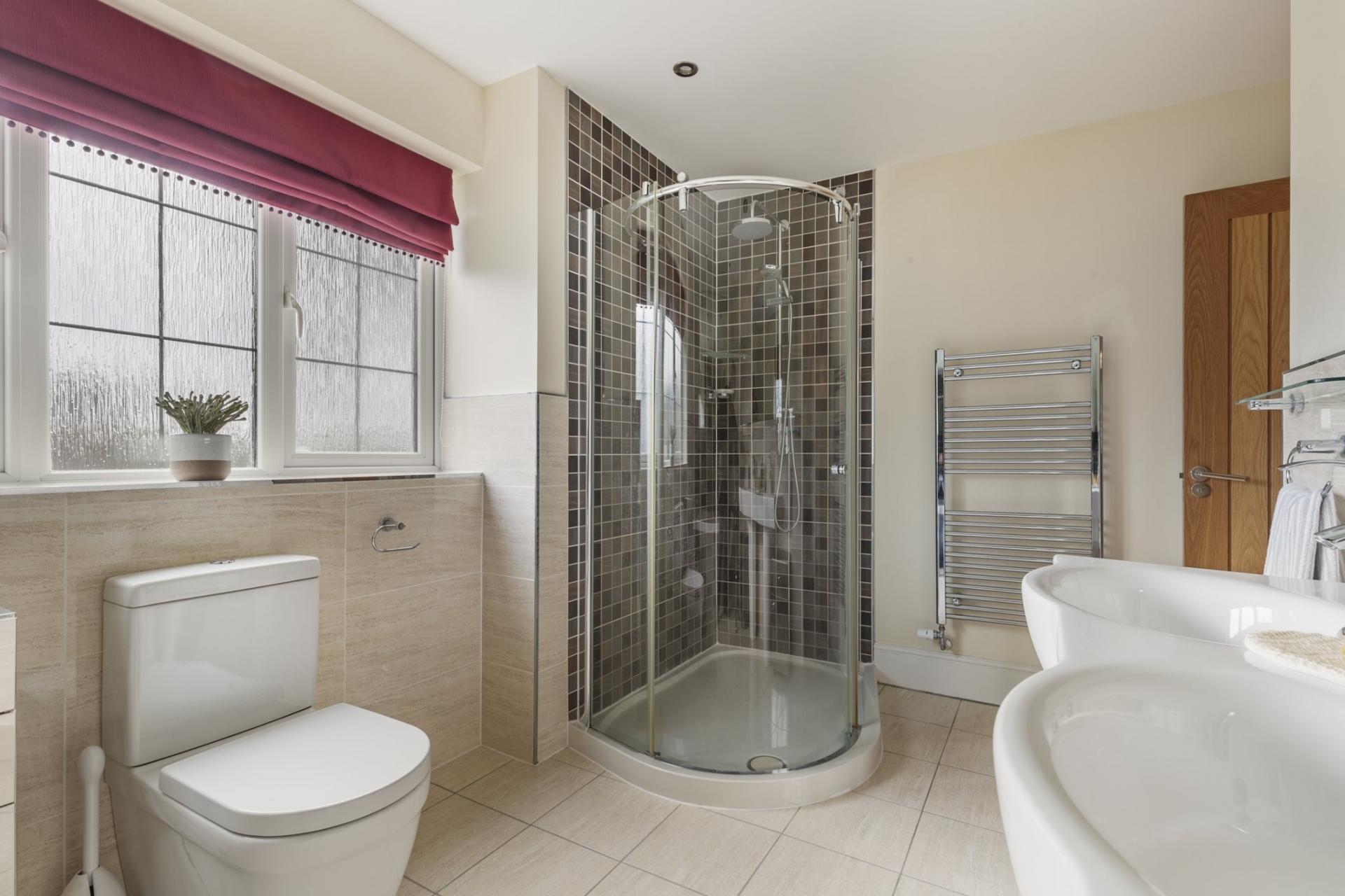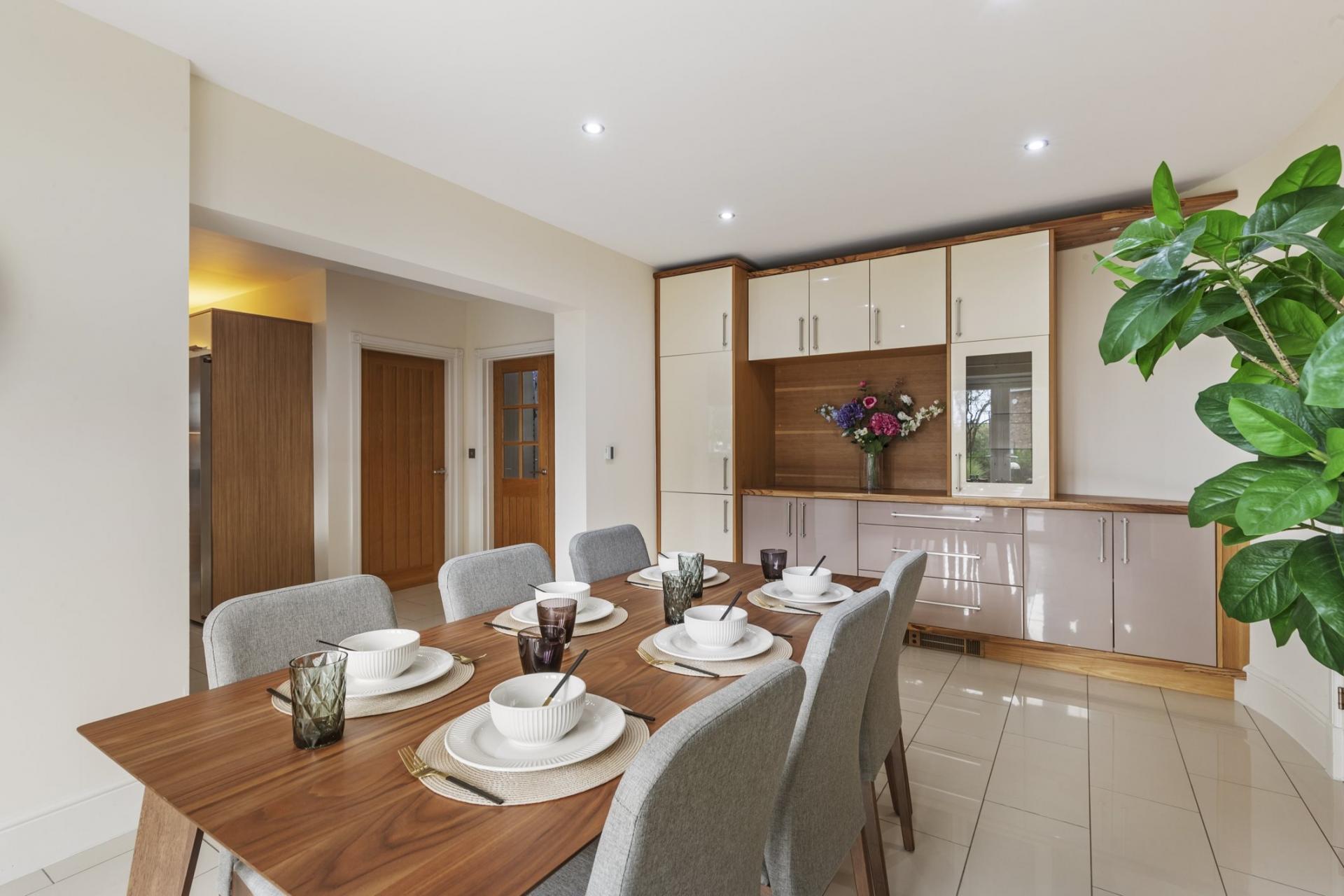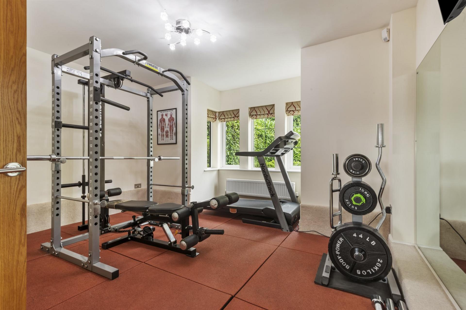 French doors seamlessly connect this space to the garden, enhancing the indoor-outdoor flow. Adjacent to the kitchen, a versatile room currently serves as a home gym but could easily become a snug or casual family area, making it ideal for day-to-day living. Venture upstairs to find three spacious bedrooms, each with its own en suite, ensuring comfort and privacy for all.