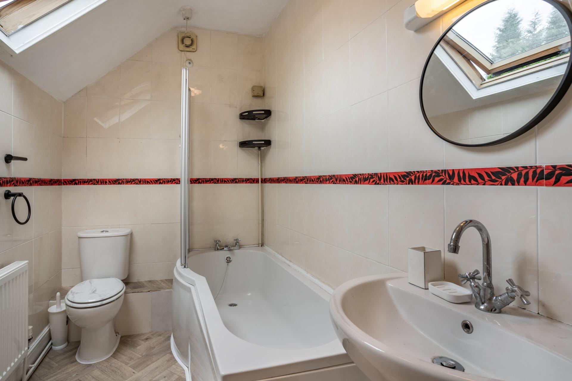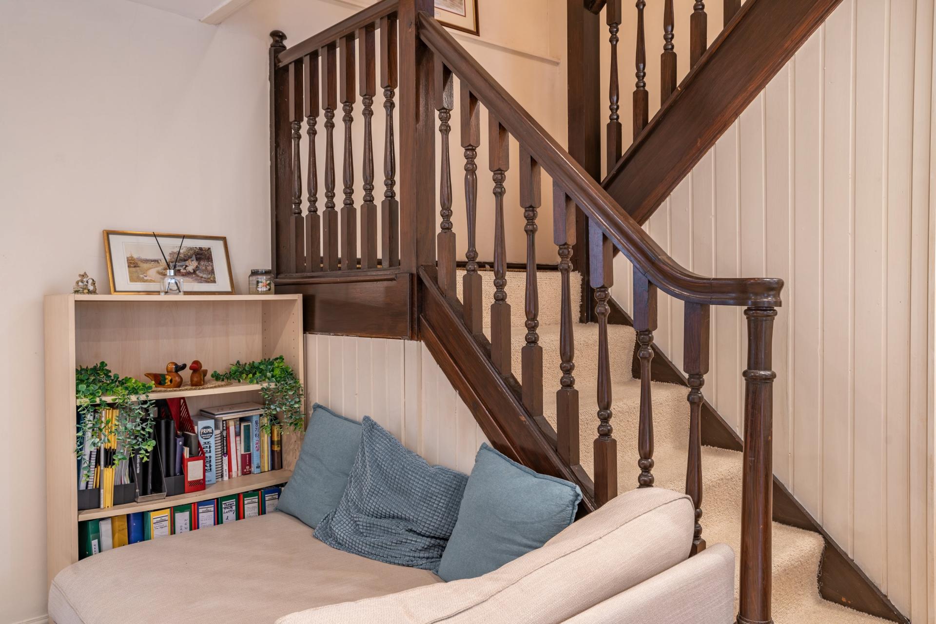 The Stables, accessible through secure gates to the side of the property or via the courtyard garden, is a delightful cottage brimming with potential. The ground floor features an open-plan living and dining area, perfect for entertaining or family gatherings. A staircase leads to two cosy bedrooms and a family bathroom, with a functional kitchen on the ground floor completing the layout.