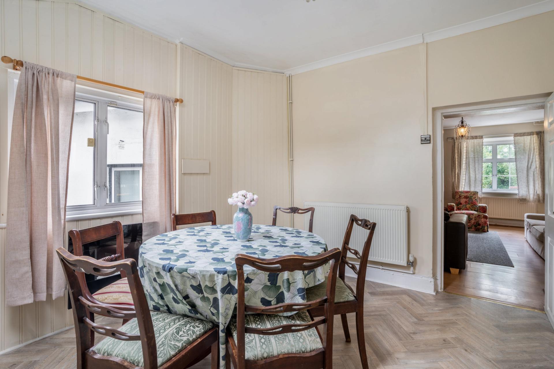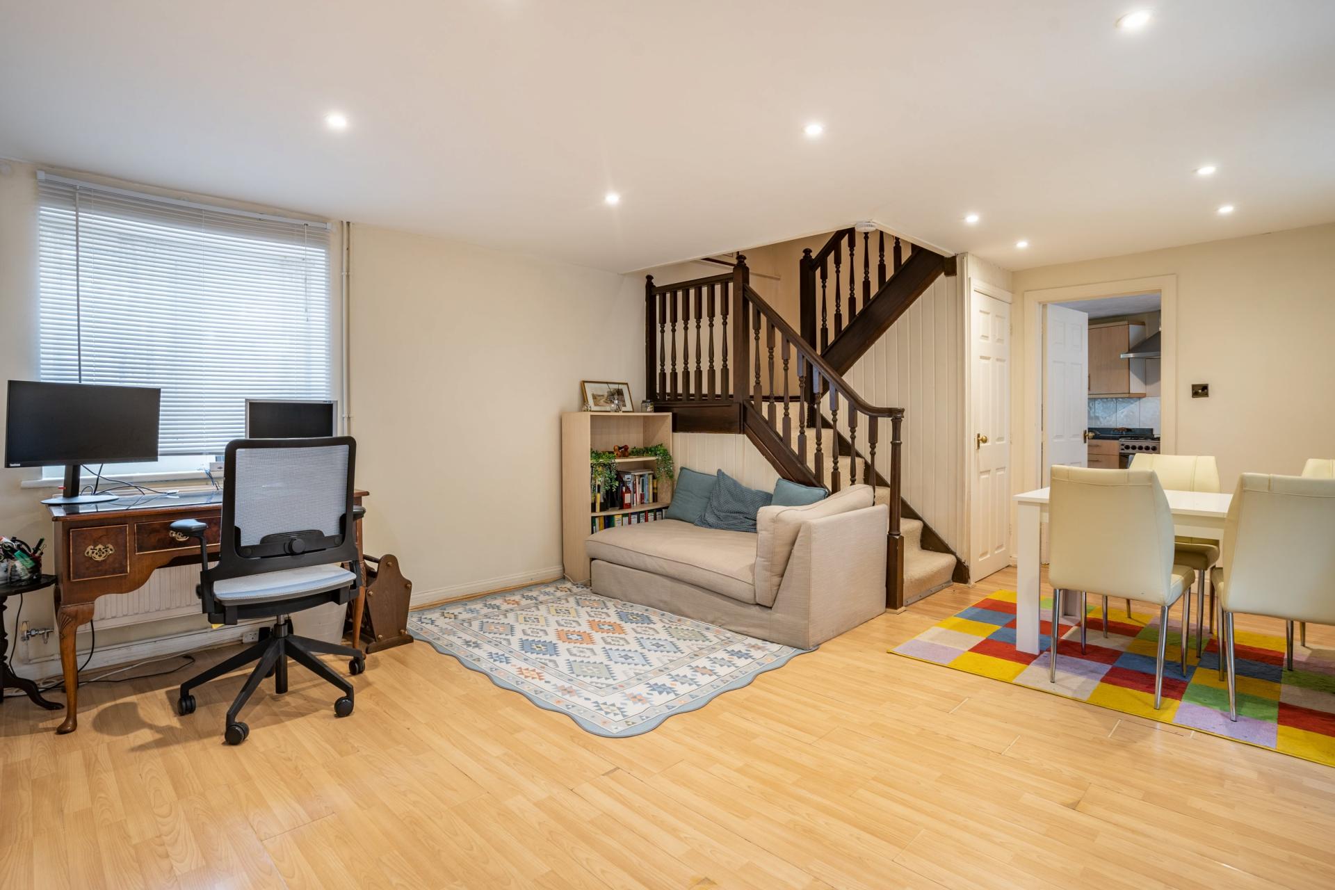 Tavern House exudes character and charm, with spacious rooms filled with natural light. The ground floor offers two large reception rooms with ample potential for modern living while retaining its cottage feel. The central staircase leads to three generous bedrooms, along with a versatile fourth room that could serve as a dressing room, nursery, or be converted into a master en suite. A family bathroom completes the upstairs layout. The kitchen, with access to a downstairs shower room, opens onto a private courtyard, ideal for al fresco dining or a peaceful retreat.