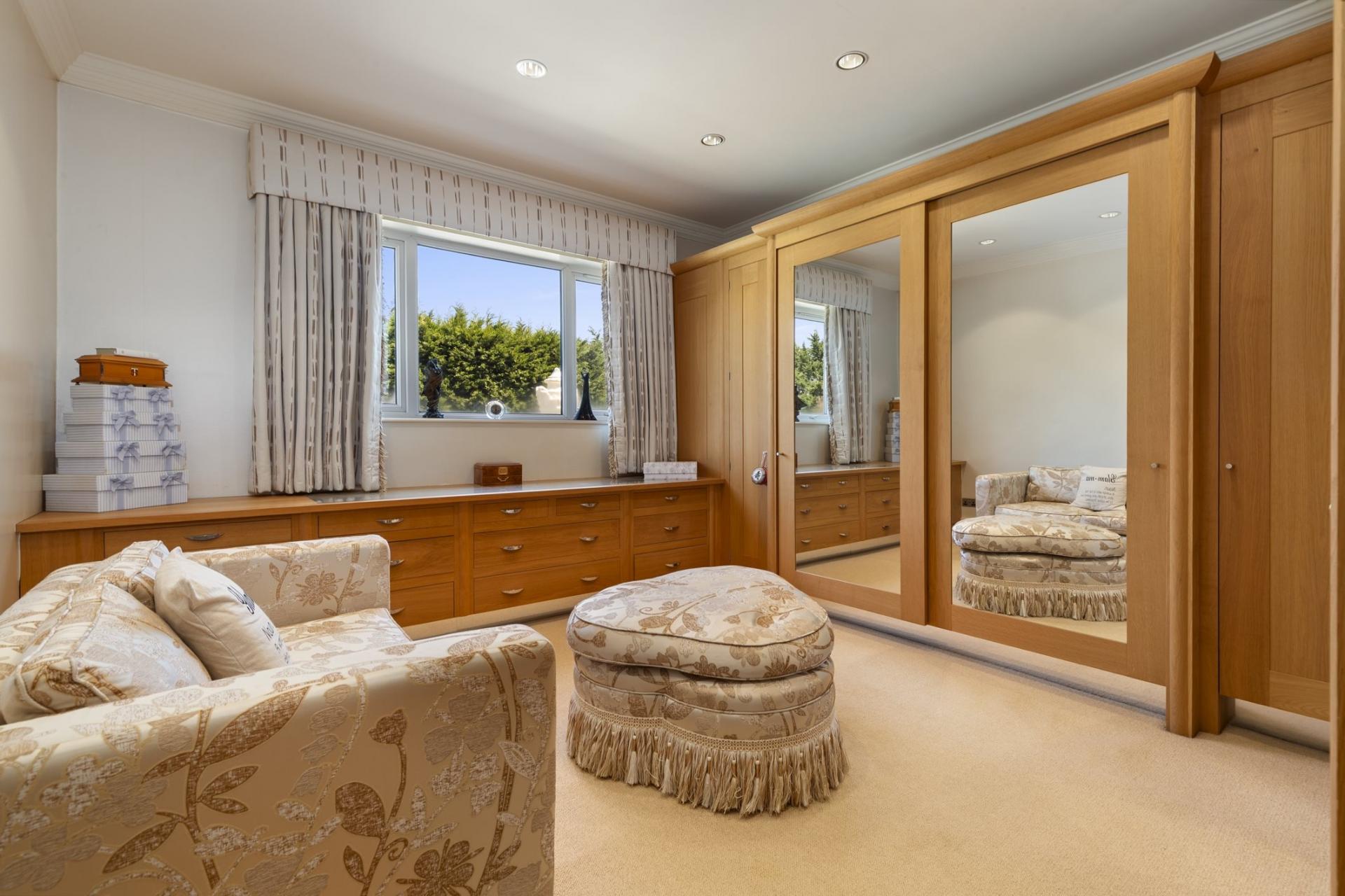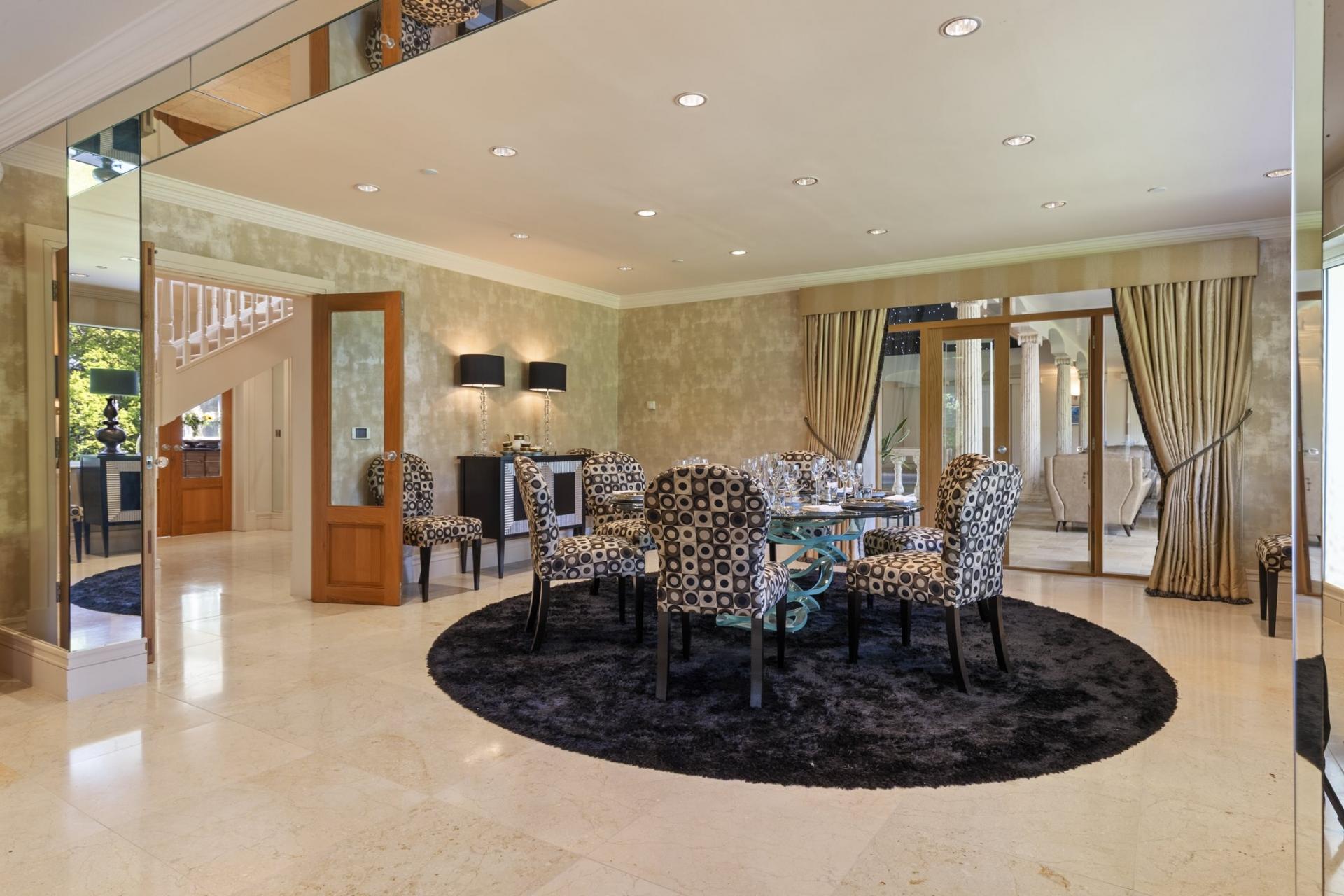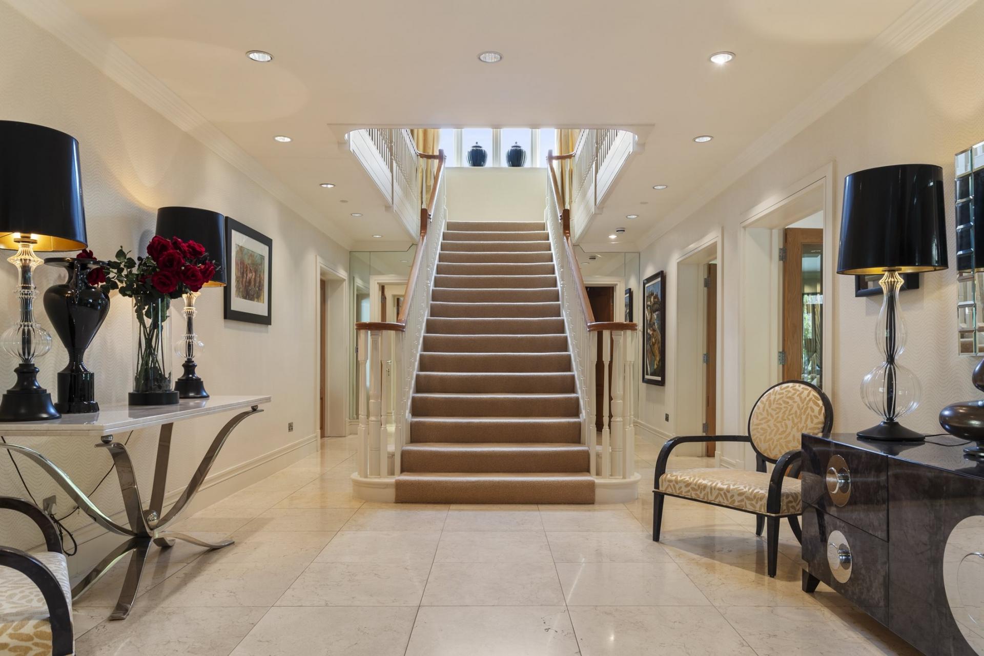 A sweeping staircase and galleried landing set the tone the moment you step into the grand hallway. The ground floor flows seamlessly between multiple reception rooms, including a cosy sitting room, formal lounge, dining room, and a stunning leisure suite. The bespoke kitchen by Smallbone of Devizes includes quality integrated appliances, a large dining area, and opens onto the rear terrace. The leisure wing is a standout feature, complete with an indoor pool, bar, starlight ceiling, projector system, changing facilities, and gym space. Underfloor heating and Sonos sound run throughout many areas of the home. Upstairs, six spacious bedrooms span the top floor the principal suite boasts a walk-in dressing room and luxurious en suite, while all other bedrooms enjoy built-in wardrobes and private or Jack & Jill bathrooms.