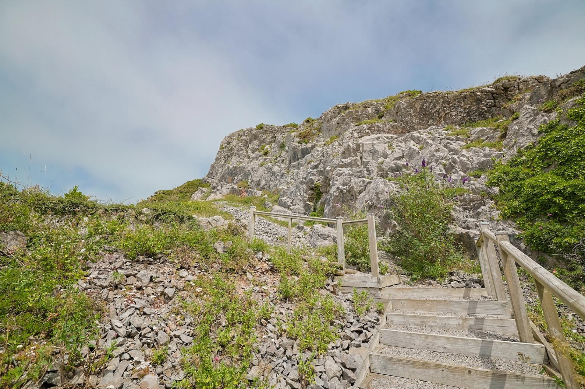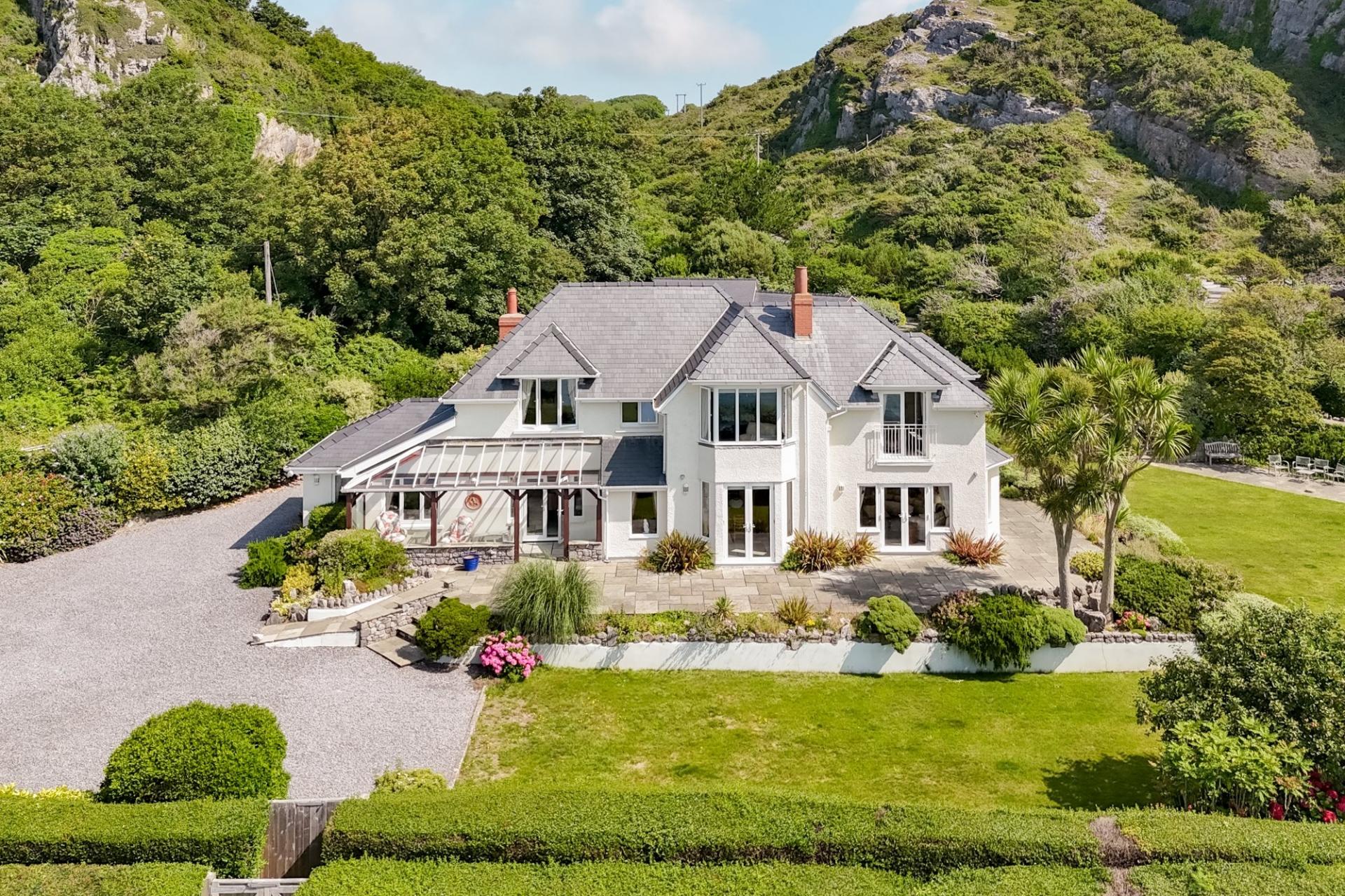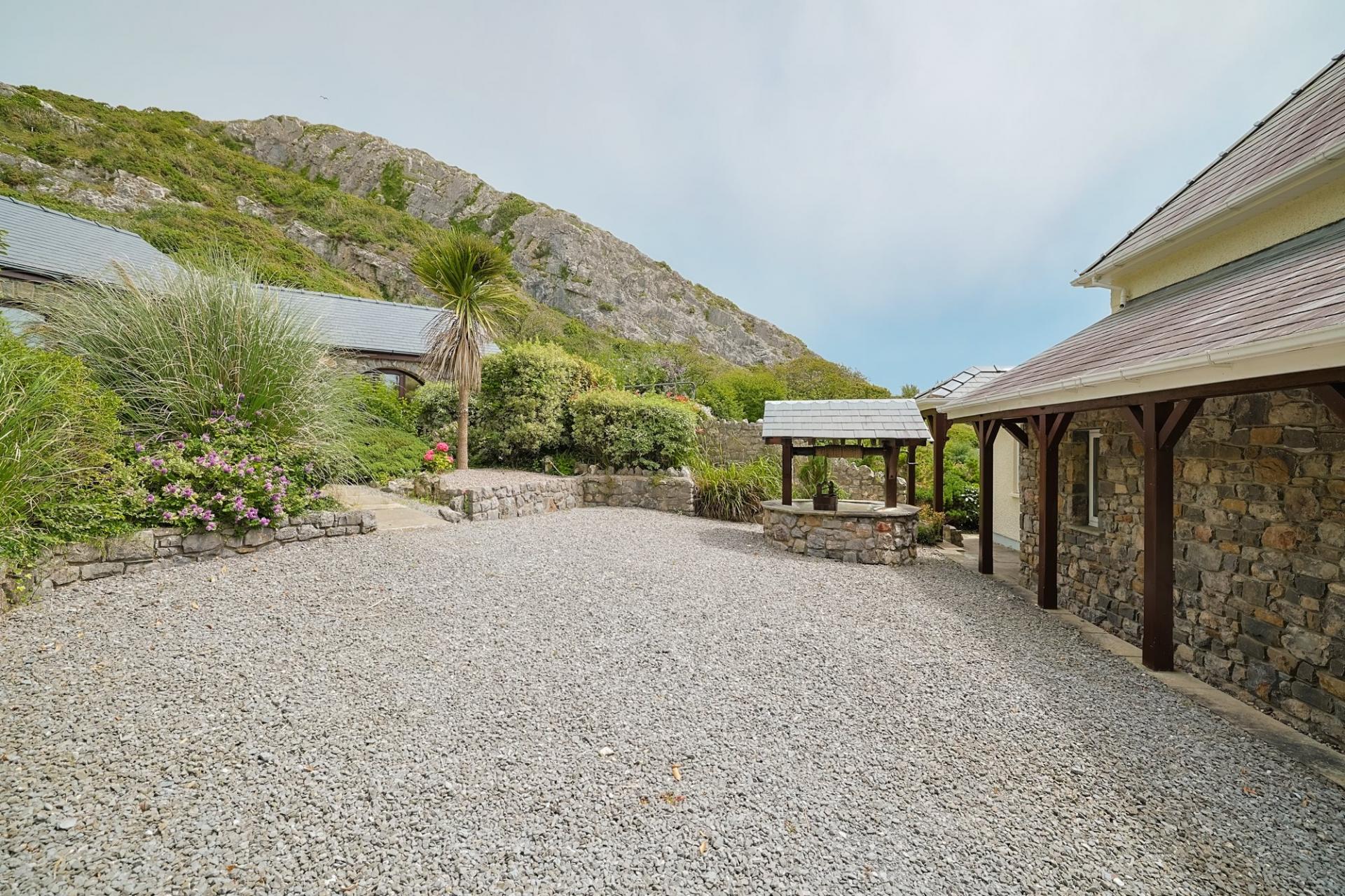Outside - The grounds at Craig Y Don are nothing short of enchanting a private coastal sanctuary set within approximately 1.81 acres of exquisitely landscaped gardens. Every element has been thoughtfully crafted to complement the natural beauty of its setting. Meandering stone-chip pathways lead you through vibrant flower beds, mature trees, and lush lawns, while the sound of the ocean and birdsong provides a constant, calming backdrop. Discover hidden corners to unwind, from the bespoke firepit with seating to the striking rock feature, artfully designed to mimic a flowing river. As evening falls, the dramatically lit cliff face transforms the garden into a magical space. And at the heart of it all lies the jewel in the crown a generous front lawn with private stone steps leading directly to Horton Bay, offering unparalleled access to the beach for those who live for the sea, sand, and coastal air.
