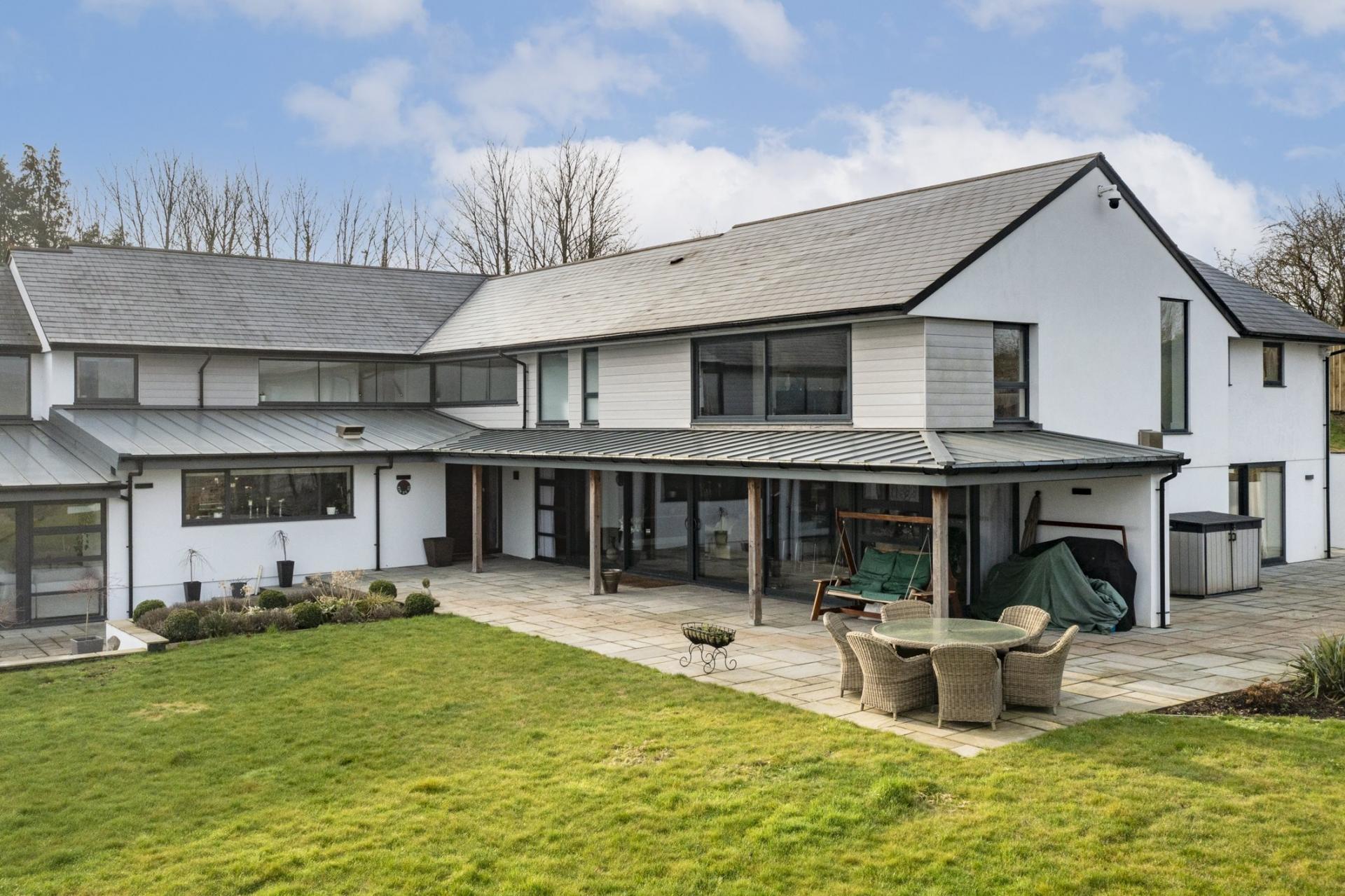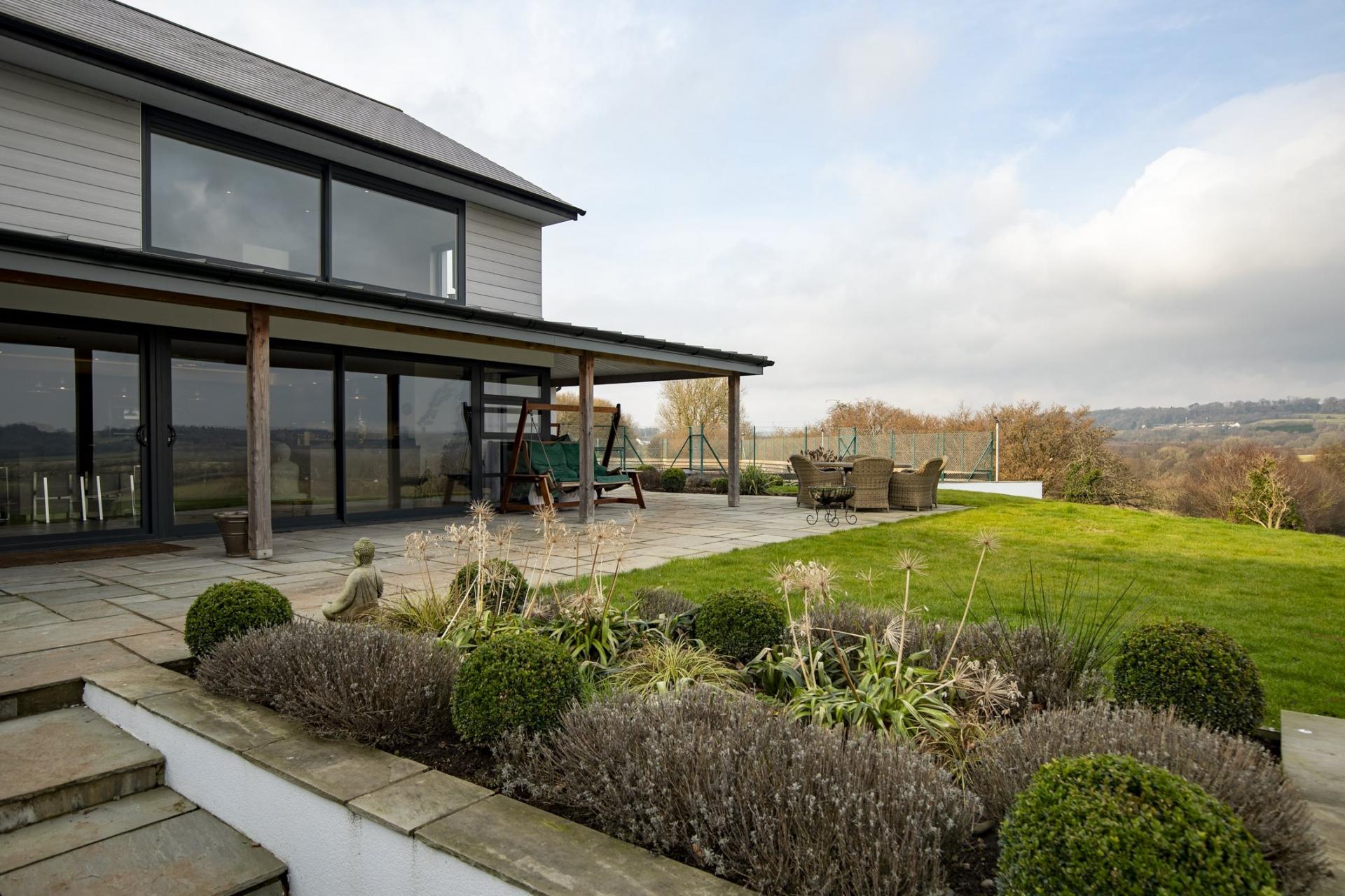 Outside - The estate's six acres of private land provide an unparalleled outdoor experience. The electric-gated entrance leads to an extensive driveway with ample parking, while the beautifully landscaped gardens feature a mix of manicured lawns, raised vegetable beds, an orchard, and beehives.