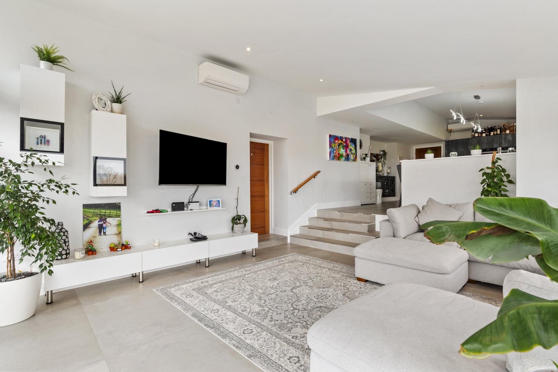 Entering through the grand hallway, you are immediately captivated by the impressive curved staircase with a galleried landing, where large windows frame breathtaking views of the surrounding landscape. The heart of the home is the main Porcelanosa-designed kitchen, a masterpiece of contemporary elegance featuring top-of-the-line Neff appliances, a vast central island, and a sociable open-plan design. Adjacent is a sitting area and an elegant dining space, perfect for hosting guests.