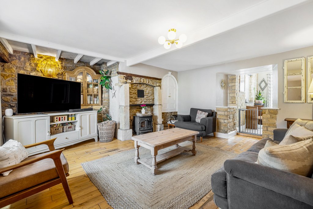 - Lounge boasts exposed beams, stonework and a wooden floor