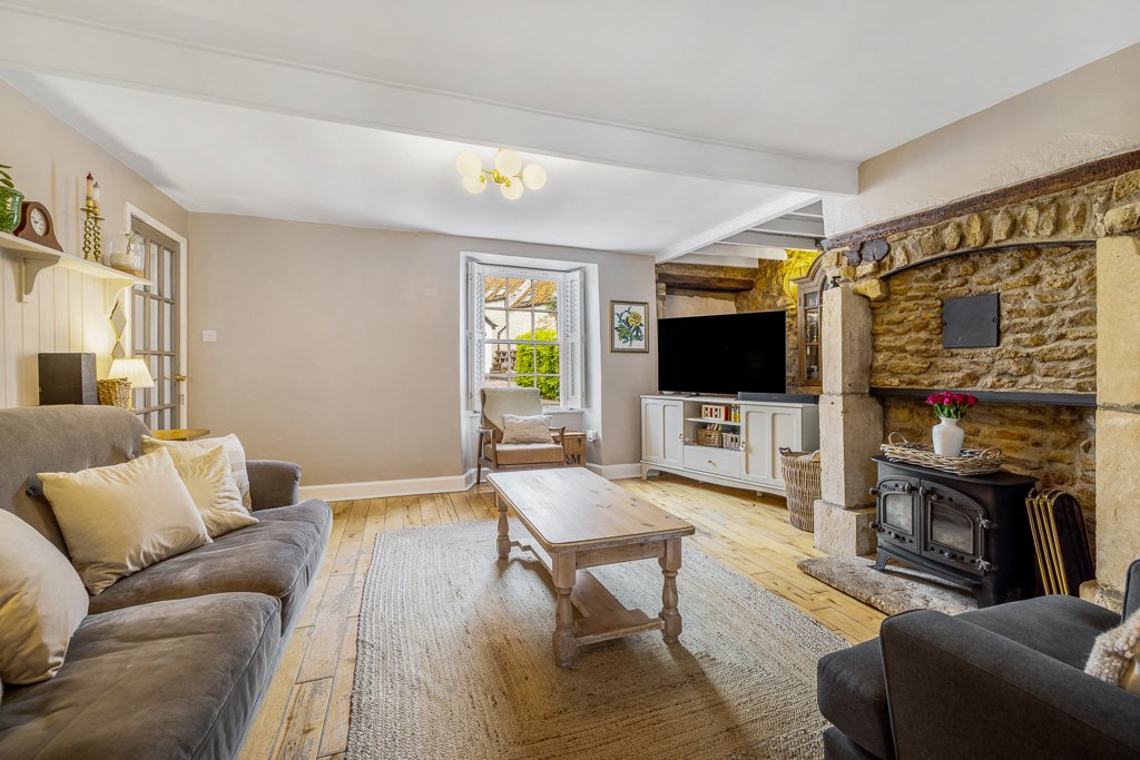 • Elegant lounge with stunning, original stone fireplace with Villager wood burning stove