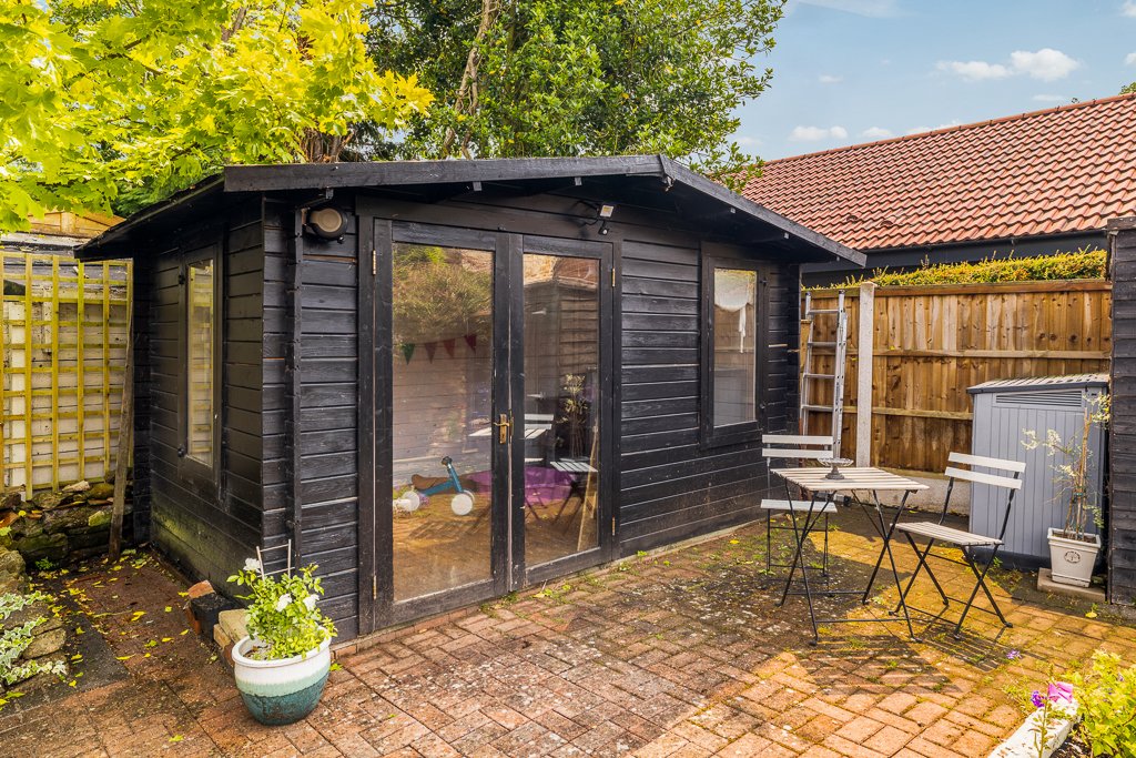 “Although we are in the middle of the village, the garden is very private with its fenced and brick walls and we feel lucky to have the most beautiful roses as well as mature shrubs and trees, including an apple tree. The garden has two terraces, one directly to the rear of the house and another at the bottom by the summer house which enjoys the very last of the evening sun. We have used the summer house as a play area but it has power and light and would also make a good home office.”