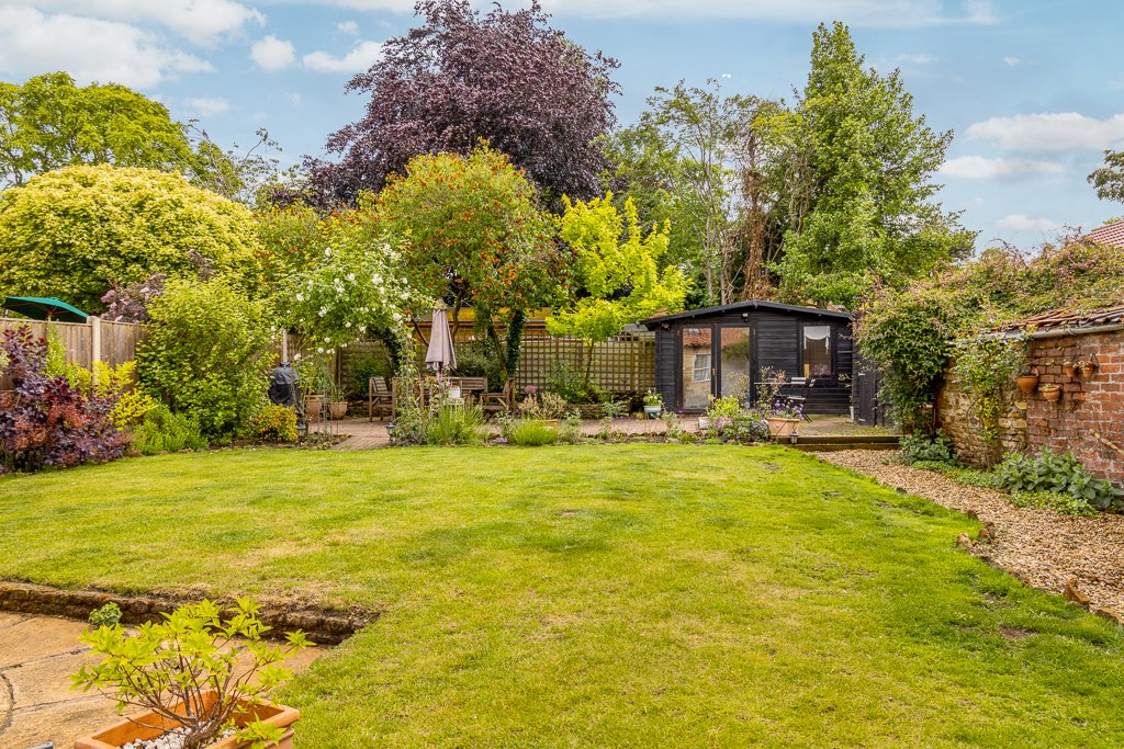 - Private, mature, rear garden with terrace and lawn areas and mature shrubs, trees and roses