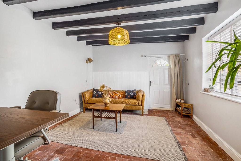 - Study, accessed through the dining room, with exposed beams, tiled floor and external door
