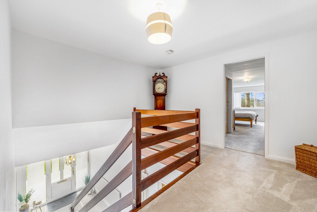 • Open-plan wooden staircase with a galleried wall from the ground floor to the landing