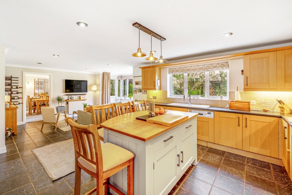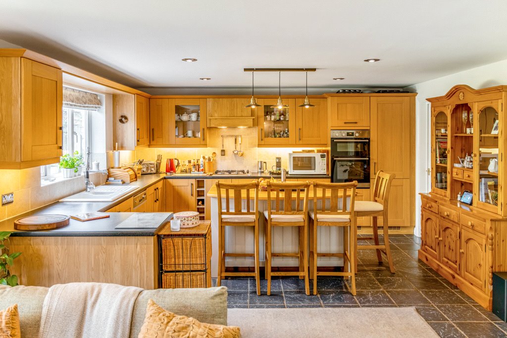 In a much sought after village, a very attractive, immaculately presented, 20 year old stone house provides 5 bedrooms, 3 en suite, and downstairs, a fabulous, expansive kitchen dining living room that leads to a separate dining room, drawing room and, across the hall, to a study. An easy flow between the light, spacious rooms is augmented by a lovely connection with the sunny rear garden. A separate garage at the end of the drive completes this highly desirable family home.
